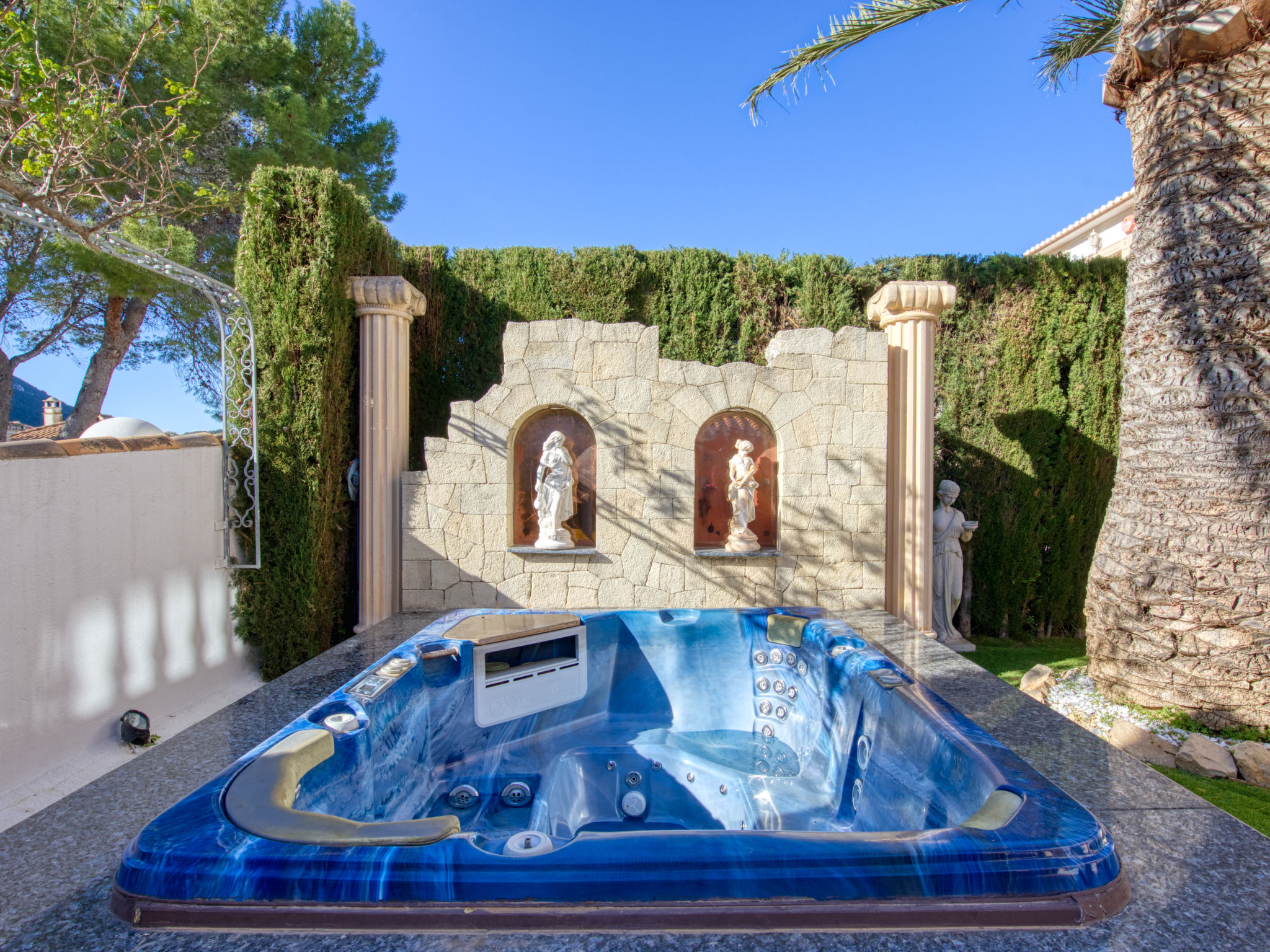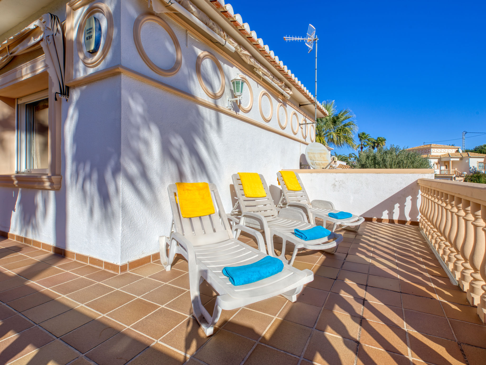 "Villa Toscana", 6-Zimmer-Villa 200 m2 auf 3 Stockwerken. Schön und gemütlich eingerichtet: Wohn-/Esszimmer mit Sat-TV. Ausgang zum Gartensitzplatz, zum Schwimmbad. 1 Zimmer mit 2 Betten (90 cm, Länge 200 cm), Sat-TV, Klimaanlage und Warmluftheizung. Offene Küche (Backofen, Geschirrspüler, 4 Glaskeramikherd Platten, Toaster, Wasserkocher, Mikrowelle, Tiefkühler, elektrische Kaffeemaschine). Dusche/WC. Unteres Geschoss: (Aussentreppe) 1 Zimmer mit 1 franz. Bett (2 x 90 cm, Länge 200 cm), Sat-TV, Klimaanlage und Warmluftheizung. Dusche/WC. Obergeschoss: 1 Zimmer mit 1 franz. Bett (2 x 90 cm, Länge 200 cm), Dusche/WC, Sat-TV, Klimaanlage und Warmluftheizung. Ausgang zur Terrasse. Terrassenmöbel, Gartengrill, Liegestühle. Zur Verfügung: Waschmaschine, Wäschetrockner, Bügeleisen, Kinderhochstuhl, Babybett, Haartrockner. Internet (Wireless LAN, gratis). VT-461132-A