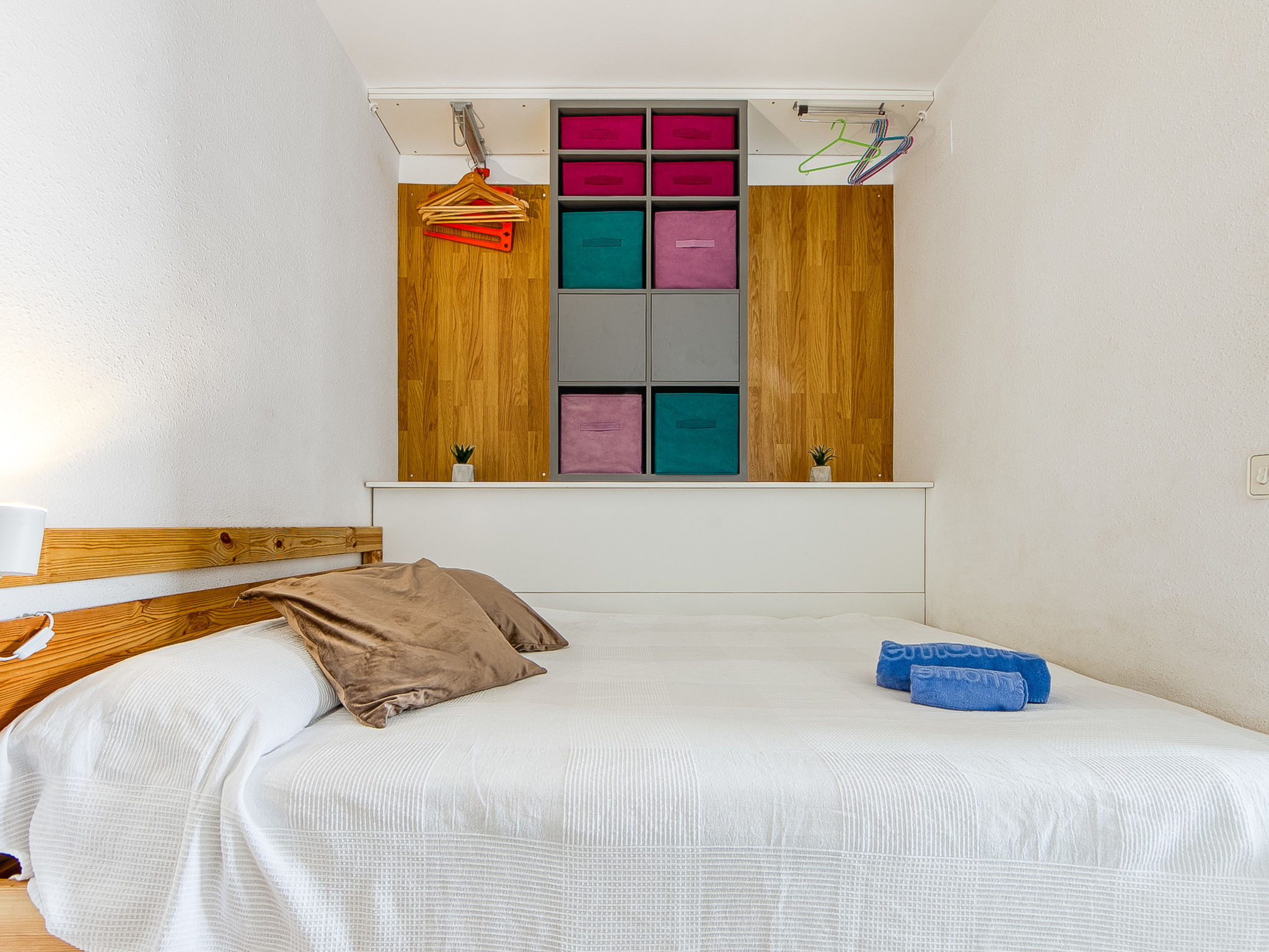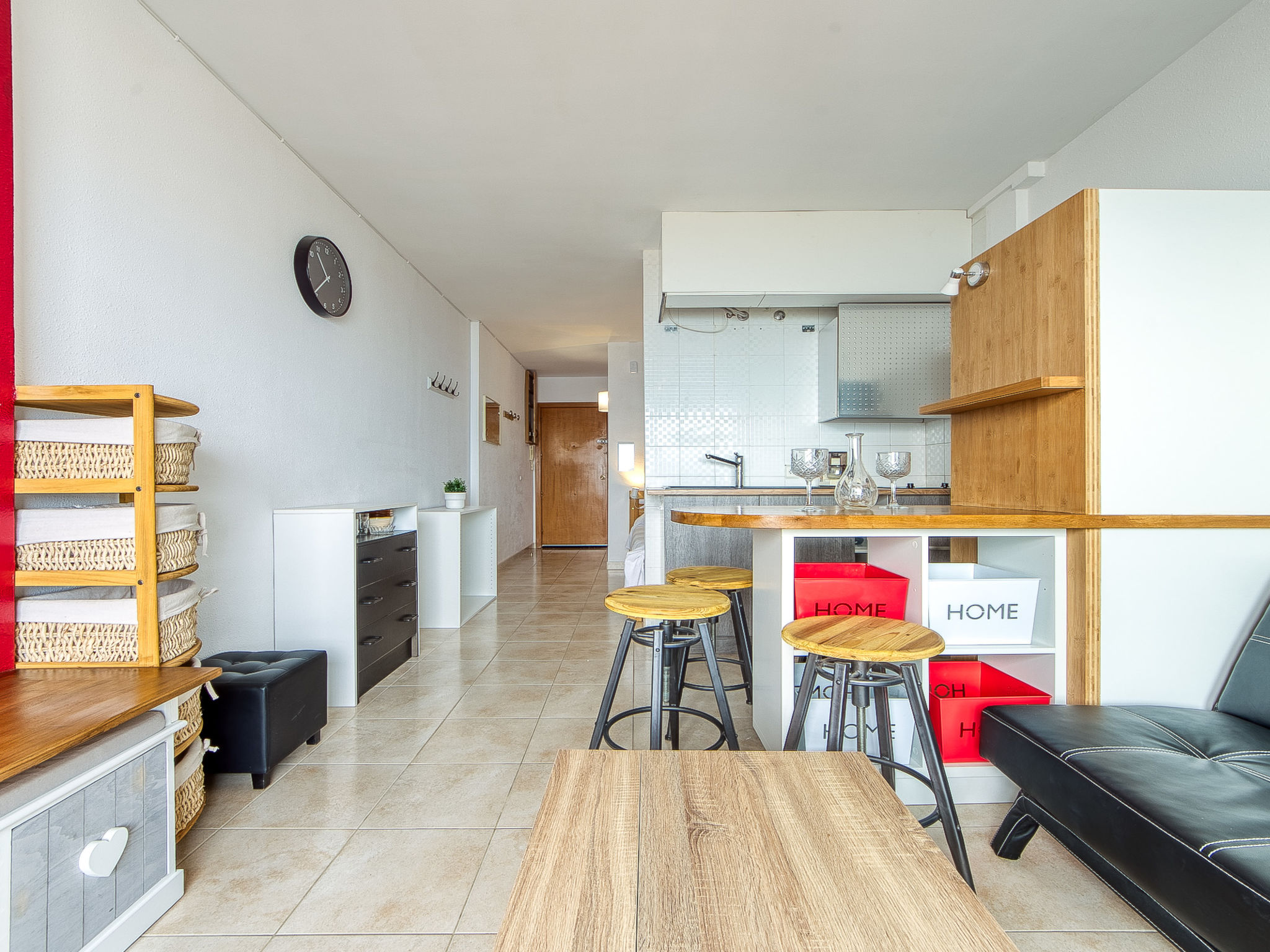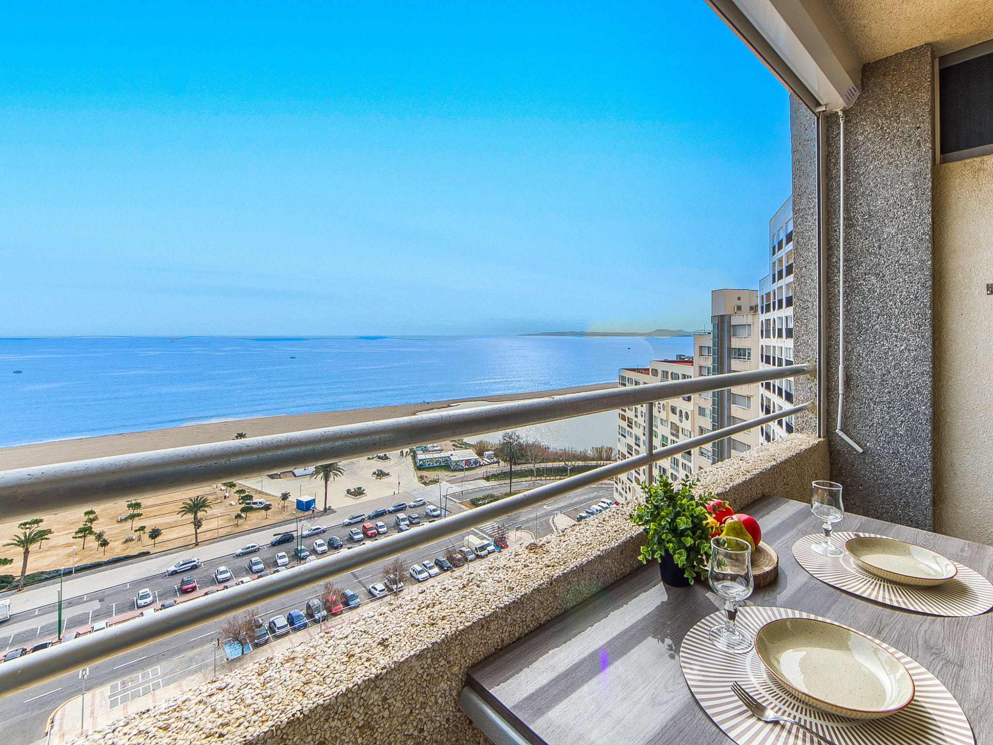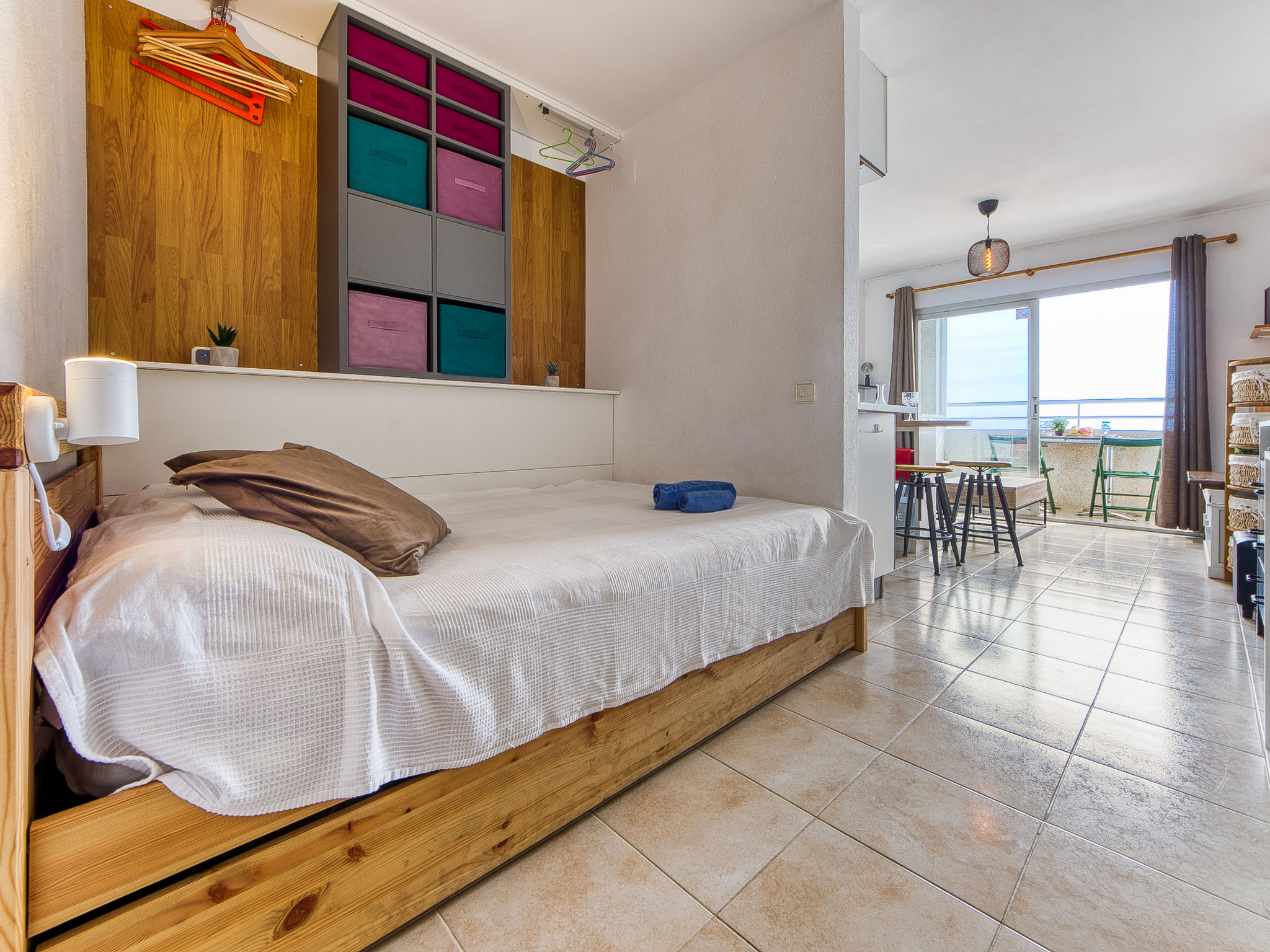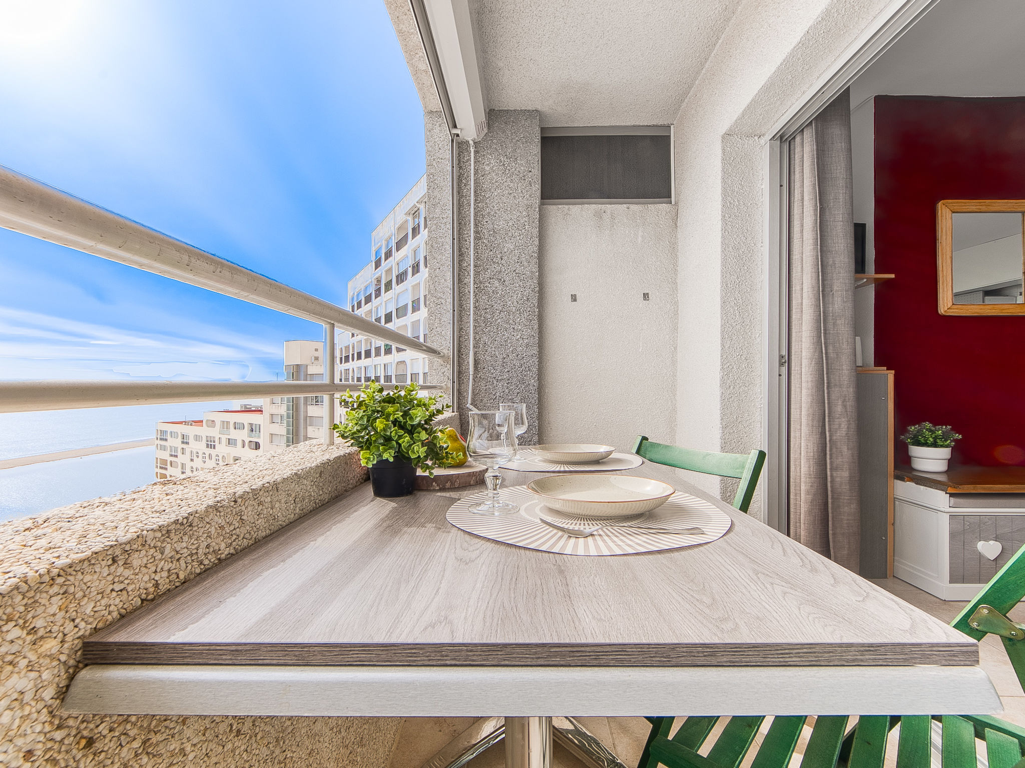 1-Zimmer-Wohnung 30 m2 im 14. Stock. Hell, vollständig renoviert im Jahre 2020, zweckmässig und gemütlich eingerichtet: Wohn-/Esszimmer mit Sat-TV. Ausgang zum Balkon, Richtung Süden. 1 offenes Zimmer mit 1 franz. Bett (140 cm, Länge 190 cm). Offene Küche (2 Glaskeramikherd Platten, Toaster, Mikrowelle, Tiefkühler, elektrische Kaffeemaschine). Dusche/WC. Kleiner Balkon 5 m2, Südlage. Balkonmöbel. Sehr schöne Panoramasicht auf das Meer. Zur Verfügung: Waschmaschine, Bügeleisen, Haartrockner. Bitte beachten: TV nur FR. HUTG059272