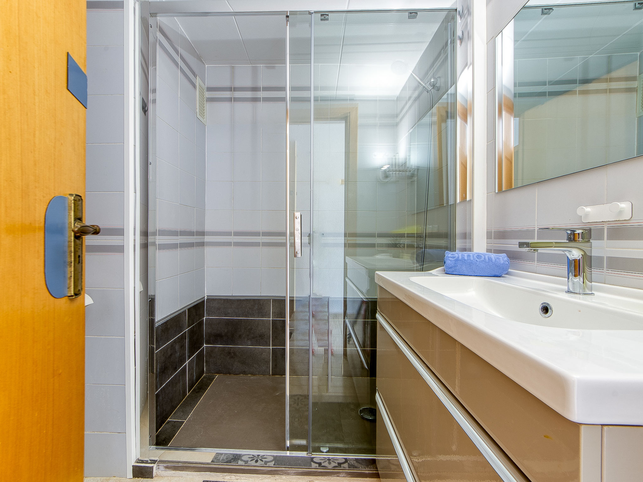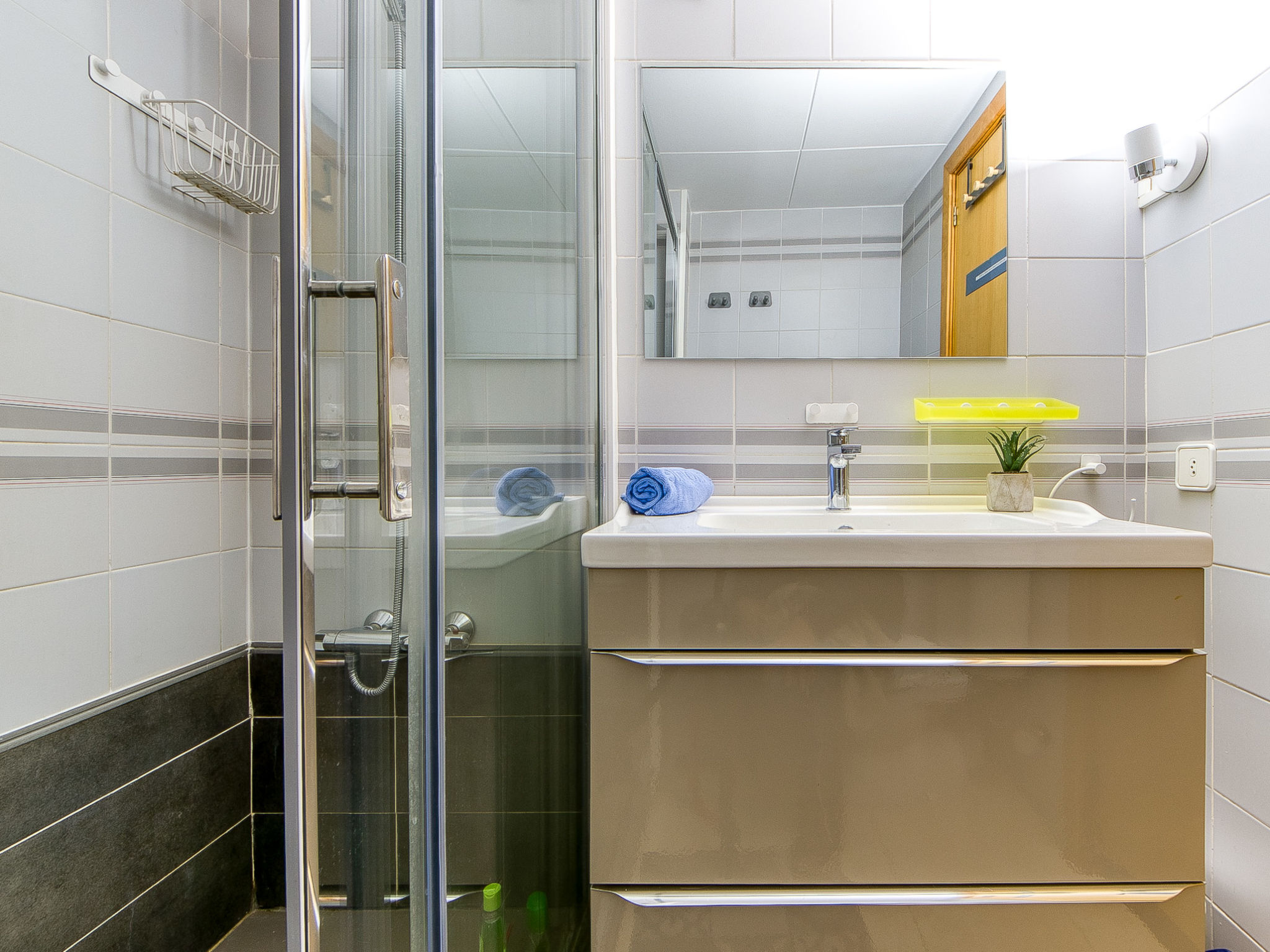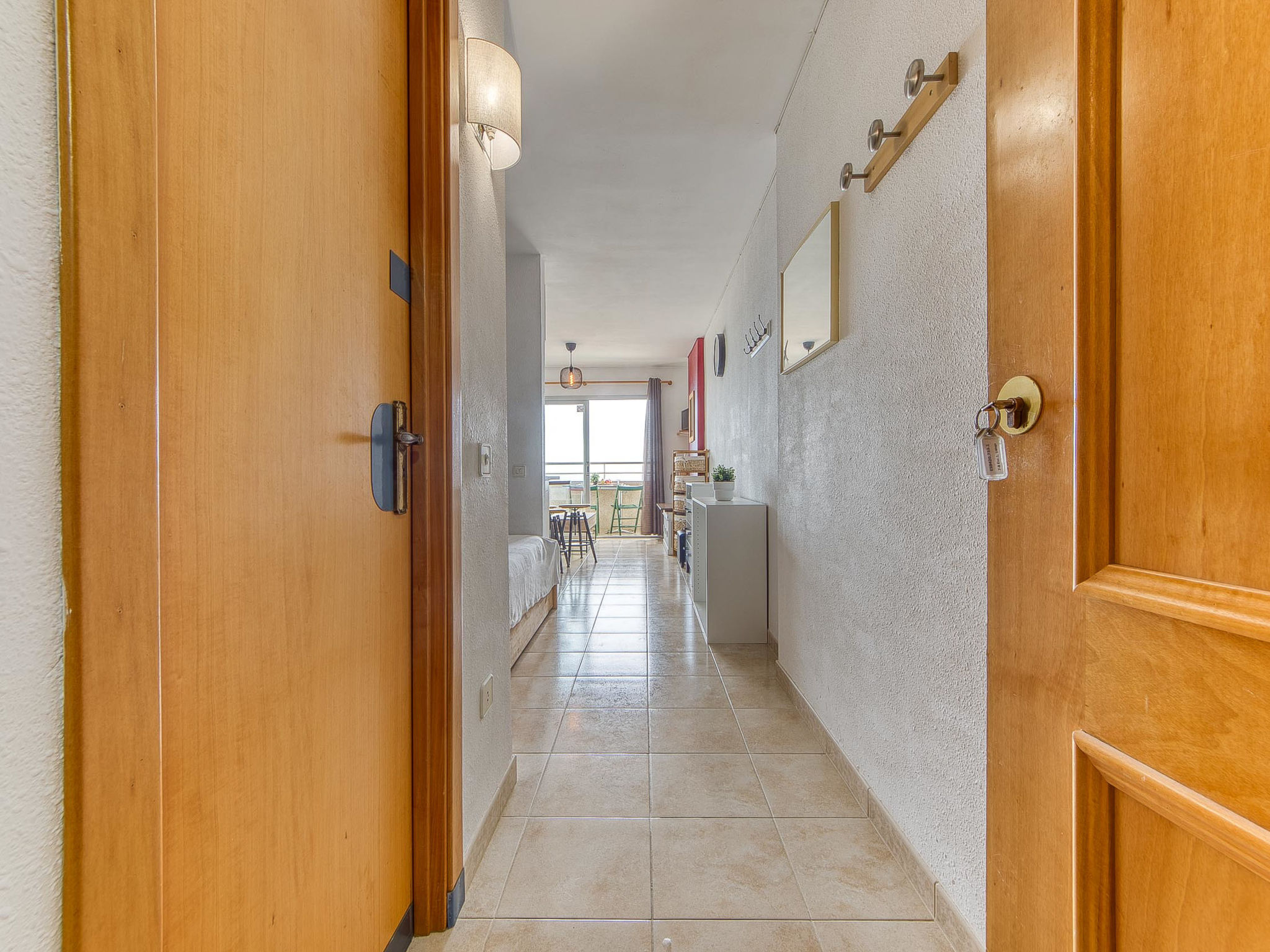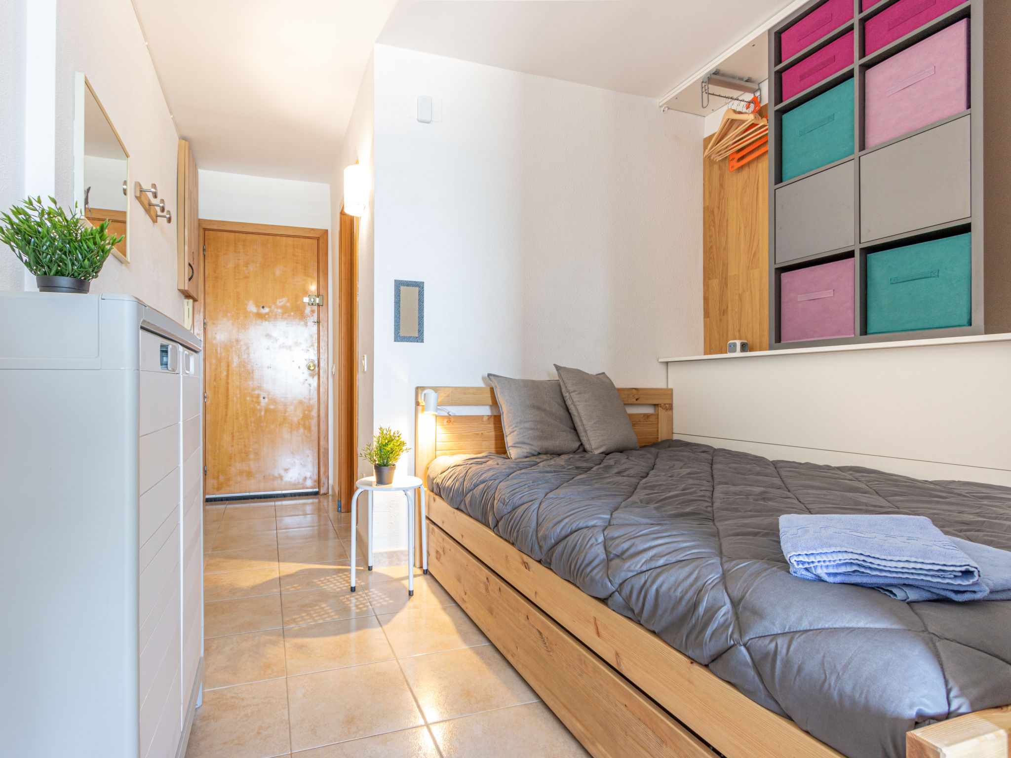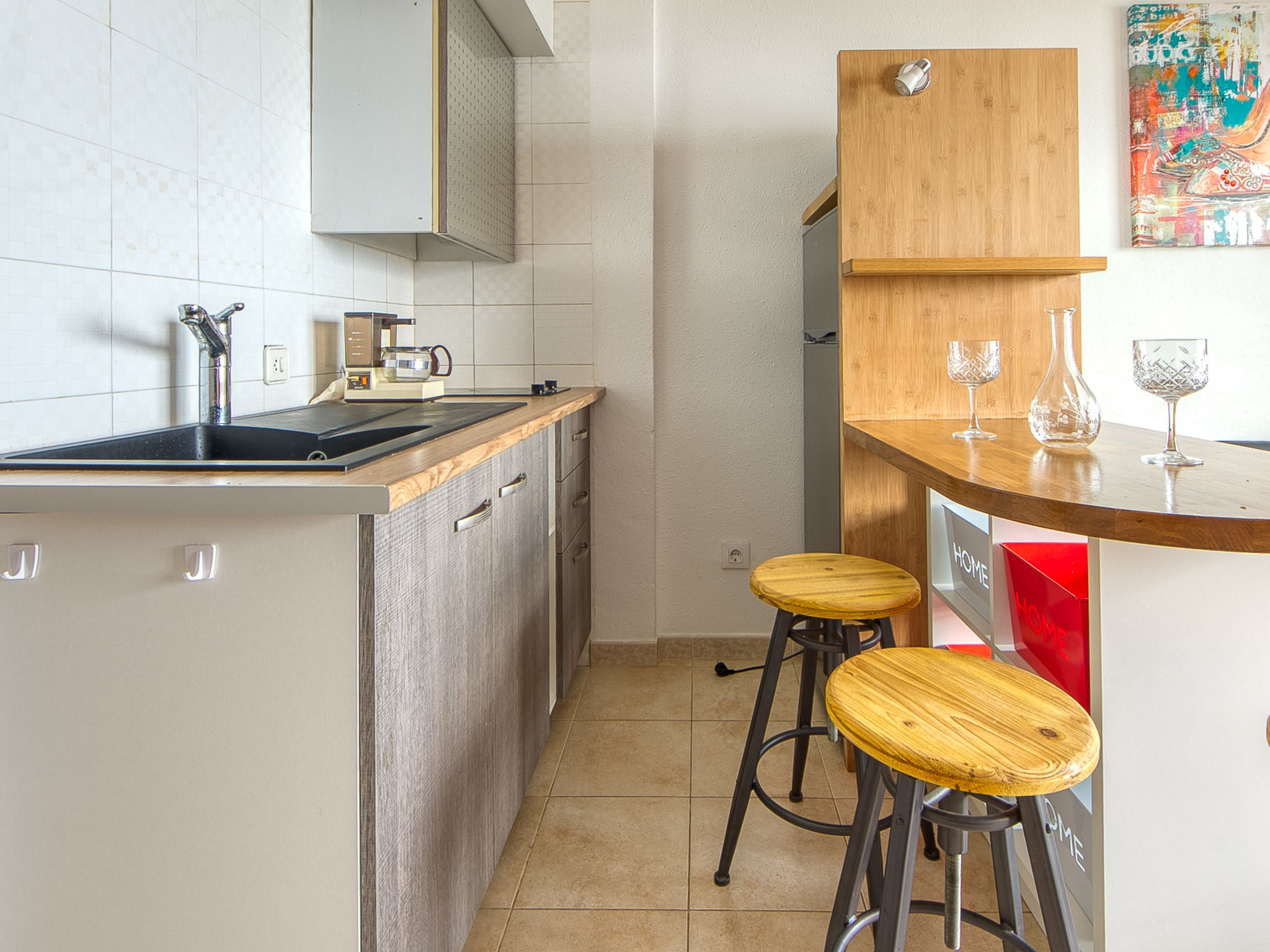 1-Zimmer-Wohnung 30 m2 im 14. Stock. Hell, vollständig renoviert im Jahre 2020, zweckmässig und gemütlich eingerichtet: Wohn-/Esszimmer mit Sat-TV. Ausgang zum Balkon, Richtung Süden. 1 offenes Zimmer mit 1 franz. Bett (140 cm, Länge 190 cm). Offene Küche (2 Glaskeramikherd Platten, Toaster, Mikrowelle, Tiefkühler, elektrische Kaffeemaschine). Dusche/WC. Kleiner Balkon 5 m2, Südlage. Balkonmöbel. Sehr schöne Panoramasicht auf das Meer. Zur Verfügung: Waschmaschine, Bügeleisen, Haartrockner. Bitte beachten: TV nur FR. HUTG059272
