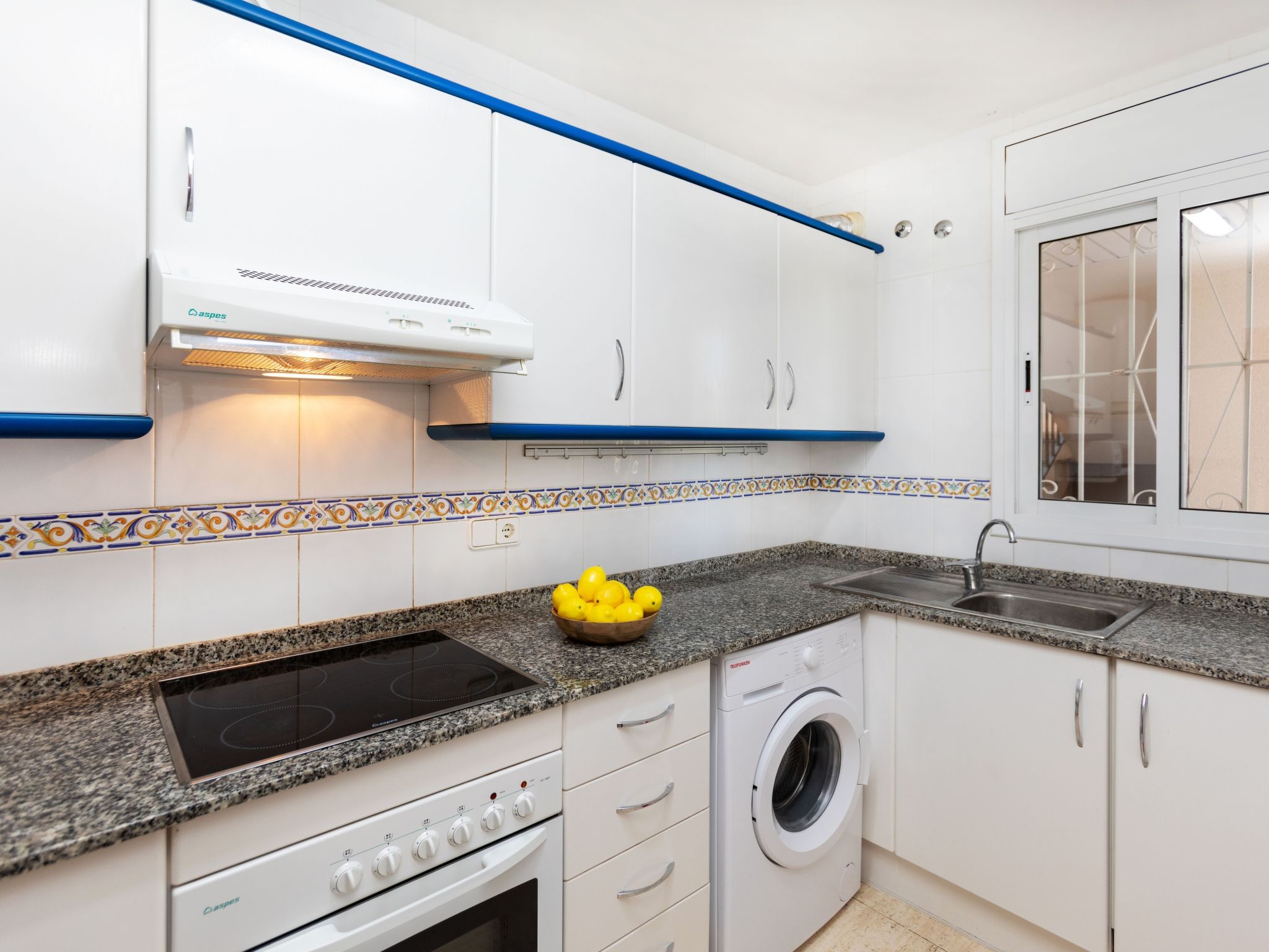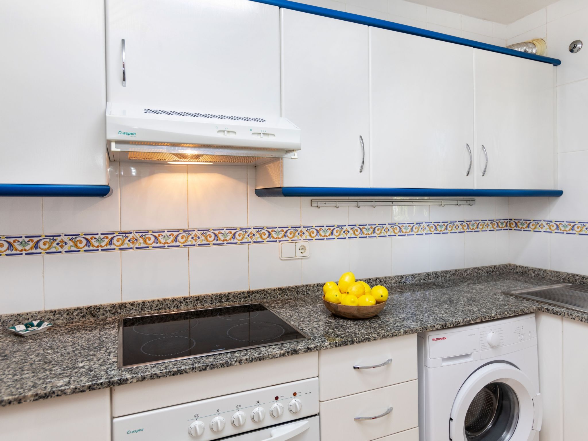 "Apartamentos Miranda", 3-Zimmer-Wohnung 70 m2. Komfortabel und gemütlich eingerichtet: Wohn-/Esszimmer mit Esstisch und Digital-TV. 1 Zimmer mit 2 x 2 Etagenbetten (90 cm). 1 Zimmer mit 1 franz. Bett (135 cm). Küche (4 Kochplatten, Backofen, Toaster, Wasserkocher, Mikrowelle, elektrische Kaffeemaschine). Bad/WC. Terrasse. Terrassenmöbel. Zur Verfügung: Waschmaschine, Bügeleisen, Haartrockner. HUTT055916