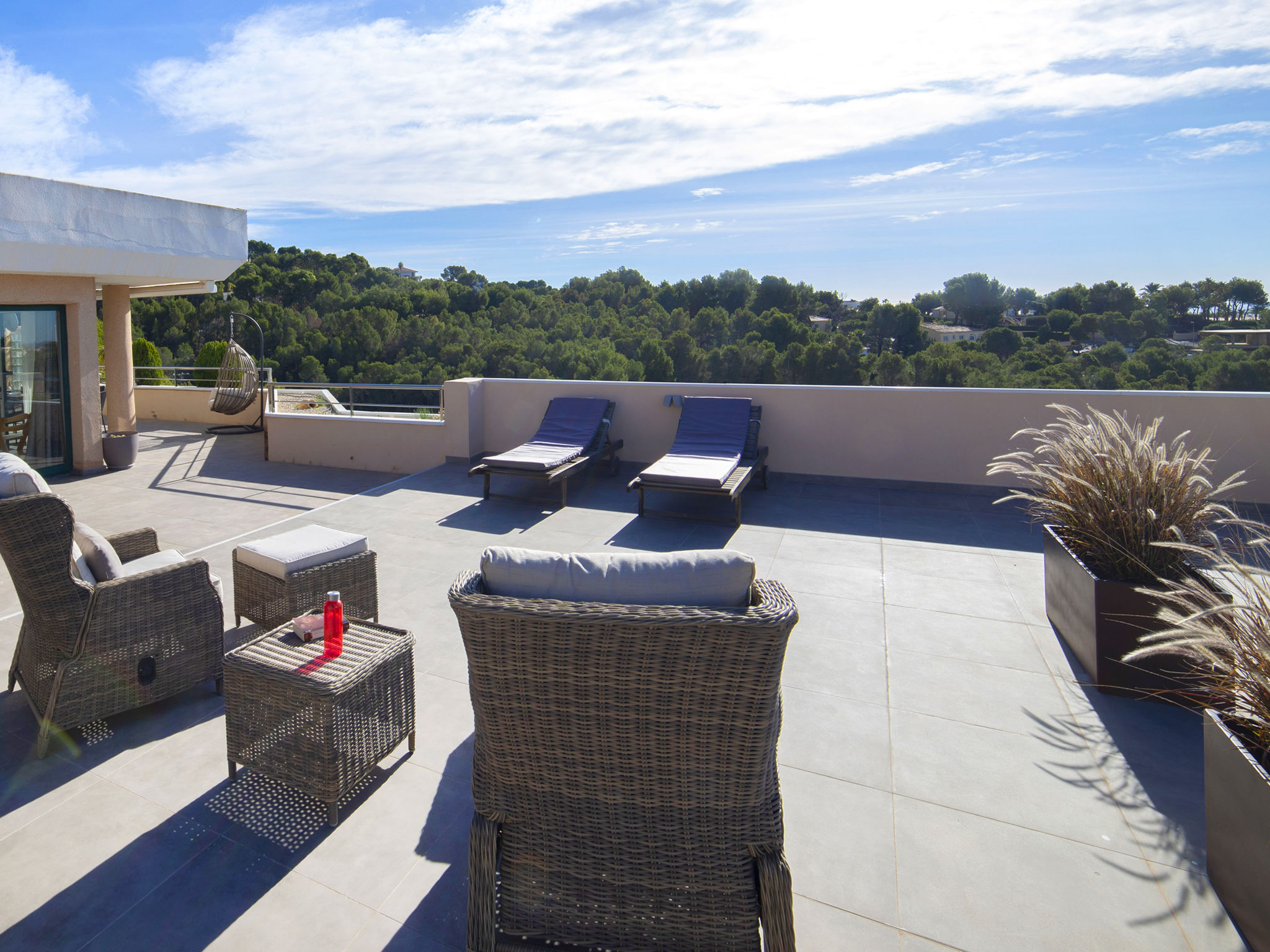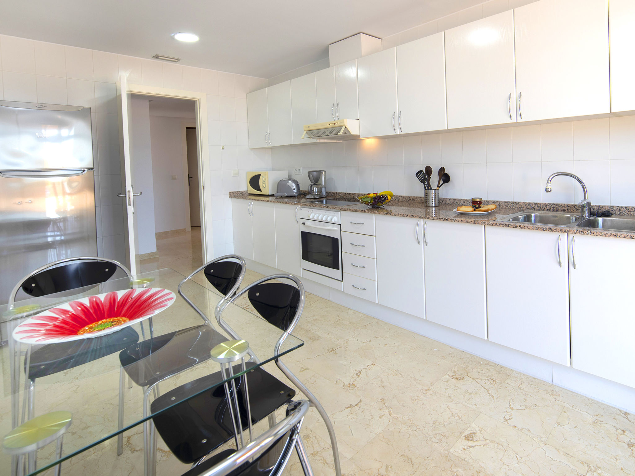 "Casanova", 4-Zimmer-Attikawohnung 127 m2 im 5. Stock. Geräumig und hell, komfortabel und schön eingerichtet: grosses Wohn-/Esszimmer mit Sat-TV, Digital-TV, Klimaanlage und Warmluftheizung. Ausgang zur Terrasse. 1 Zimmer mit 1 franz. Bett (180 cm, Länge 200 cm), Bad/Bidet/WC, Doppelwaschbecken, Klimaanlage und Warmluftheizung. Ausgang zur Terrasse. 1 Zimmer mit 1 franz. Bett (150 cm, Länge 190 cm), Klimaanlage und Warmluftheizung. 1 Zimmer mit 2 Betten (90 cm, Länge 200 cm), Klimaanlage und Warmluftheizung. Küche (Backofen, Geschirrspüler, 4 Glaskeramikherd Platten, Toaster, Wasserkocher, Mikrowelle, elektrische Kaffeemaschine). Bad/WC. Grosse Terrasse 200 m2. Terrassenmöbel, Sitzplatz. Schöne Fernsicht auf das Meer und das Städtchen. Zur Verfügung: Waschmaschine, Bügeleisen, Kinderhochstuhl, Babybett bis 2 Jahre, Haartrockner. Internet (Wireless LAN, gratis). Garage Nr. 12. Bitte beachten: für Kleinkinder nicht geeignet. Nichtraucher-Haus. VT-488188-A