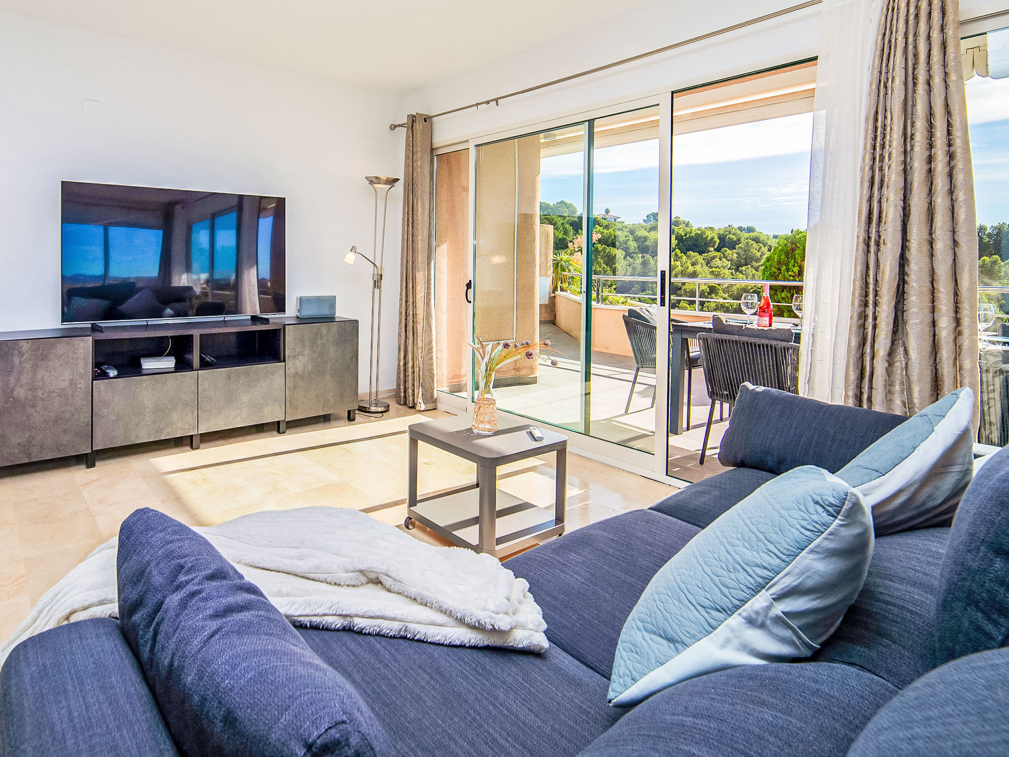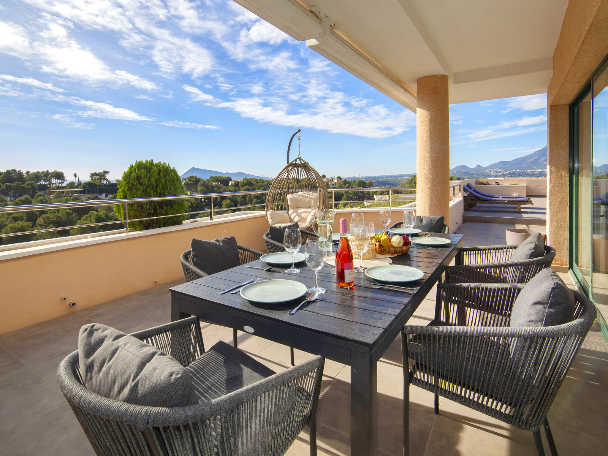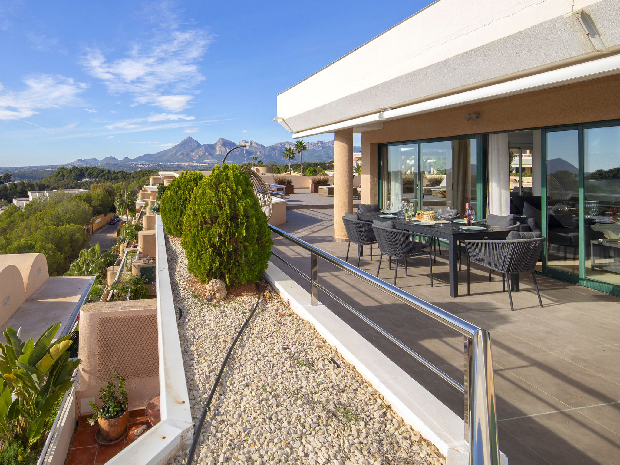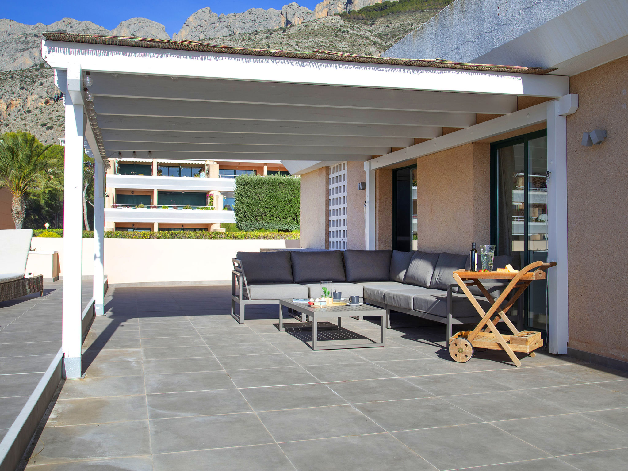Sierra de Altea: Schönes Appartementhaus "Altea La Nova". 2.2 km vom Zentrum von Altea la Vieja, 6 km vom Zentrum von Altea, sonnige, erhöhte Lage, verkehrsberuhigte Zone, 3.5 km vom Meer, 3.5 km vom Strand. Zur Mitbenutzung: Grundstück (eingezäunt), Garten mit Rasen, Schwimmbad (saisonale Verfügbarkeit: 01.Mai.-30.Sep.) mit Innentreppe. Kinderbecken, Aussendusche, Terrasse. Im Hause: Empfang, Fahrstuhl. Einkaufsgeschäft 2.2 km, Lebensmittelgeschäft 2.2 km, Supermarkt 2.2 km, Restaurant 3 km, Bar 2.2 km, Bäckerei 2.2 km, Café 2.2 km, Internet-Café 2.2 km, Fußgängerzone 2.2 km, Fahrradverleih 2.2 km, Biergarten 2.2 km, Zentrum zu Fuss in 33 Minuten erreichbar, Sandstrand "Playa Puerto Blanco -Calpe-" 12 km, Badebucht 5 km. Sporthafen 7 km, Jacht-Hafen 7 km, Golfplatz (9 Loch) 1 km, Surfschule 7 km, Segelschule 7 km. Nahe gelegene Sehenswürdigkeiten: Aqualandia 20 km, Mundomar 20 km, Terra Mitica 25 km, Terra Natura 25 km, Fuentes del Algar 22 km, Guadalest 25 km. Wandergebiete: Peñon de Ifach 15 km. Der Besitzer akzeptiert keine Jugendgruppen.