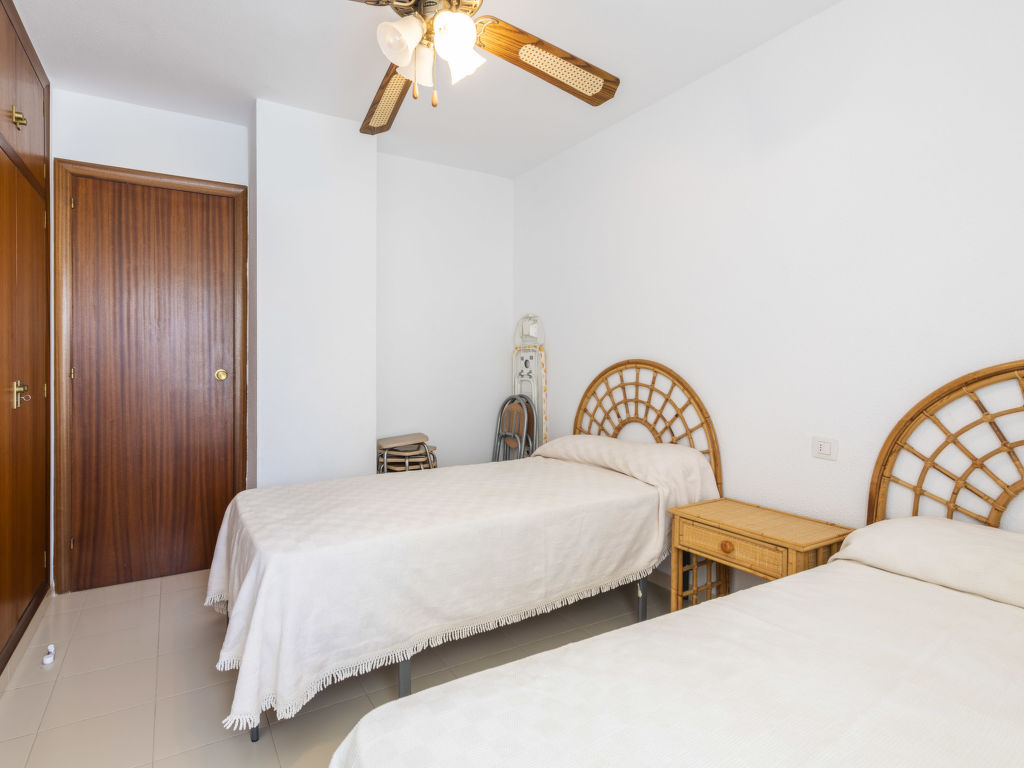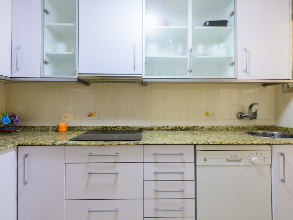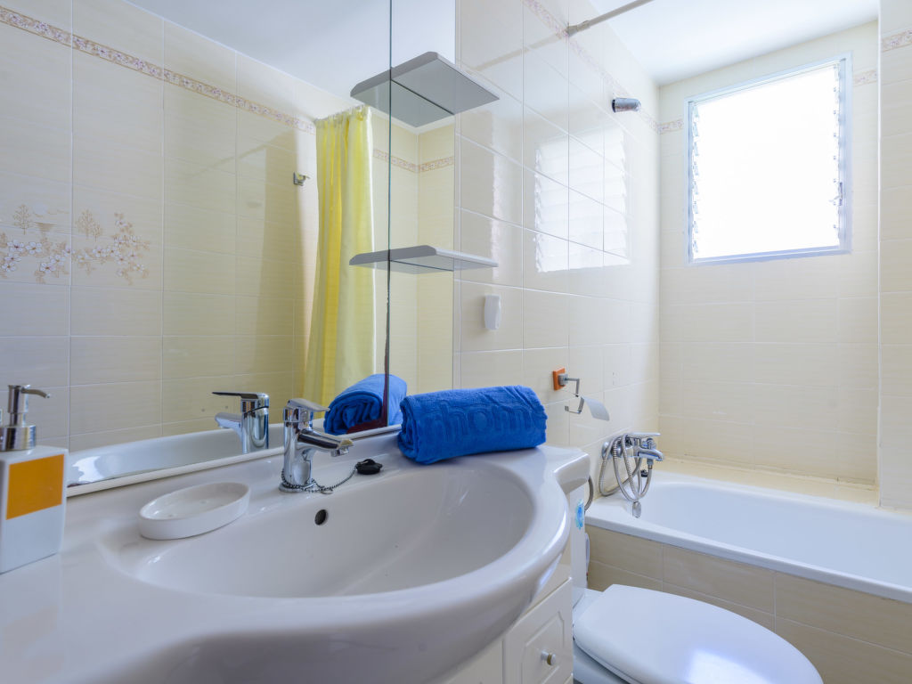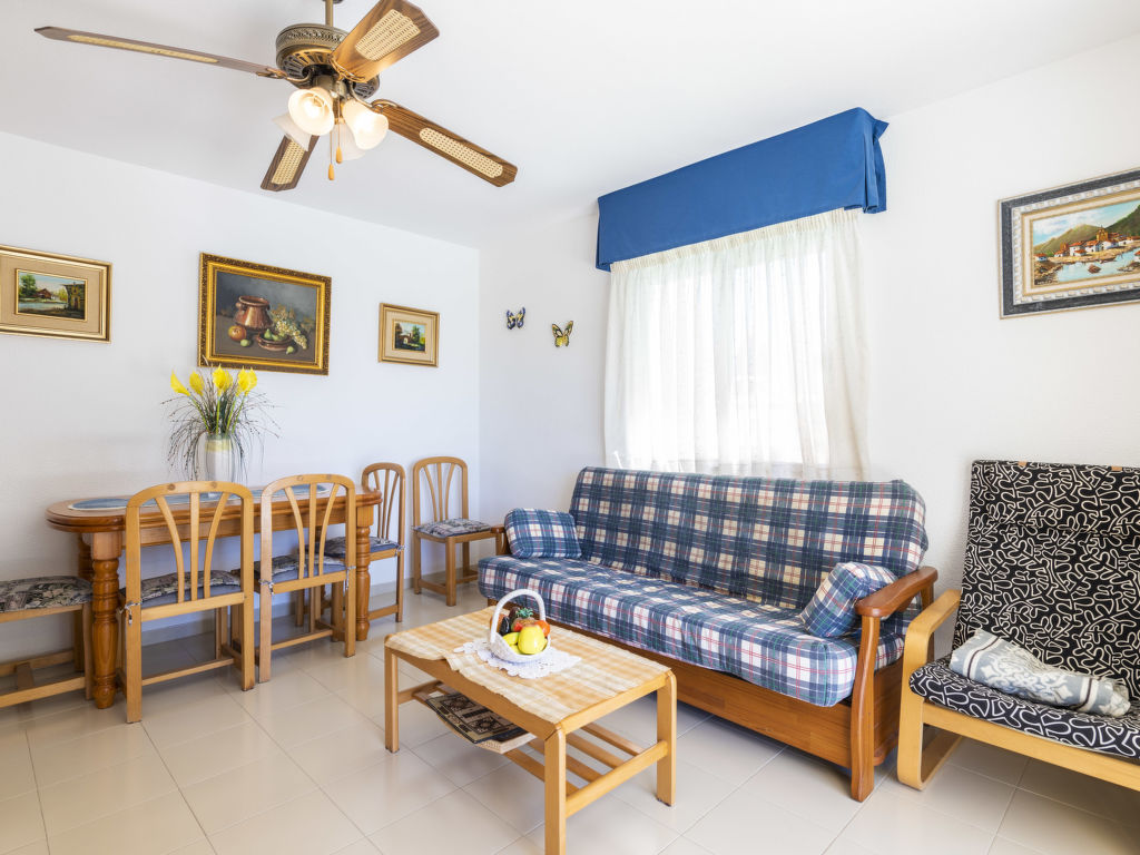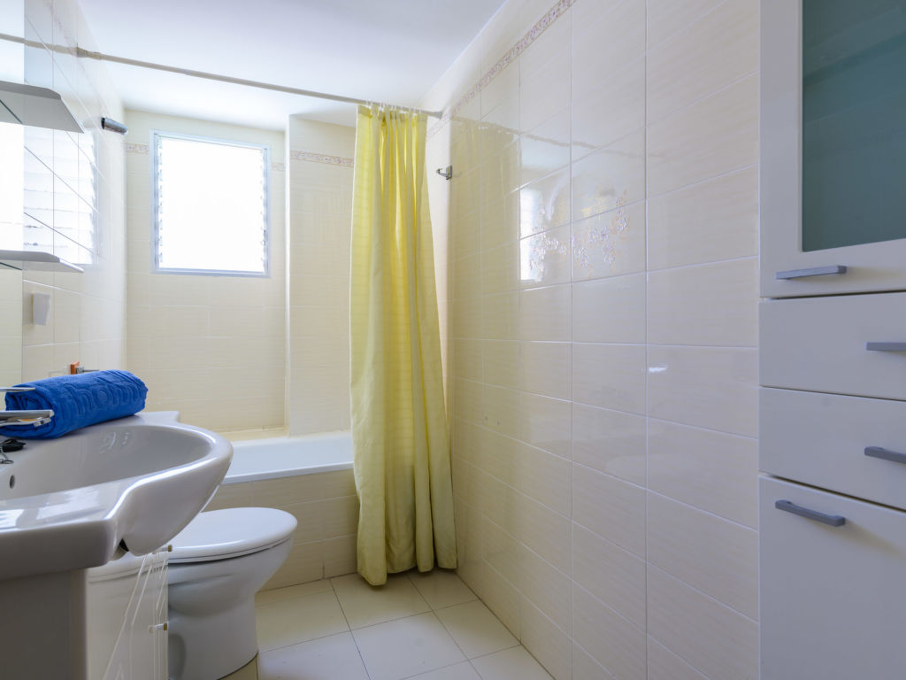"Oromar", 4-Zimmer-Wohnung 108 m2 im 2. Stock. Objekt geeignet für 7 Erwachsene. Zweckmässig und komfortabel eingerichtet: Wohn-/Esszimmer mit 1 Doppeldiwanbett, Esstisch, Digital-TV, Flachbildschirm und Ventilator. Ausgang zur Terrasse. 1 Zimmer mit 3 Betten (90 cm, Länge 190 cm), Ventilator. 1 Doppelzimmer mit 2 Betten (90 cm, Länge 190 cm), Ventilator. 1 Doppelzimmer mit 2 Betten (90 cm, Länge 190 cm), Ventilator. Küche (Backofen, Geschirrspüler, 4 Glaskeramikherd Platten, Toaster, Mikrowelle, Tiefkühler, elektrische Kaffeemaschine). 2 Bäder/Bidet/WC. E-Heizung. Heizung nicht in allen Räumen. Terrasse 12 m2. Terrassenmöbel. Sicht auf das Meer. Zur Verfügung: Waschmaschine, Bügeleisen, Haartrockner. Parkplatz (überdacht). Geeignet für Familien. 1 Haustier/Hund erlaubt. VT-41181-CS