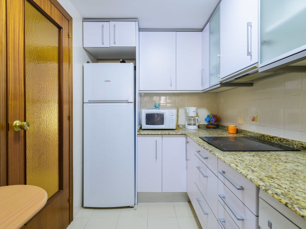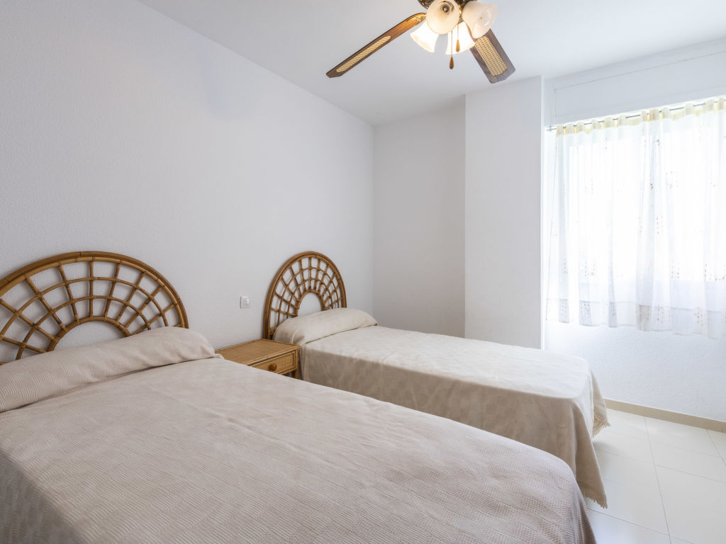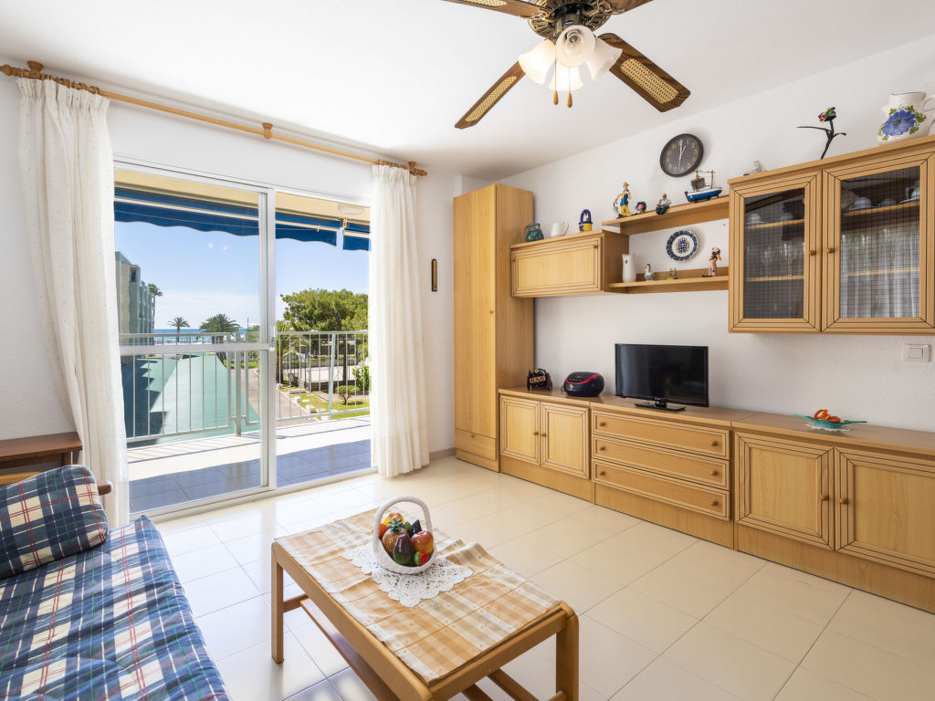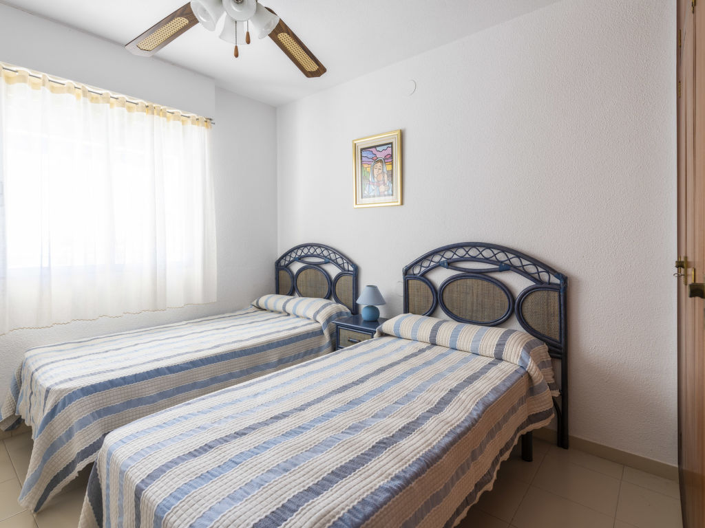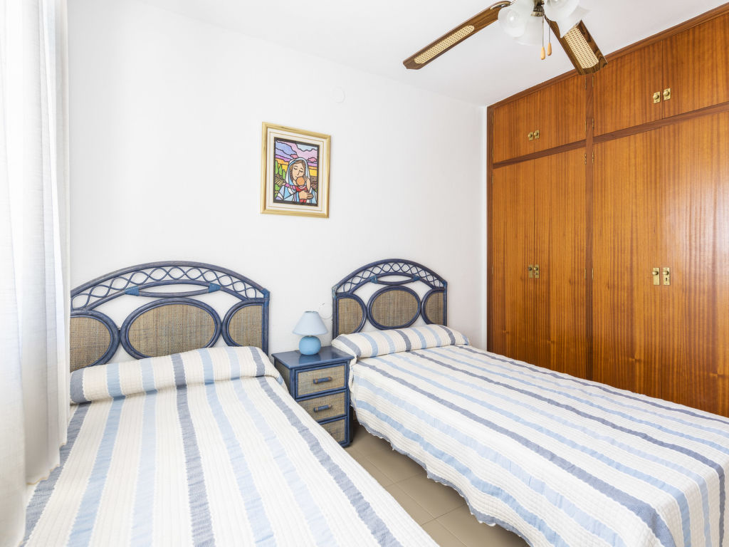 "Oromar", 4-Zimmer-Wohnung 108 m2 im 2. Stock. Objekt geeignet für 7 Erwachsene. Zweckmässig und komfortabel eingerichtet: Wohn-/Esszimmer mit 1 Doppeldiwanbett, Esstisch, Digital-TV, Flachbildschirm und Ventilator. Ausgang zur Terrasse. 1 Zimmer mit 3 Betten (90 cm, Länge 190 cm), Ventilator. 1 Doppelzimmer mit 2 Betten (90 cm, Länge 190 cm), Ventilator. 1 Doppelzimmer mit 2 Betten (90 cm, Länge 190 cm), Ventilator. Küche (Backofen, Geschirrspüler, 4 Glaskeramikherd Platten, Toaster, Mikrowelle, Tiefkühler, elektrische Kaffeemaschine). 2 Bäder/Bidet/WC. E-Heizung. Heizung nicht in allen Räumen. Terrasse 12 m2. Terrassenmöbel. Sicht auf das Meer. Zur Verfügung: Waschmaschine, Bügeleisen, Haartrockner. Parkplatz (überdacht). Geeignet für Familien. 1 Haustier/Hund erlaubt. VT-41181-CS