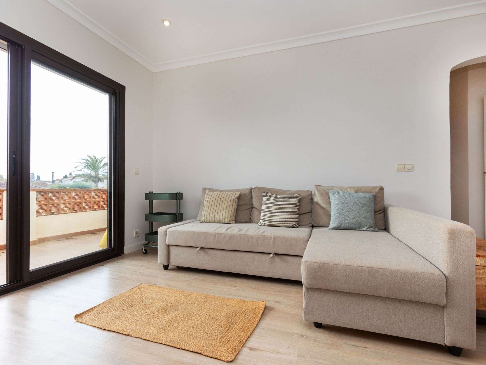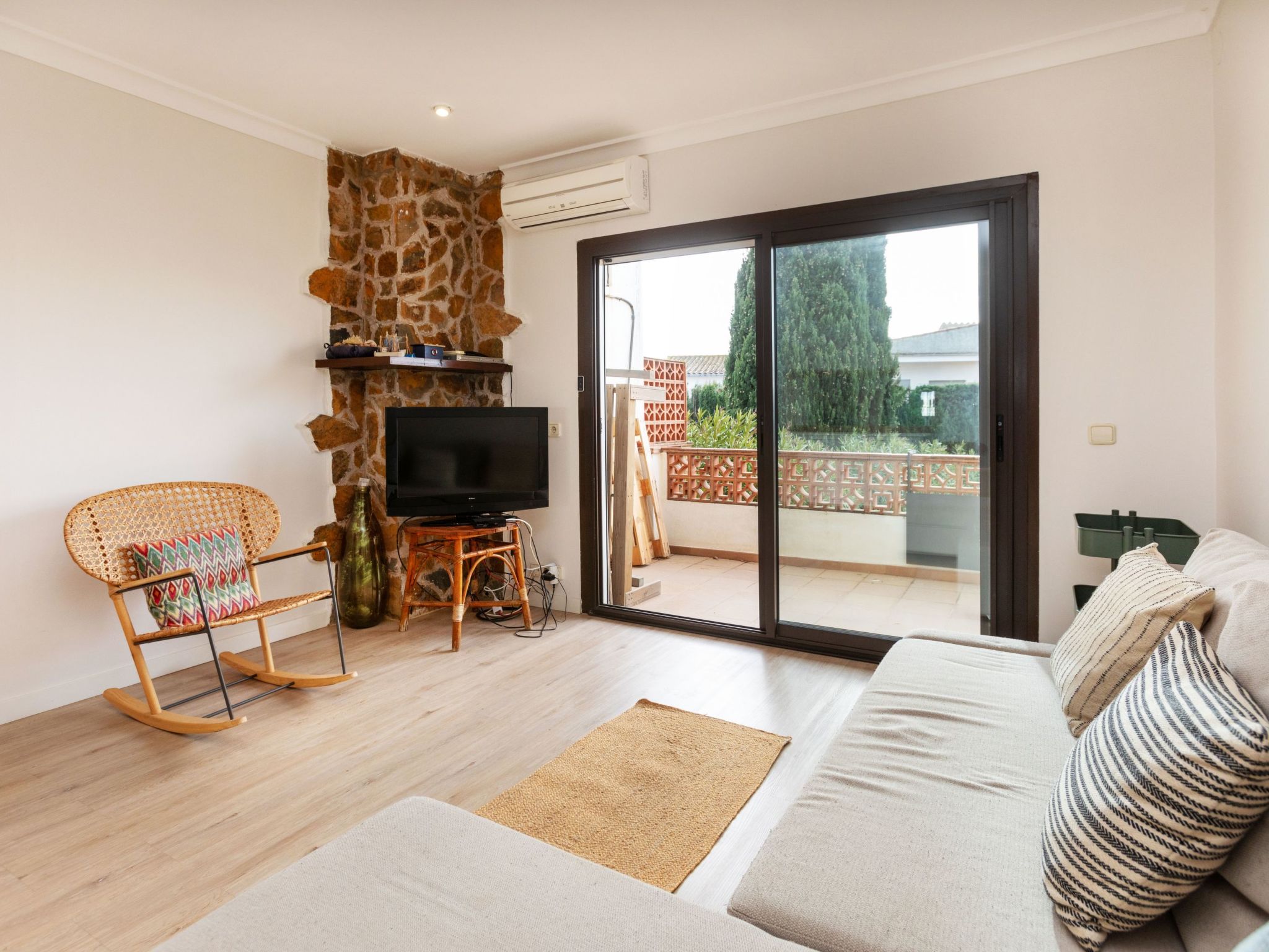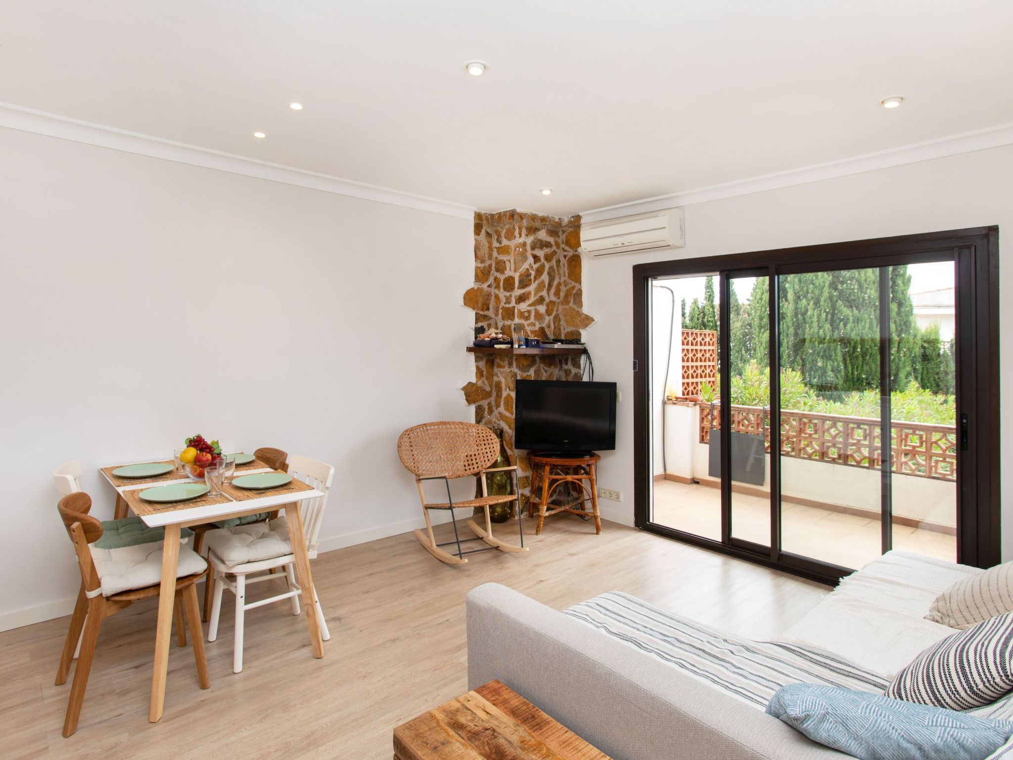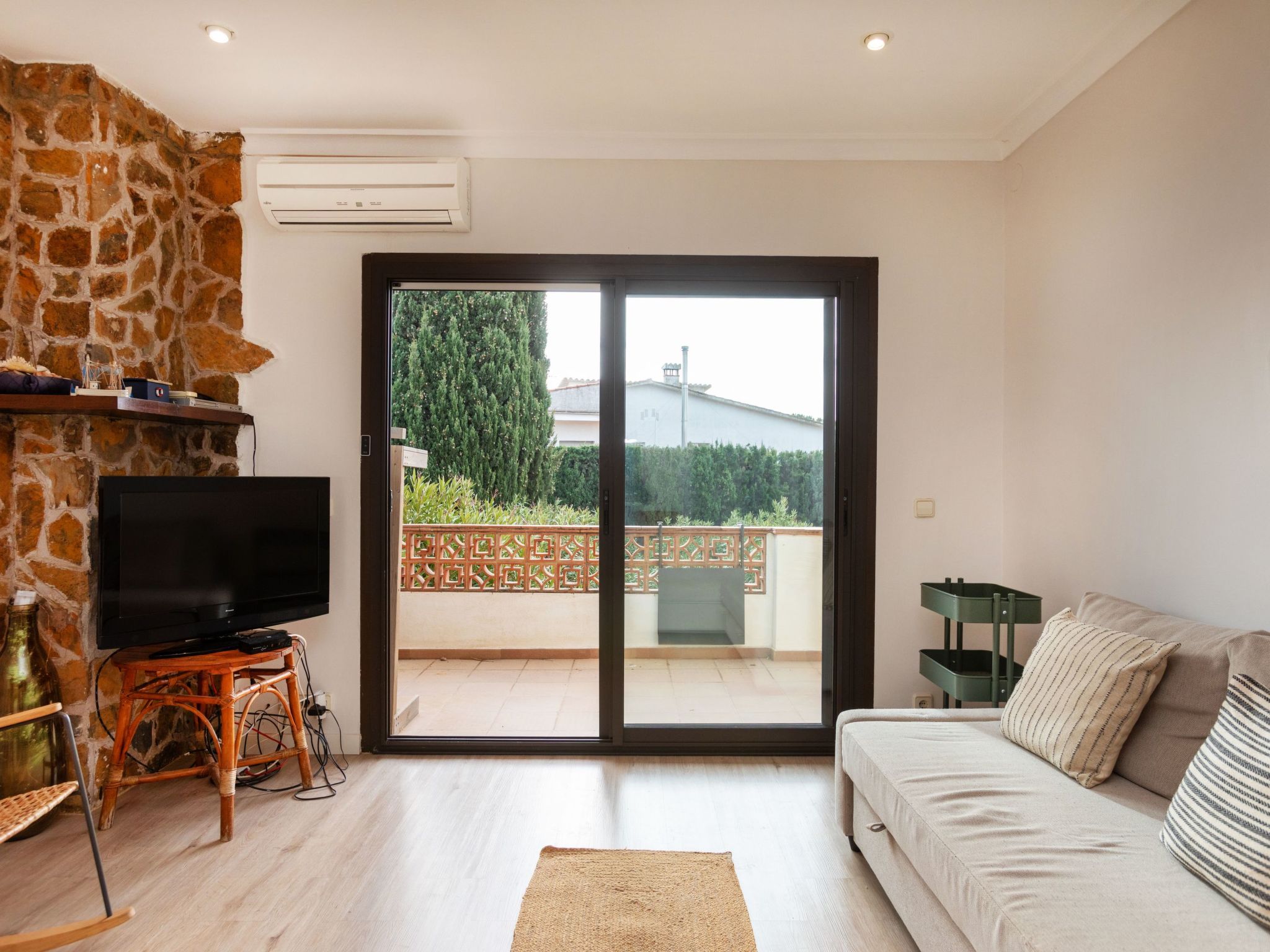 "Adelfa 7", 3-Zimmer-Wohnung 50 m2 im 1. Stock. Modern und gemütlich eingerichtet: Wohn-/Esszimmer mit Digital-TV und Klimaanlage. Ausgang zur Terrasse. 1 Zimmer mit 1 franz. Bett (150 cm, Länge 190 cm). Ausgang zur Terrasse. 1 Zimmer mit 1 franz. Bett (150 cm, Länge 190 cm). Kleine Küche (2 Glaskeramikherd Platten, Toaster, Wasserkocher, Mikrowelle, elektrische Kaffeemaschine). Dusche, sep. WC. Terrasse 14 m2, überdacht. Terrassenmöbel. Zur Verfügung: Bügeleisen, Haartrockner. Internet (Wireless LAN, gratis). Parkplatz Nr. 7 (überdacht). Bitte beachten: Nichtraucher-Unterkunft. TV nur ES. Kein Fahrstuhl. HUTG057689