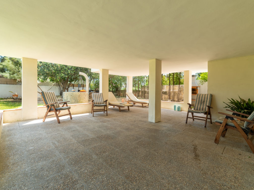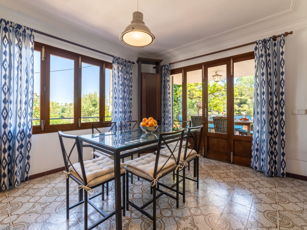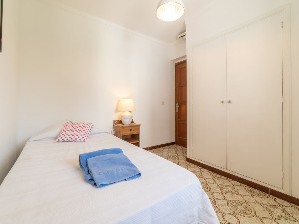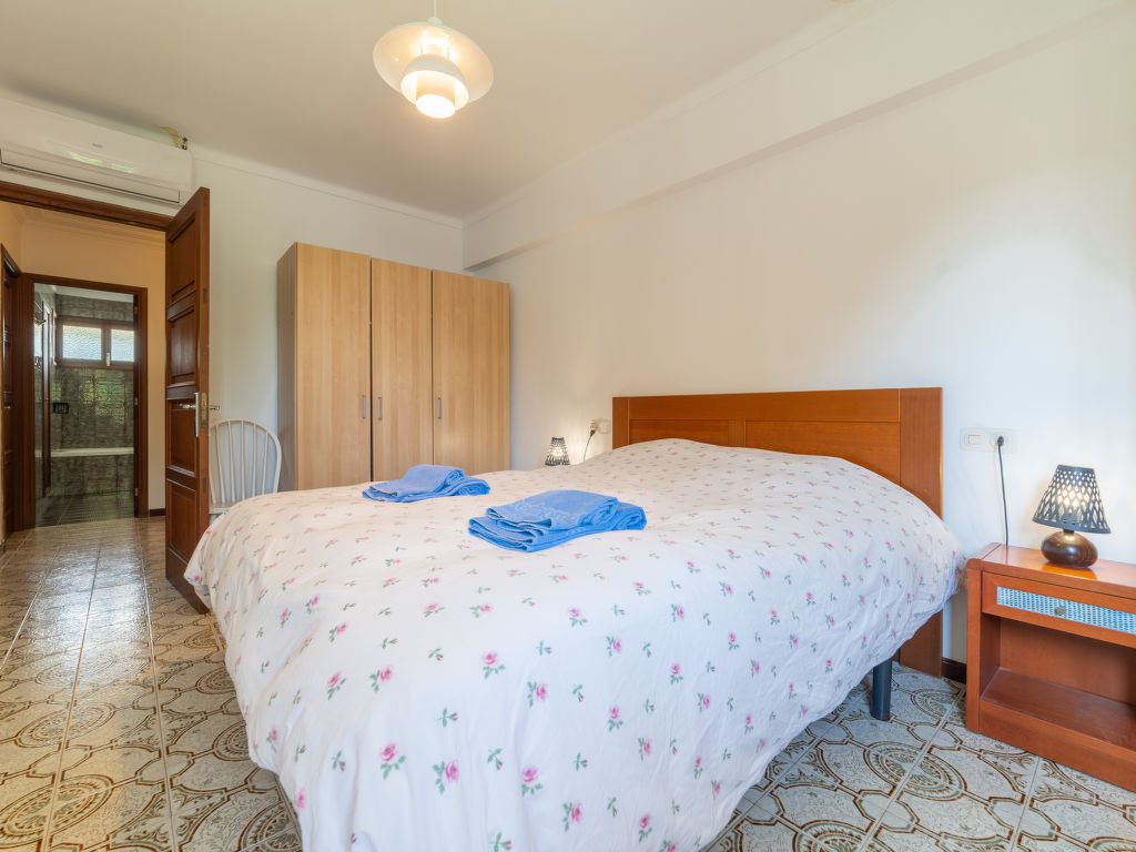 "Can Jeroni", 5-Zimmer-Haus 163 m2 im 1. Stock. Objekt geeignet für. Geräumig und hell: grosses Wohnzimmer mit Digital-TV und Flachbildschirm. Ausgang zum Balkon. Grosses Esszimmer mit Panoramafenster mit Esstisch. Ausgang zum Balkon. 1 grosses Doppelzimmer mit Panoramafenster mit 1 franz. Bett (150 cm, Länge 190 cm), Klimaanlage und Warmluftheizung. 1 grosses Doppelzimmer mit Panoramafenster mit 1 franz. Bett (135 cm, Länge 190 cm), Klimaanlage und Warmluftheizung. 1 grosses Doppelzimmer mit Panoramafenster mit 2 Betten (90 cm, Länge 190 cm), Klimaanlage und Warmluftheizung. 1 Zimmer mit Panoramafenster mit 1 Bett (90 cm, Länge 190 cm). Wohnküche (Backofen, Geschirrspüler, 3 Glaskeramikherd Platten, Toaster, Wasserkocher, Mikrowelle, Tiefkühler, elektrische Kaffeemaschine) mit Esstisch. Ausgang zum Gartensitzplatz. Bad/Bidet/WC, Dusche/WC. Grosser Balkon, grosser Gartensitzplatz, Rasen, Laube. Terrassenmöbel, Balkonmöbel, Gartengrill, Liegestühle, Loggia, Abstellkammer. Sicht auf die Ortschaft. Zur Verfügung: Waschmaschine, Bügeleisen, Kinderhochstuhl, Babybett bis 2 Jahre, Haartrockner. Internet (Wireless LAN, gratis). Parkplatz. ETV11431