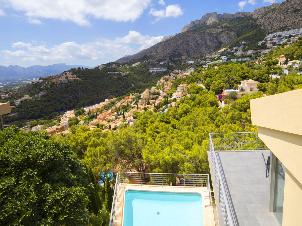 Altea Hills: Die im Haus installierten Sonnenkollektoren machen es autark bei der Erzeugung von Strom für den Eigenverbrauch. Moderne, schöne Villa "La Estrella", auf 2 Stockwerken. Im Ort, 7 km vom Zentrum von Altea, 9 km vom Zentrum von Calpe, ruhige, sonnige, erhöhte Lage im Villenviertel, verkehrsberuhigte Zone, 4 km vom Meer, 4 km vom Strand, in einer Sackgasse. Zur Alleinbenutzung: Grundstück 863 m2 (eingezäunt), schöner, gepflegter Garten, Schwimmbad (6 x 5 m, 01.01.-31.12.). Aussendusche, Terrasse, Grill. Treppenweg bis zum Haus. Parkplatz (für 2 Autos). Supermarkt 3 km, Restaurant 4 km, Felsstrand "Playa de l´Olla" 4 km. Sporthafen 4 km, Jacht-Hafen 4 km, Golfplatz 6 km, Segelschule 4 m. Nahe gelegene Sehenswürdigkeiten: Aqualandia, Mundomar, Terra Mítica, Terra Natura, Benidorm Palace (Benidorm), Les Fonts de l'Algar, Castillo de Guadalest. Bitte beachten: Fahrzeug empfohlen. Der Besitzer akzeptiert keine Jugendgruppen.