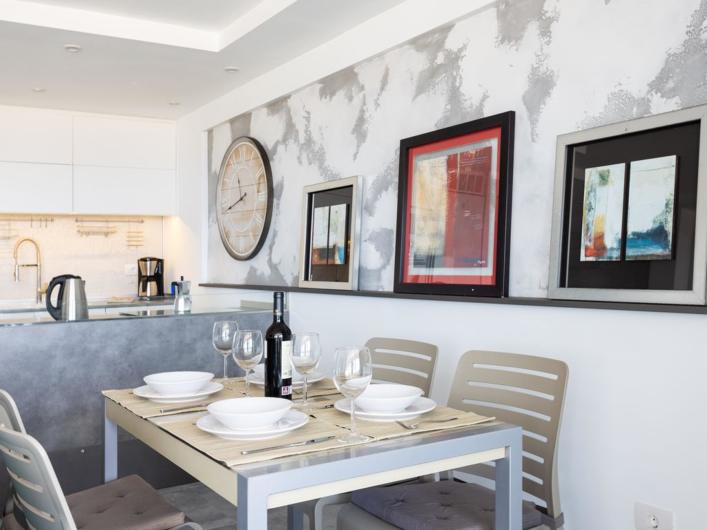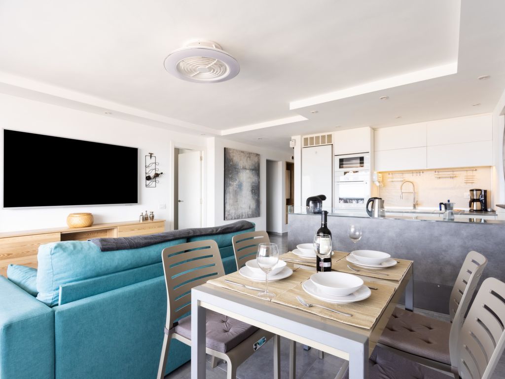 Neues, modernes, komfortables Hausboot "Apartment Royal Sunset Loggia", Baujahr 2000, renoviert im Jahre 2021. Hausausstattung: Fahrstuhl, Waschmaschine (zur Alleinbenutzung). Zufahrt & Parkmöglichkeiten: auf der Strasse. Ganzjährig Zufahrt bis zum Haus möglich. Lage: im Ortszentrum von Palm Mar, zentrale, sonnige Lage am Meer. Aussicht von der Wohnung auf das Meer und die Ortschaft. Infrastruktur und Distanzen: Einkaufsgeschäft 50 m, Lebensmittelgeschäft 50 m, Supermarkt 50 m, Restaurant 50 m, Steinstrand 200 m, Sportzentrum 50 m, Golfplatz 3 km, Kinderspielplatz 200 m, Bushaltestelle 50 m.
