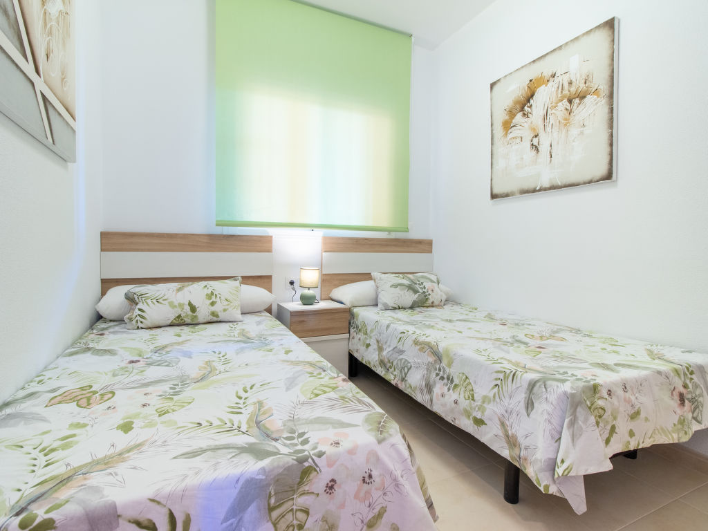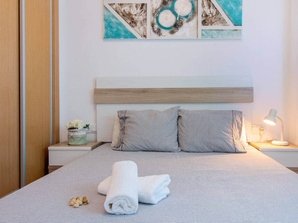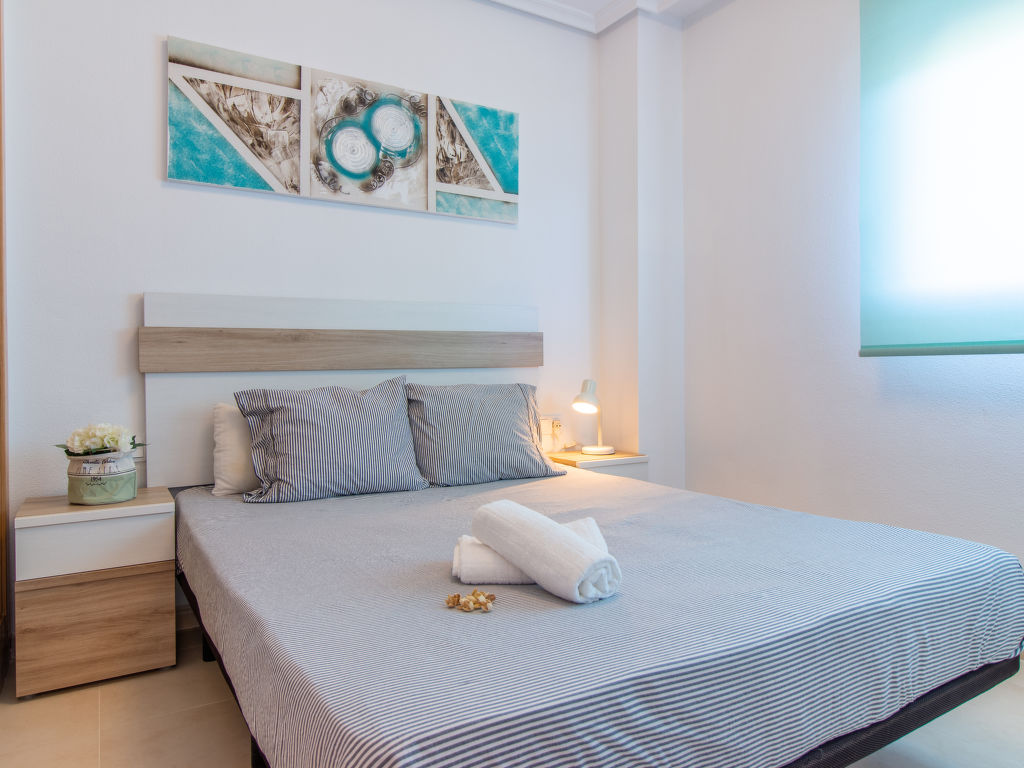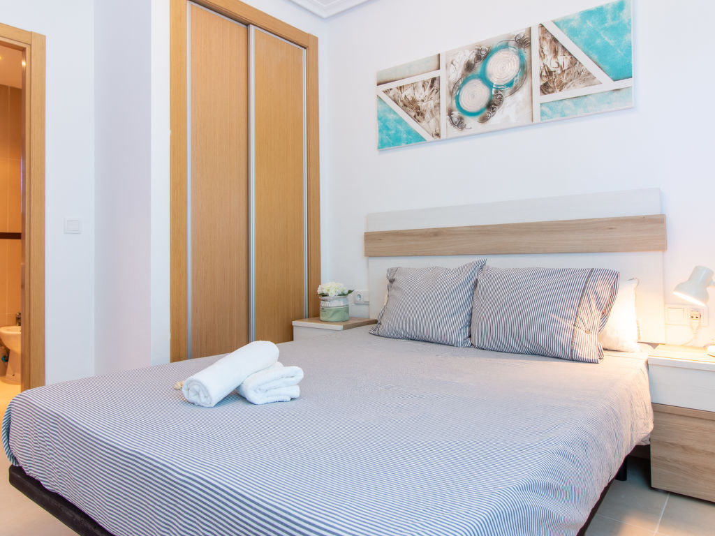 "Playa Dorada", 3-Zimmer-Wohnung 60 m2 im 9. Stock. Zweckmässig und komfortabel eingerichtet: Wohn-/Esszimmer mit Esstisch, Digital-TV, Flachbildschirm und Ventilator. Ausgang zur Terrasse. 1 Zimmer mit 1 franz. Bett (150 cm, Länge 190 cm), Bad/Bidet/WC. 1 Zimmer mit 2 Betten (90 cm, Länge 190 cm). Küche (Backofen, Geschirrspüler, 4 Glaskeramikherd Platten, Toaster, Mikrowelle, Tiefkühler, elektrische Kaffeemaschine). Dusche/Bidet/WC. Heizung nicht in allen Räumen. Terrasse. Terrassenmöbel. Sicht auf das Meer und die Ortschaft. Zur Verfügung: Waschmaschine, Bügeleisen, Haartrockner. Internet (Wireless LAN, gratis). Parkplatz beim Haus. Bitte beachten: Nichtraucher-Unterkunft. VT-41286-CS