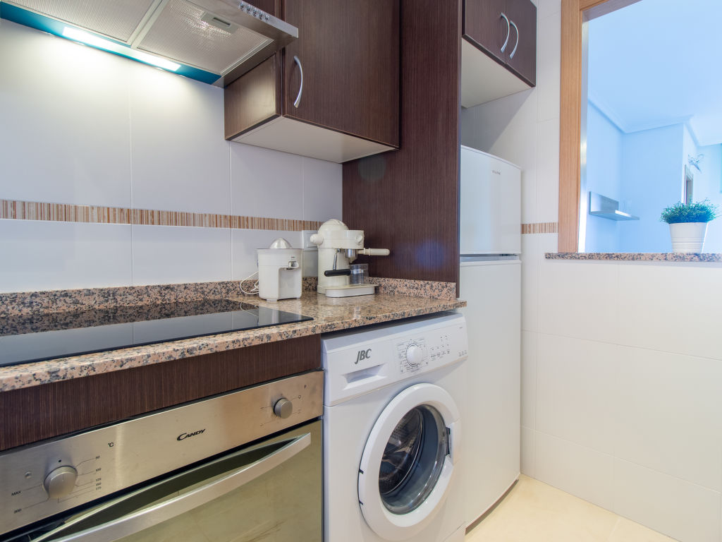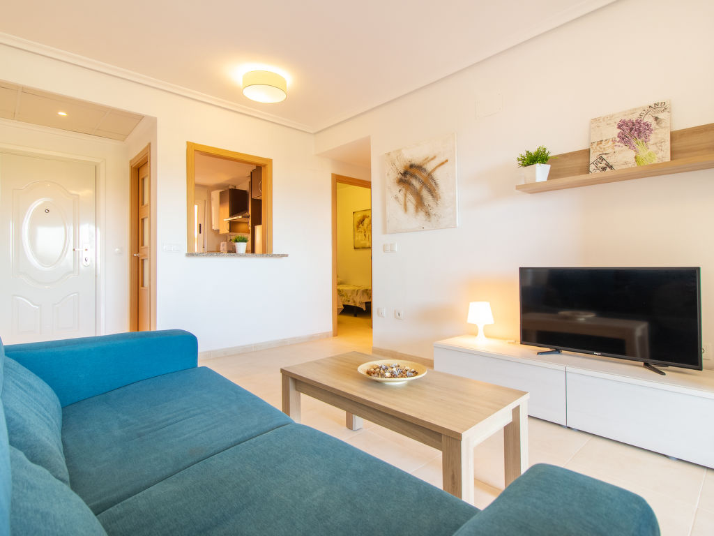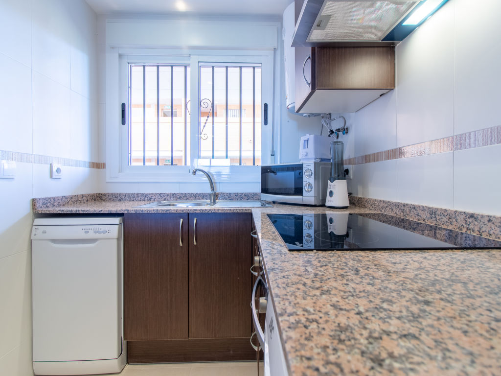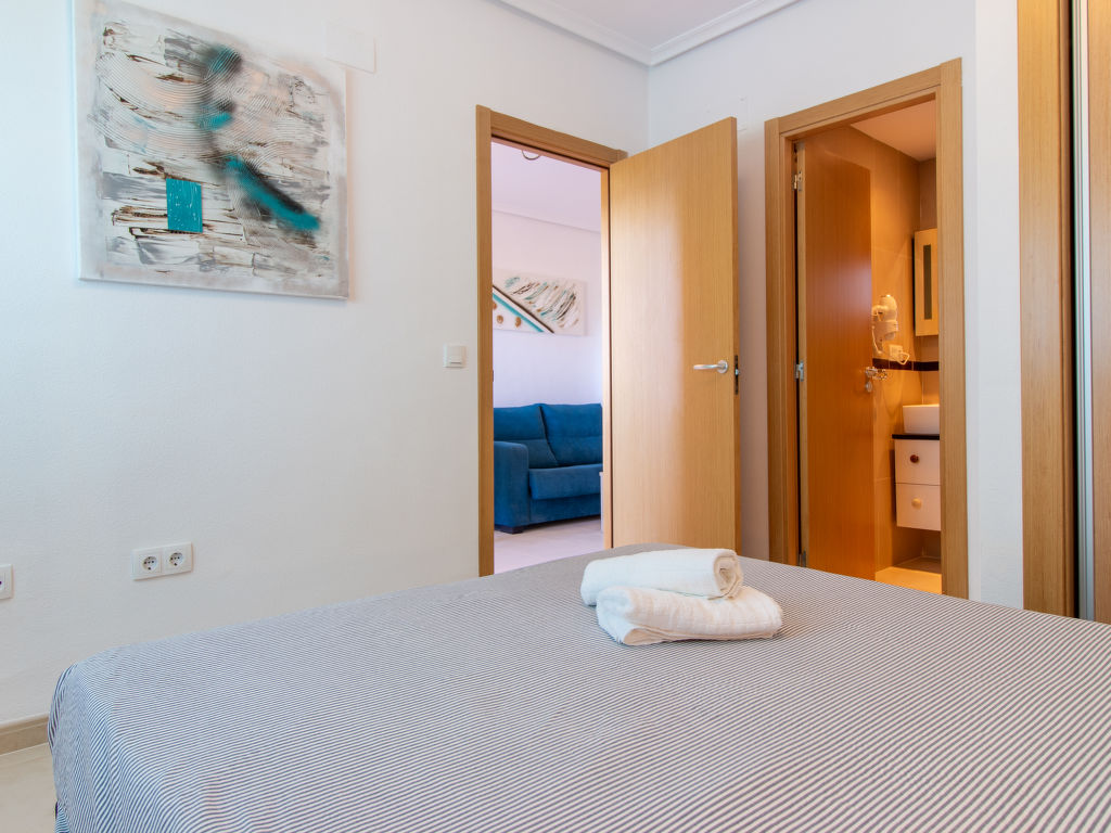"Playa Dorada", 3-Zimmer-Wohnung 60 m2 im 9. Stock. Zweckmässig und komfortabel eingerichtet: Wohn-/Esszimmer mit Esstisch, Digital-TV, Flachbildschirm und Ventilator. Ausgang zur Terrasse. 1 Zimmer mit 1 franz. Bett (150 cm, Länge 190 cm), Bad/Bidet/WC. 1 Zimmer mit 2 Betten (90 cm, Länge 190 cm). Küche (Backofen, Geschirrspüler, 4 Glaskeramikherd Platten, Toaster, Mikrowelle, Tiefkühler, elektrische Kaffeemaschine). Dusche/Bidet/WC. Heizung nicht in allen Räumen. Terrasse. Terrassenmöbel. Sicht auf das Meer und die Ortschaft. Zur Verfügung: Waschmaschine, Bügeleisen, Haartrockner. Internet (Wireless LAN, gratis). Parkplatz beim Haus. Bitte beachten: Nichtraucher-Unterkunft. VT-41286-CS
