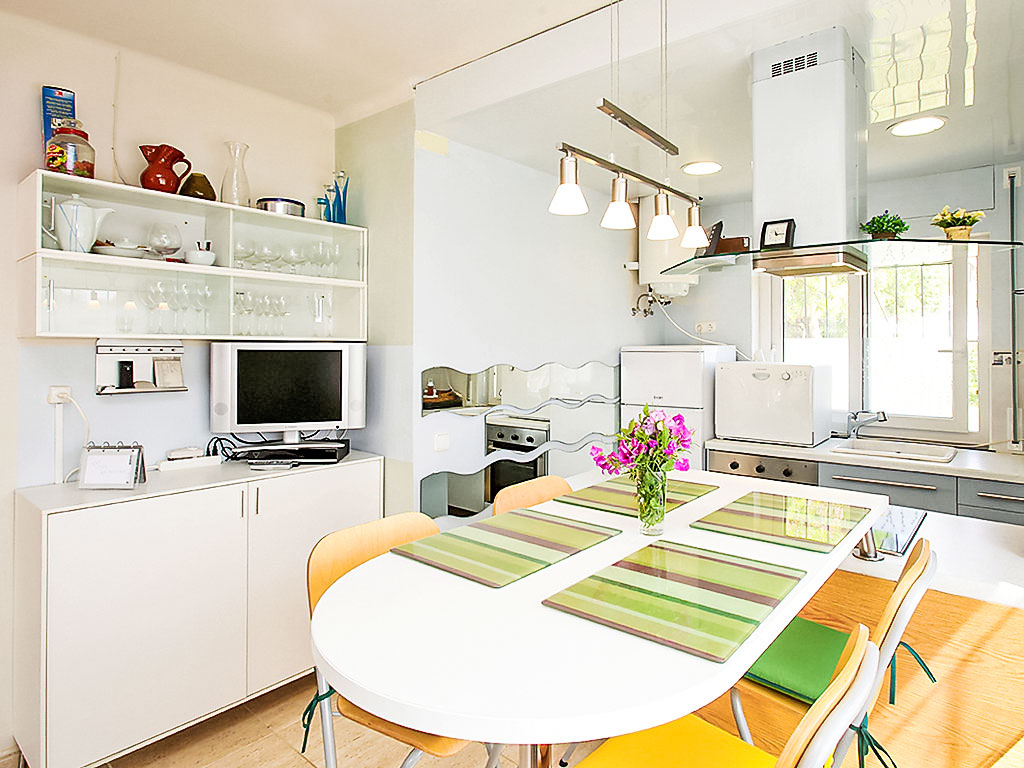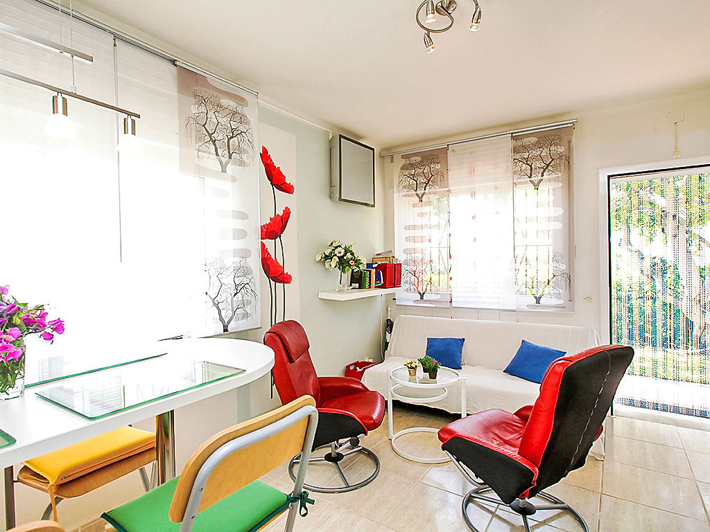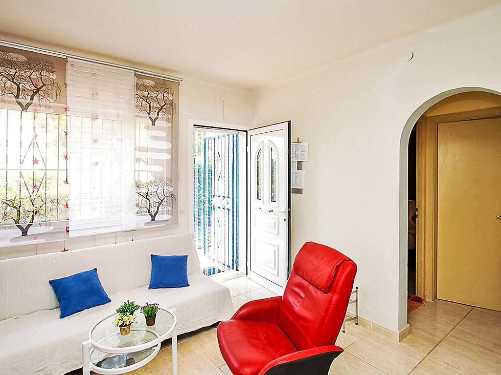 3-Zimmer-Haus 42 m2. Komfortabel eingerichtet: Wohn-/Esszimmer mit Sat-TV, Digital-TV und Klimaanlage. Ausgang zum Garten. 1 Zimmer mit 1 franz. Bett. 1 Zimmer mit 2 Betten. Offene Küche (4 Kochplatten, Backofen, Geschirrspüler, Mikrowelle, Tiefkühler). Dusche/WC. E-Heizung. Gartensitzplatz 20 m2. Terrassenmöbel, Liegestühle (2). Zur Verfügung: Internet (Wireless LAN, gratis). HUTT006772