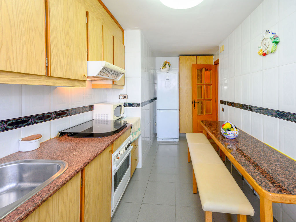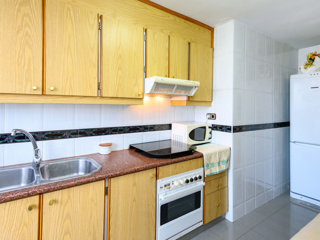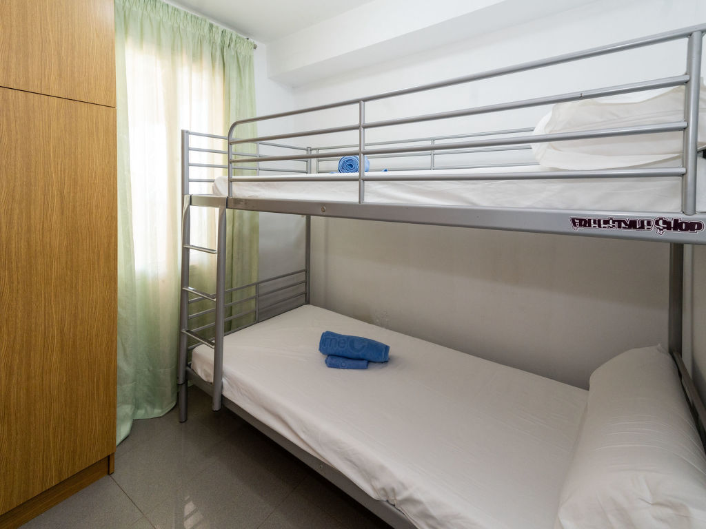 "Fantasy", 5-Zimmer-Wohnung 89 m2. Zweckmässig und komfortabel eingerichtet: Wohn-/Esszimmer mit offenem Kamin, Esstisch und TV. Ausgang zum Balkon. 2 Zimmer, jedes Zimmer mit 1 franz. Bett (135 cm, Länge 190 cm). 1 Zimmer mit 2 Betten (90 cm, Länge 190 cm). 1 Zimmer mit 1 x 2 Etagenbetten (90 cm, Länge 190 cm). Küche (Backofen, 4 Glaskeramikherd Platten, Mikrowelle). Bad/WC, Dusche/WC. Kleiner Balkon. Balkonmöbel. Sicht auf das Meer. Zur Verfügung: Waschmaschine, Bügeleisen, Kinderhochstuhl, Babybett bis 2 Jahre, Haartrockner. Internet (Wireless LAN, gratis). Parkplatz (überdacht, 1 Auto). HUTB052663