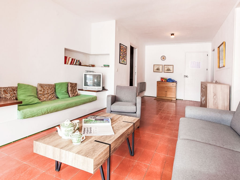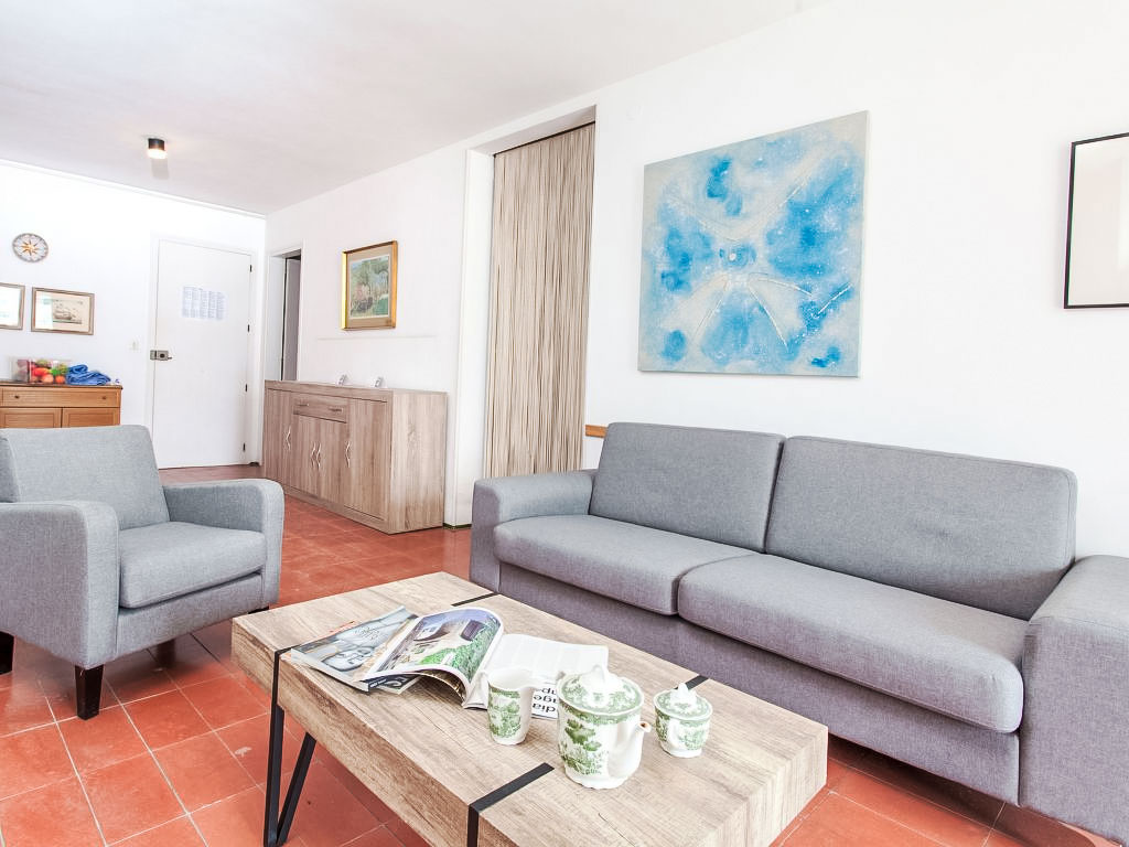 4-Zimmer-Wohnung 100 m2, im erhöhten Erdgeschoss. Zweckmässig eingerichtet: grosses Wohn-/Esszimmer mit Digital-TV. 1 Zimmer 16 m2 mit 1 franz. Bett (1 x 135 cm). Ausgang zum Balkon. 1 Zimmer 11 m2 mit 1 franz. Bett (1 x 135 cm). 1 Zimmer mit 1 Bett (90 cm), 1 Ausziehbett (2 Pers. 2 x 90 cm). Kochnische (Backofen, Geschirrspüler, 3 Glaskeramikherd Platten, Mikrowelle). Bad/WC, Dusche/Bidet/WC. Kleiner Balkon 3 m2. Herrliche Sicht auf das Meer. Zur Verfügung: Waschmaschine. Bitte beachten: geeignet für Familien. TV nur ES. HUTG057620