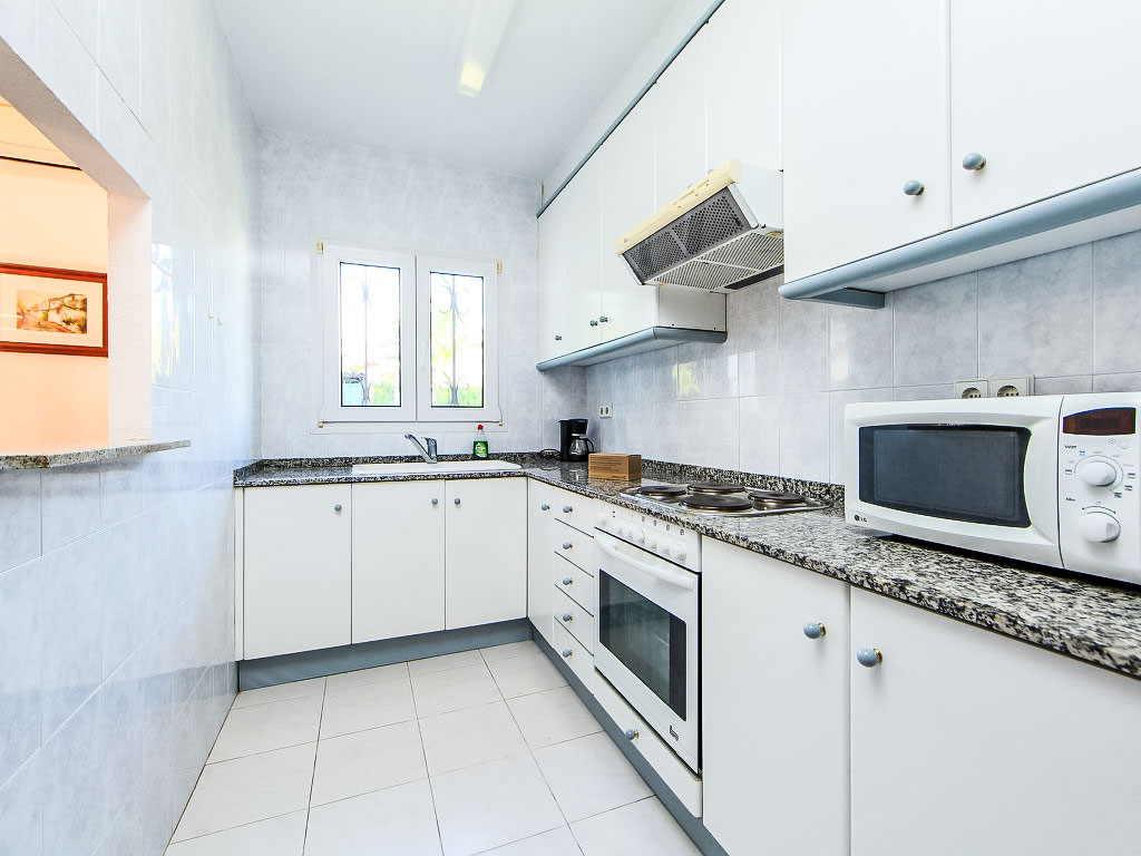 "Carlos", 4-Zimmer-Haus 110 m2, im Erdgeschoss. Zweckmässig und komfortabel eingerichtet: Wohn-/Esszimmer mit Digital-TV und Klimaanlage. Ausgang zum Gartensitzplatz. 3 Zimmer, jedes Zimmer mit 2 Betten (90 cm). Küche (4 Kochplatten, Backofen, Toaster, Wasserkocher, Mikrowelle, elektrische Kaffeemaschine). Bad/WC, Dusche/WC. Grosser Gartensitzplatz. Terrassenmöbel, Gartengrill, Liegestühle. Sicht auf den Garten. Zur Verfügung: Waschmaschine. Parkplatz. Bitte beachten: geeignet für Familien. Nichtraucher-Haus. HUTT-003412