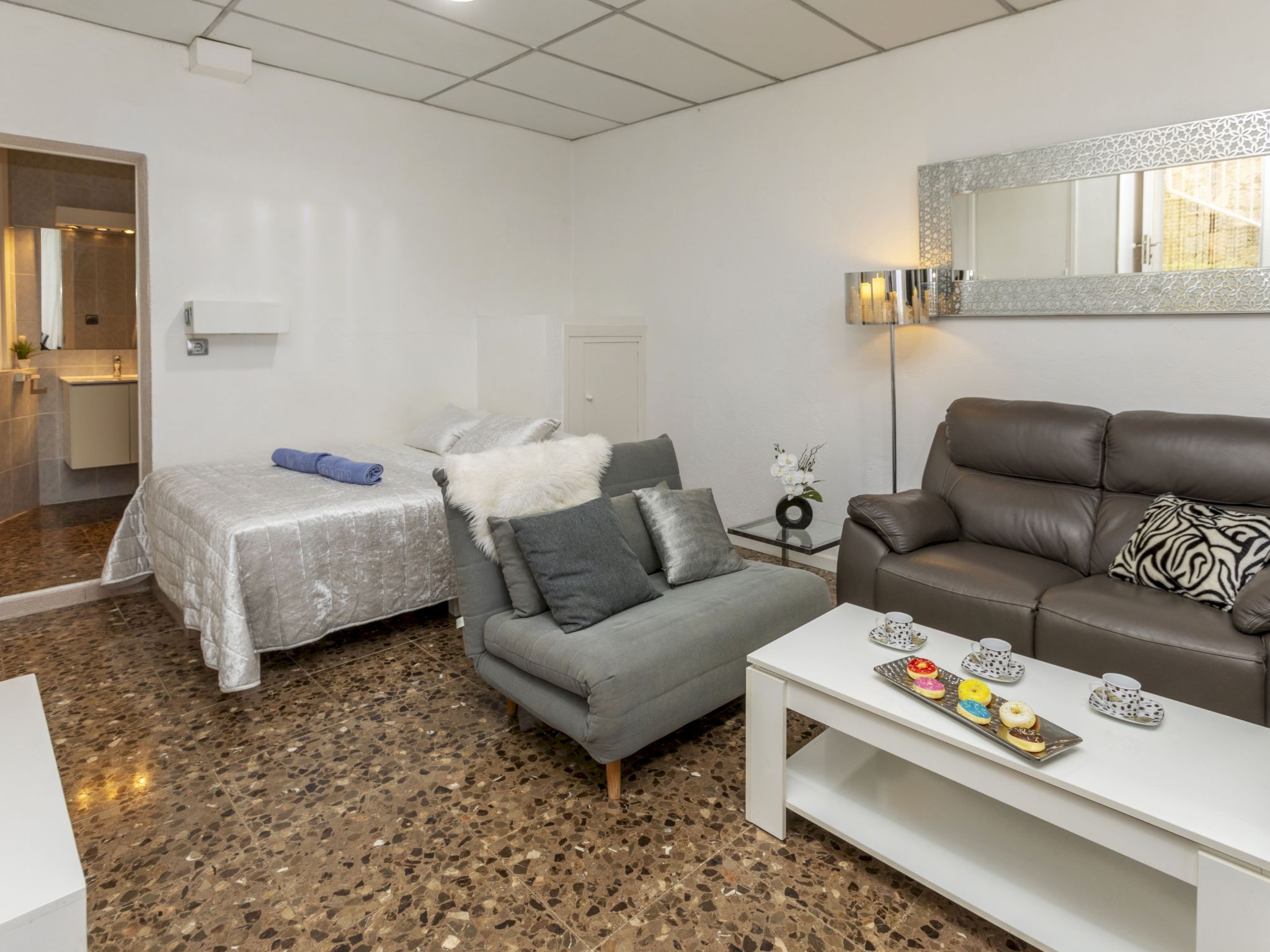 "Rosa Maria", 1-Zimmer-Wohnung 40 m2, im Erdgeschoss. Zweckmässig eingerichtet: Wohn-/Esszimmer mit 1 franz. Bett (1 x 135 cm), 1 Klappbett, Digital-TV und DVD. Kochnische (4 Glaskeramikherd Platten, Mikrowelle). Dusche/WC. Garten. Terrassenmöbel, Liegestühle (2). Zur Verfügung: Waschmaschine. Internet (Wireless LAN, gratis). Bitte beachten: TV nur ES. HUTG008465