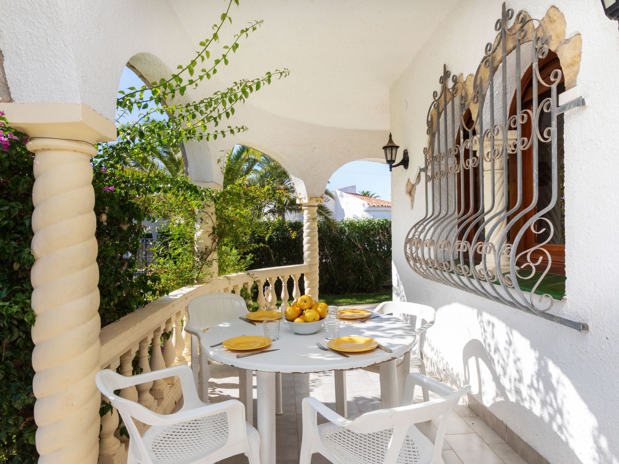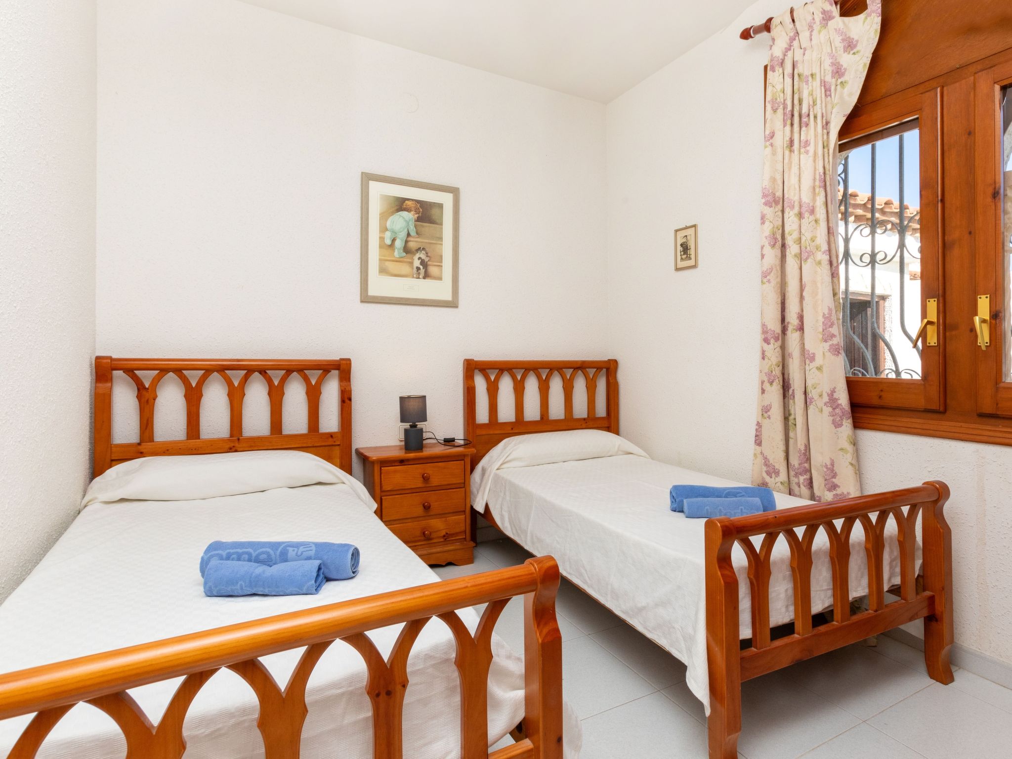 "Masboquera", 4-Zimmer-Villa 95 m2, im Erdgeschoss. Zweckmässig und komfortabel eingerichtet: Wohn-/Esszimmer mit offenem Kamin, Esstisch, Sat-TV und Digital-TV. Durchgangszimmer mit Klimaanlage. 3 Zimmer, jedes Zimmer mit 2 Betten. Küche (4 Kochplatten, Backofen, Geschirrspüler, Toaster, Wasserkocher, elektrische Kaffeemaschine). Bad/WC, Bad/Bidet/WC. Terrasse, Garten, Rasen. Terrassenmöbel, Gartengrill (mobil). Zur Verfügung: Waschmaschine, Bügeleisen, Haartrockner. Internet (Wireless LAN, gratis). Garage beim Haus. Bitte beachten: geeignet für Familien. TV nur ES, DE, FR. HUTT010082