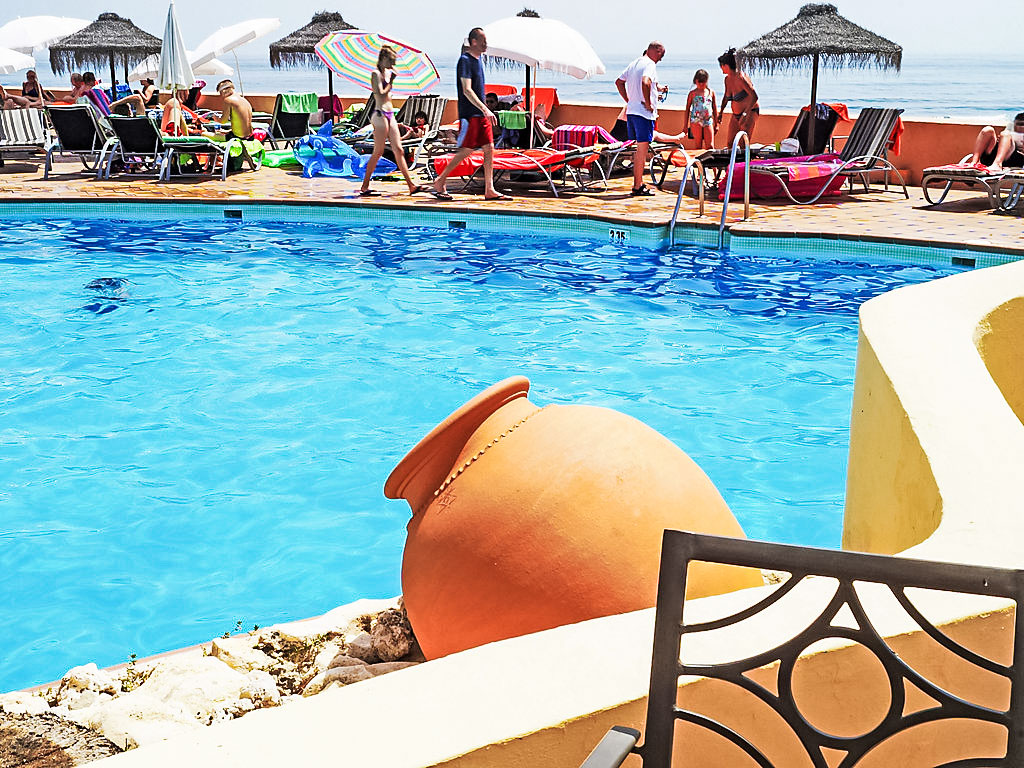Calahonda 15 km von Marbella: Kinderfreundliche Ferienanlage "Dona Lola". Zentrale, ruhige Lage, 200 m vom Meer, 200 m vom Strand. Zur Mitbenutzung: Schwimmbad (saisonale Verfügbarkeit: 01.Jan.-31.Dez.). Kinderbecken, Aussendusche, Tennis (extra), Tischtennis, Kinderspielplatz. In der Anlage: Empfang, Restaurant, Bar, Bistro, Einkaufsmöglichkeit, Kiosk, Wäscherei. Treppenweg (15 Stufen) bis zum Haus. Einkaufsgeschäft 50 m, Supermarkt 400 m, Einkaufszentrum 200 m, Restaurant, Bar, Café 20 m. Bitte beachten: Animation in der Saison. Objekt geeignet für 6 Erwachsene + 2 Kinder. Die Anlage wird nachts überwacht. Extra: 2 geheizte Schwimmbecken (draussen und drinnen), 1 Freibad, Sprudelbad, Dampfsauna, Sauna, Fitnessraum und Kurse in Aquagymnastik.