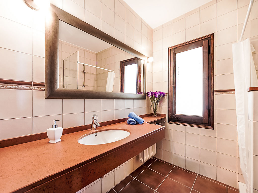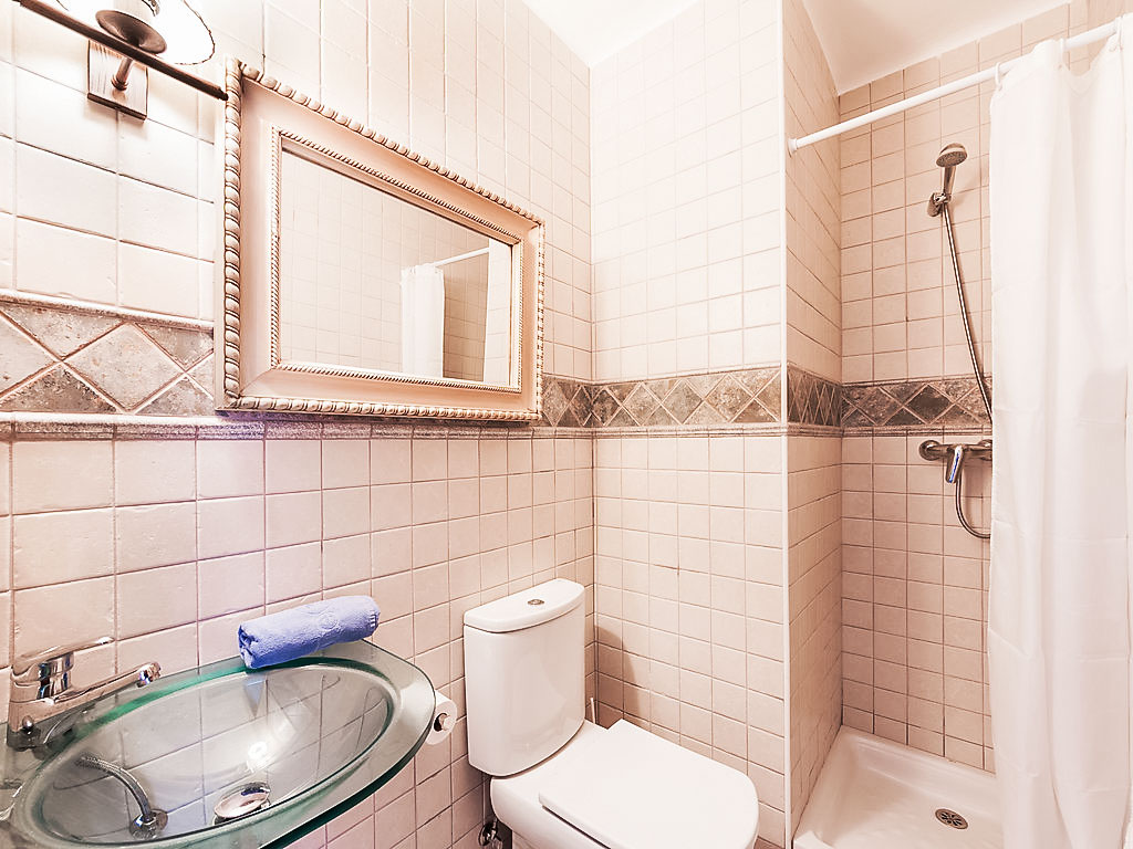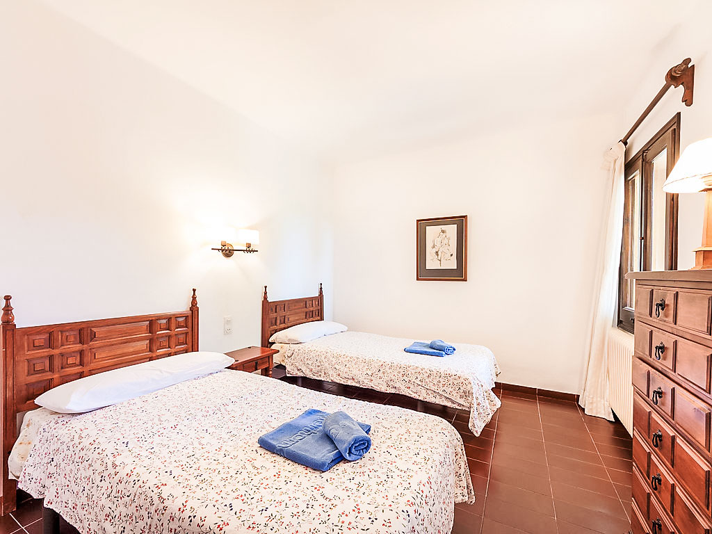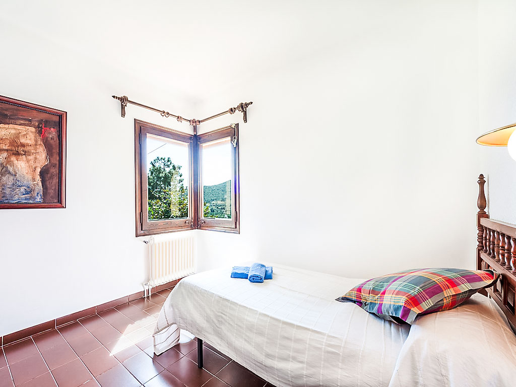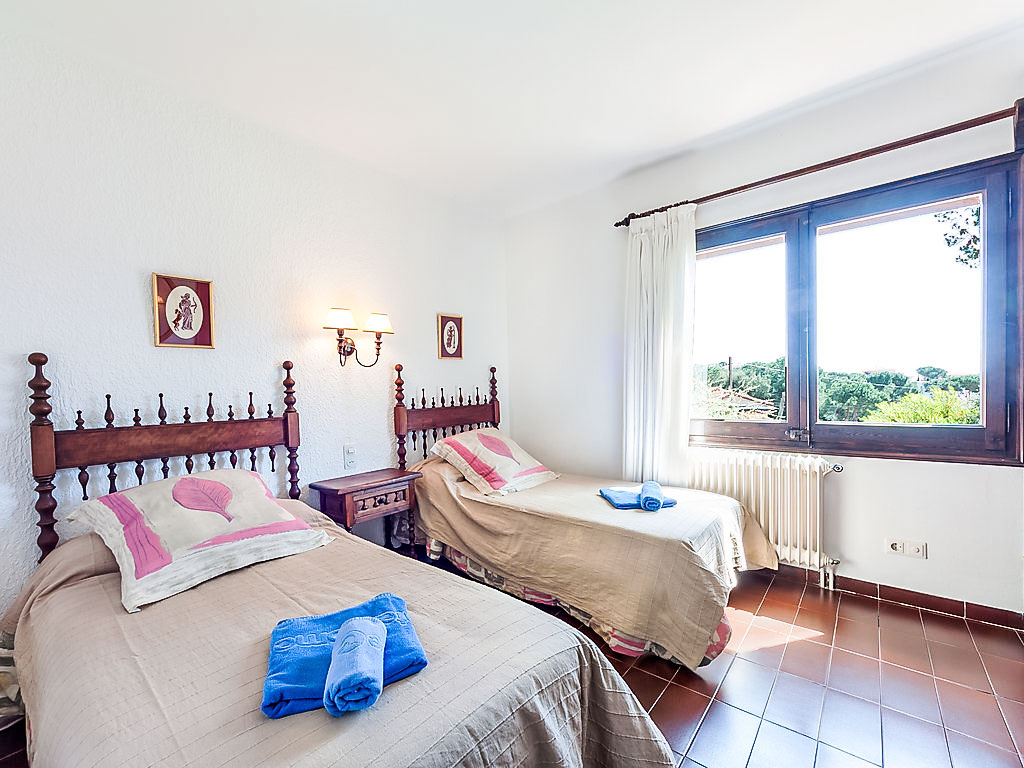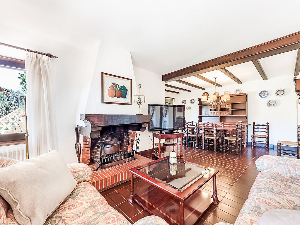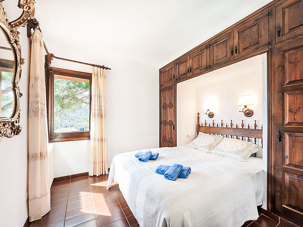 Urb Mas Pere 3 km von Calonge: Gemütliches Haus "Monica", auf 2 Stockwerken. Sonnige Lage, verkehrsberuhigte Zone, 5 km vom Meer, in einer Sackgasse. Zur Alleinbenutzung: Terrassengarten (eingezäunt) mit Rasen, Schwimmbad eckig (10 x 5 m, 170 - 250 cm tief, 01.01.-31.12.). Aussendusche, Pergola, Gartenmöbel, Grill. 600 m lange holprige Zufahrt bis zum Haus. Treppenweg (10 Stufen) bis zum Haus. Parkplatz (für 3 Autos) auf dem Grundstück. Supermarkt 2 km, Restaurant 2 km, Bar 2 km, Sandstrand "Sant Antoni de Calonge" 5 km. Sporthafen 8 km, Golfplatz 8 km, Reitstall 12 km. Nahe gelegene Sehenswürdigkeiten: Waterpark Aquadiver 4 km. Bitte beachten: Fahrzeug empfohlen. Der Besitzer akzeptiert keine Jugendgruppen.