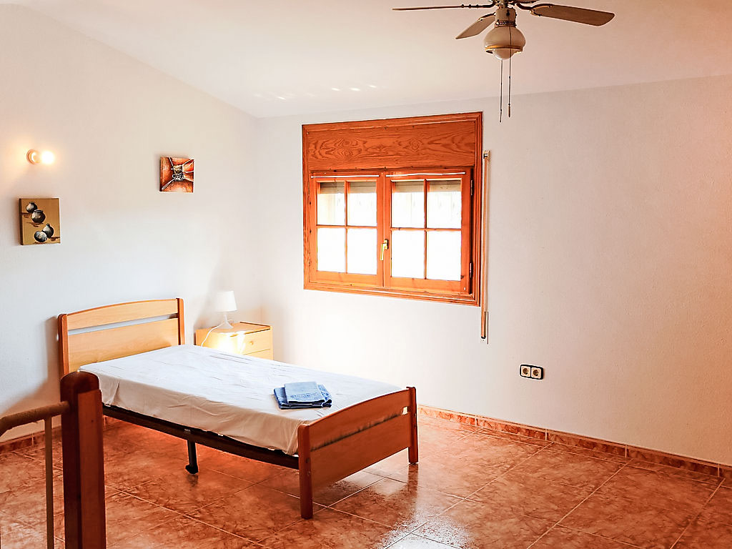 "Villa Palma", 4-Zimmer-Villa 105 m2 auf 2 Stockwerken. Komfortabel und gemütlich eingerichtet: Wohnzimmer mit 1 Diwanbett (120 cm), Sat-TV und Digital-TV. Ausgang zur Terrasse. Esszimmer mit Esstisch. 1 Zimmer mit 1 Bett (90 cm), 1 franz. Bett (135 cm). Offene Küche (4 Kochplatten, Backofen, Geschirrspüler, Toaster, Wasserkocher, Mikrowelle, elektrische Kaffeemaschine) mit Bar. Bad/WC mit Eckbadewanne. Obergeschoss: (Wendeltreppe) 1 abgeschrägtes Zimmer mit 4 Betten (90 cm). Terrasse. Terrassenmöbel, Gartengrill. Zur Verfügung: Waschmaschine, Bügeleisen, Kinderhochstuhl, Babybett, Haartrockner. Internet (Wireless LAN, gratis). Parkplatz beim Haus. Bitte beachten: 1 Haustier/Hund erlaubt. TV nur ES, DE, FR. HUTTE001227