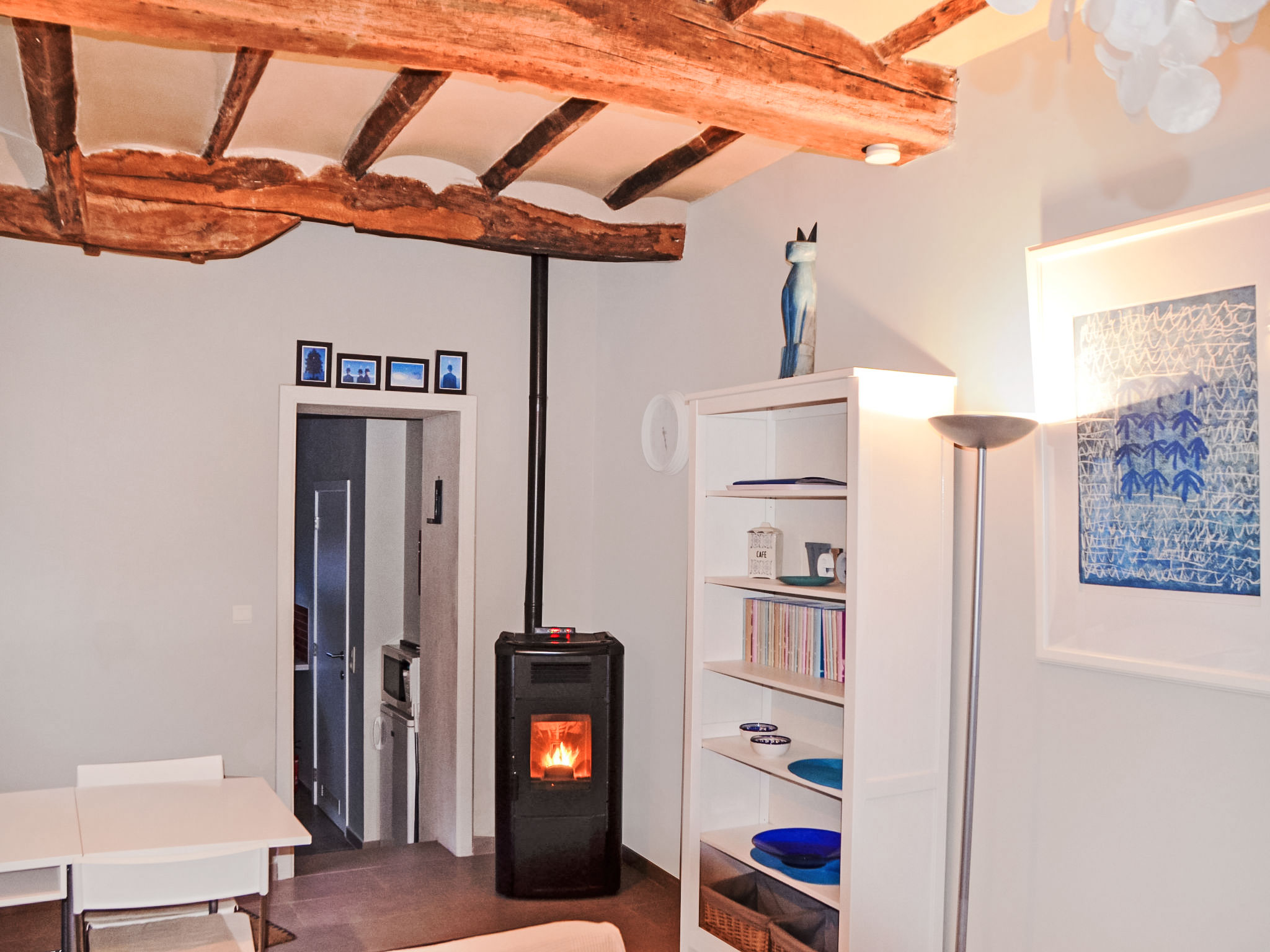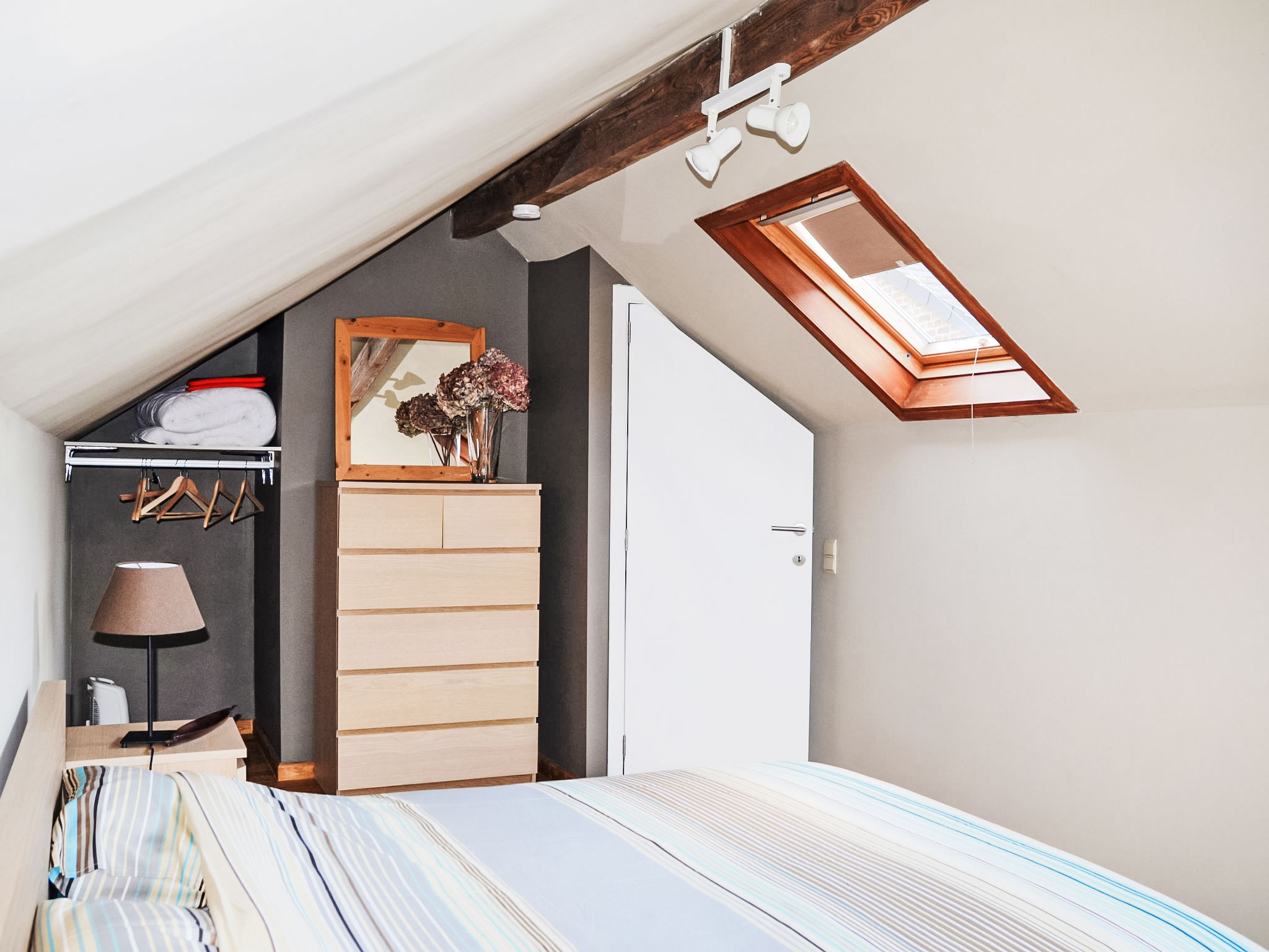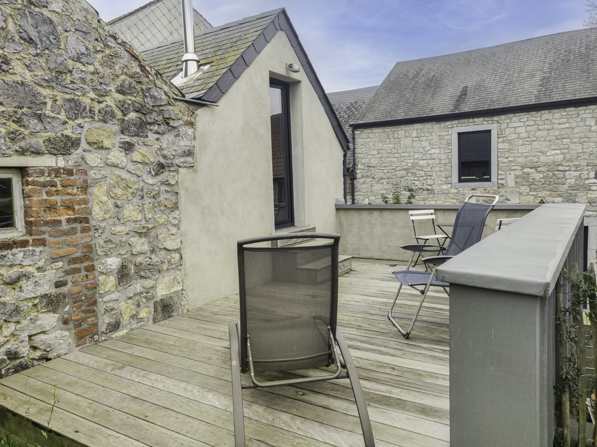 "Le Ti' Bauduin", 2-Zimmer-Maisonette-Wohnung 40 m2. Abgeschrägt, renoviert im Jahre 2016, zweckmässig eingerichtet: Wohn-/Esszimmer mit offenem Kamin, Essecke, TV und Stereoanlage. Küche (4 Kochplatten, Toaster, Wasserkocher, elektrische Kaffeemaschine, Kombinationsmikrowelle). Dusche, sep. WC. Holzheizung. Obergeschoss: 1 abgeschrägtes, offenes grosses Zimmer mit 1 franz. Bett (1 x 160 cm, Länge 200 cm). Ausgang zur Terrasse. Terrasse. Terrassenmöbel, Gartengrill. Zur Verfügung: Haartrockner. Internet (Wireless LAN, extra).