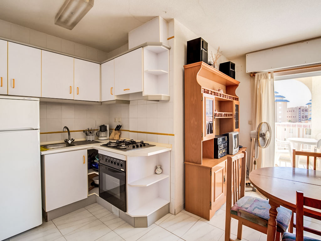 Appartementhaus "Marina Sol". 10 km vom Zentrum von La Manga, 20 m vom Meer. Im Hause: Fahrstuhl. Parkplatz. Lebensmittelgeschäft 100 m, Restaurant 20 m, Bushaltestelle 50 m, Sandstrand 20 m. Sporthafen 500 m.