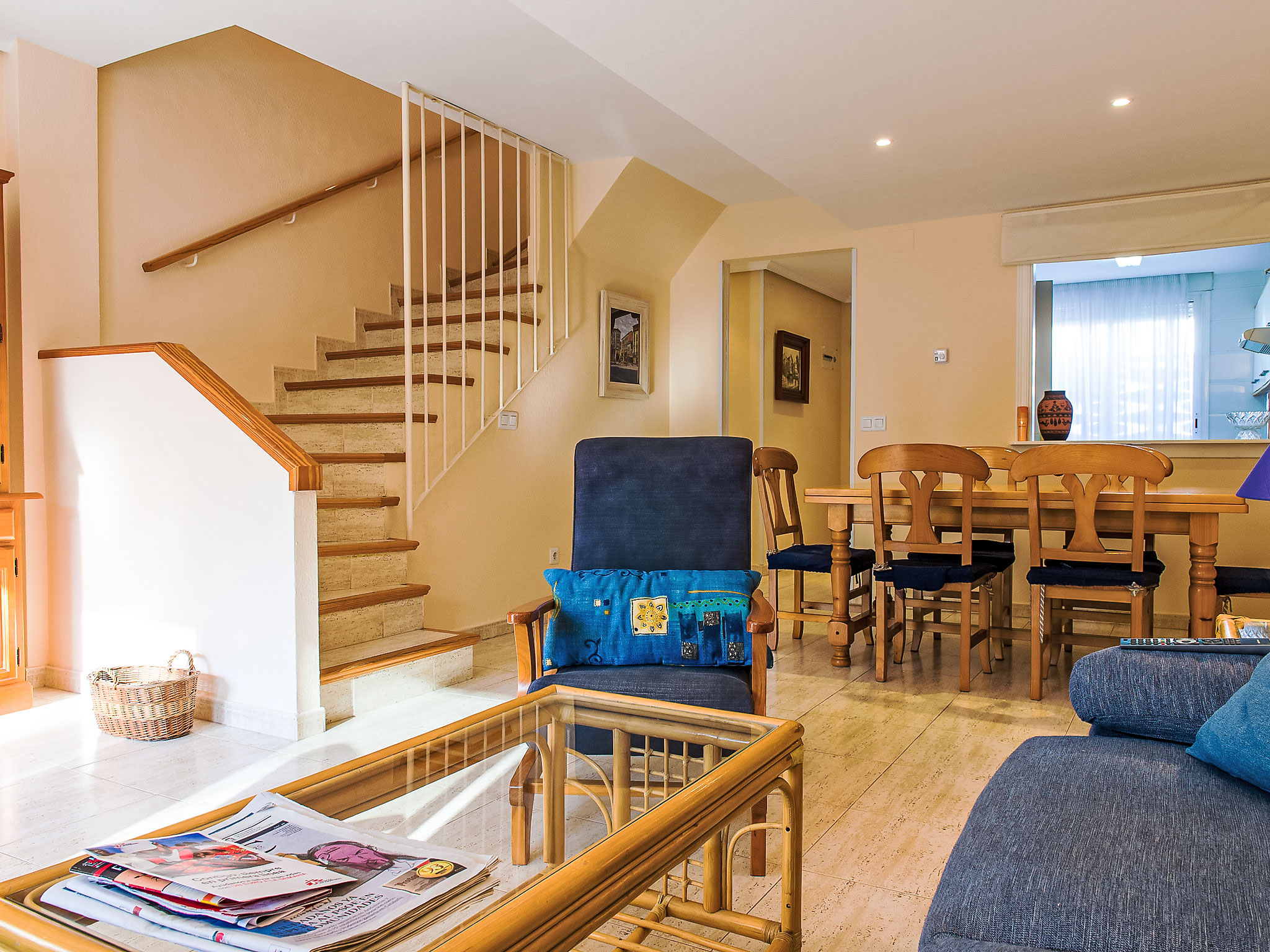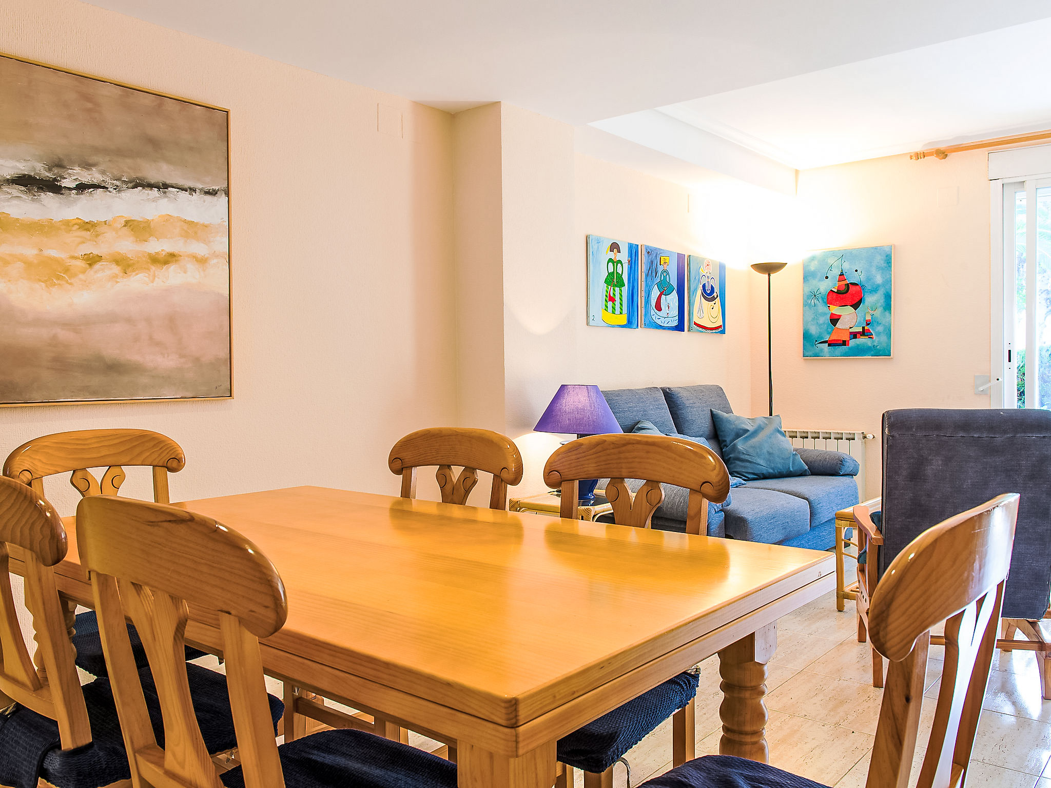 4-Zimmer-Reihenhaus 104 m2 auf 2 Stockwerken, im Erdgeschoss. Zweckmässig eingerichtet: Wohn-/Esszimmer mit Digital-TV und DVD. Ausgang zur Terrasse, zum Gartensitzplatz. Küche (Backofen, Geschirrspüler, 4 Glaskeramikherd Platten, Mikrowelle, Tiefkühler). Sep. WC. Obergeschoss: 1 Zimmer mit 1 franz. Bett (150 cm, Länge 190 cm), Bad/Bidet/WC. Ausgang zum Balkon. 1 Doppelzimmer. Ausgang zum Balkon. 1 Doppelzimmer mit 2 Betten (80 cm, Länge 190 cm). Bad/Bidet/WC. Grosse Terrasse teilweise überdacht. Terrassenmöbel, Gartengrill (mobil). Zur Verfügung: Waschmaschine, Kinderhochstuhl, Babybett. Garage beim Haus. AT-419846-A