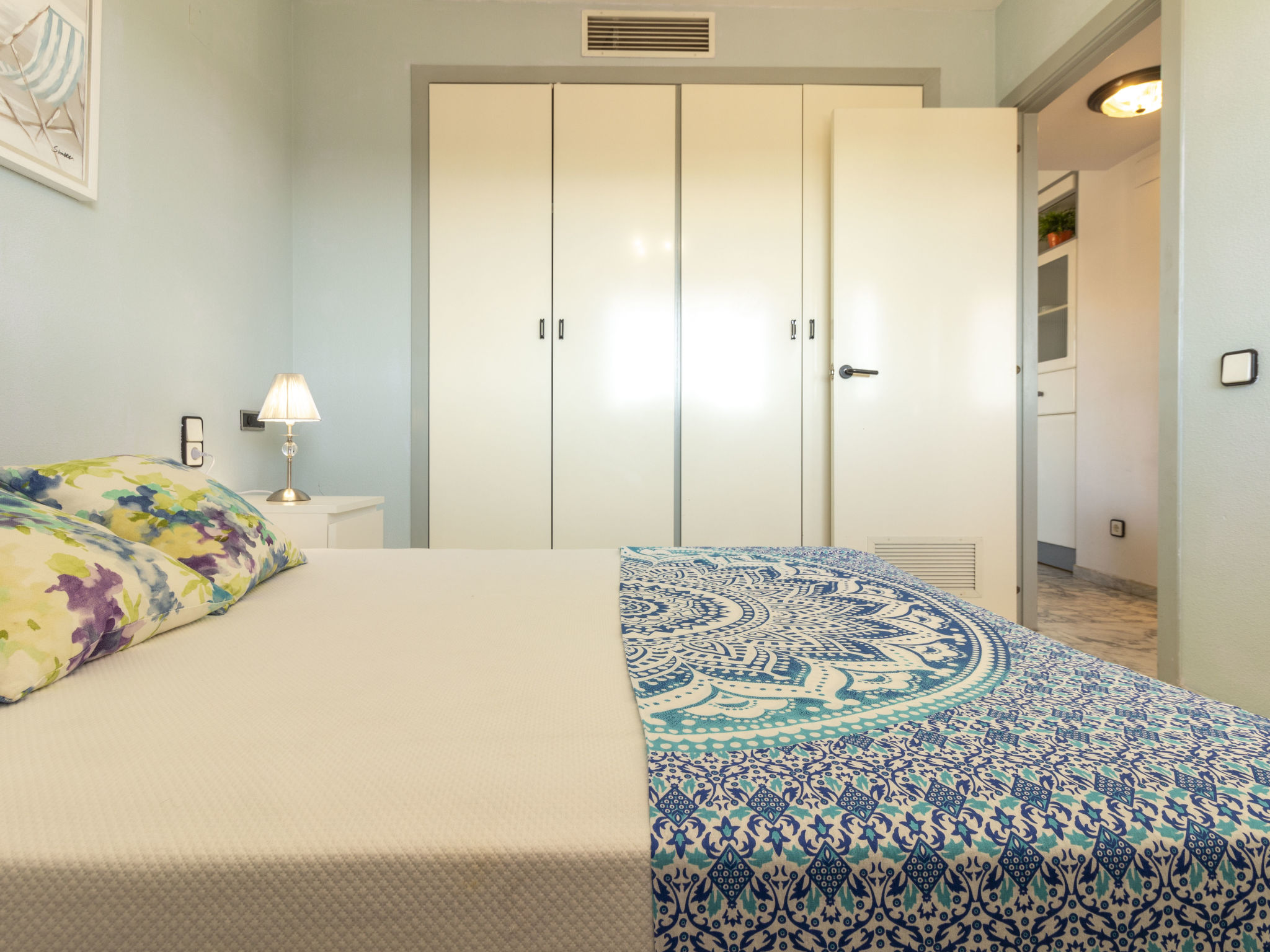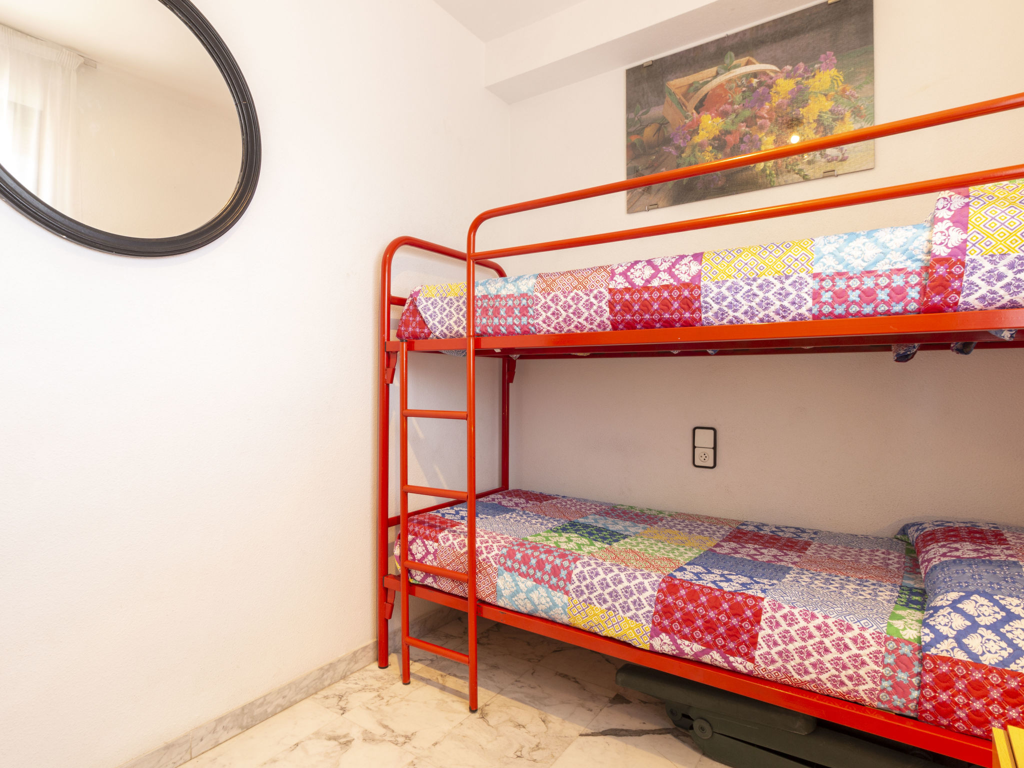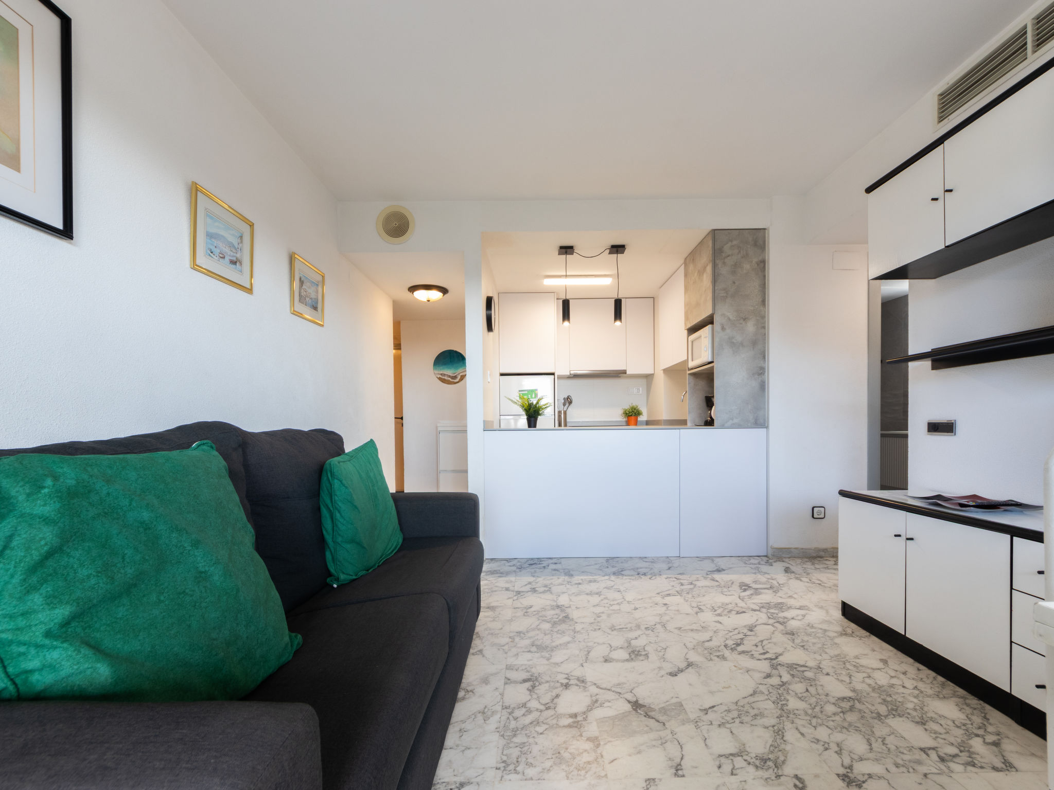 3-Zimmer-Wohnung 50 m2 im 5. Stock. Zweckmässig und komfortabel eingerichtet: Wohn-/Esszimmer mit 1 Doppeldiwanbett, Digital-TV, Klimaanlage und Warmluftheizung. Ausgang zur Loggia. 1 Zimmer mit 1 franz. Bett (135 cm, Länge 190 cm). 1 Zimmer mit 1 x 2 Etagenbetten (80 cm, Länge 180 cm). Offene Küche (4 Kochplatten, Backofen, Mikrowelle, Tiefkühler) mit Durchreiche. Bad/Bidet/WC. Grosser Balkon 25 m2. Balkonmöbel. Panoramasicht auf die Berge und die Ortschaft. Zur Verfügung: Waschmaschine, Bügeleisen. HUTT005501