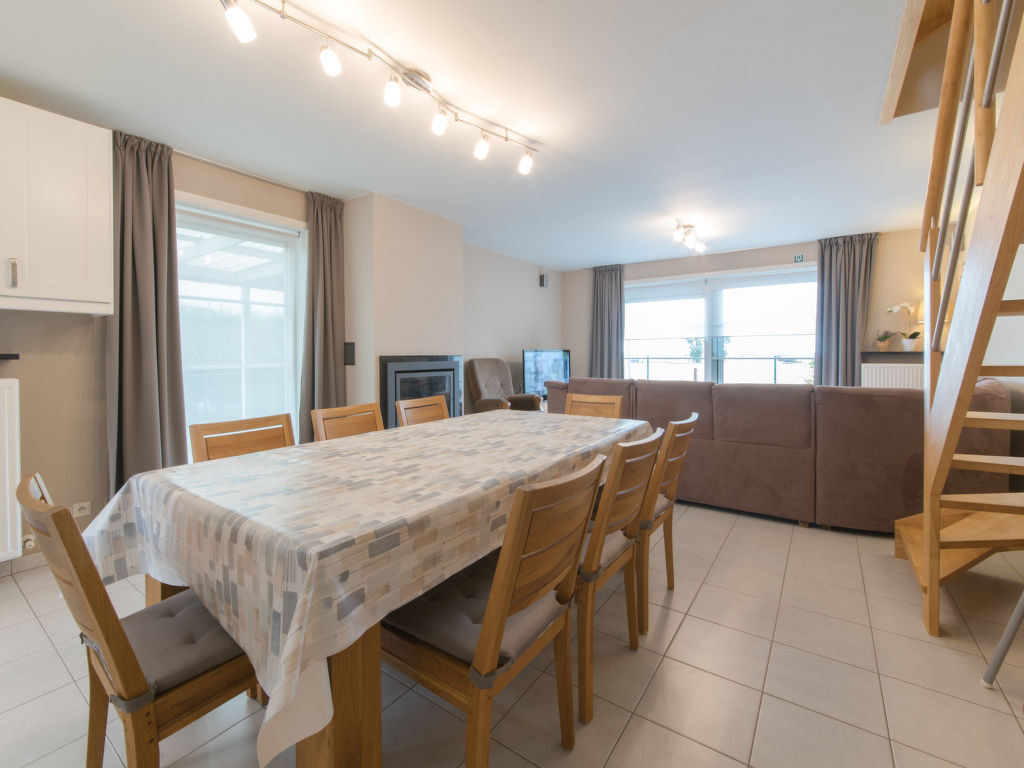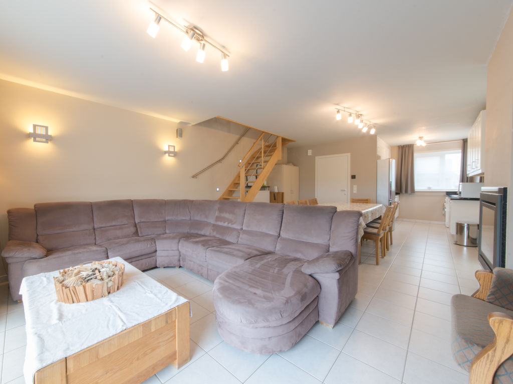 "Boonenhove nr.57", 5-Zimmer-Villa 125 m2 auf 3 Stockwerken. Objekt geeignet für 6 Erwachsene + 2 Kinder. Komfortabel eingerichtet: Wohn-/Esszimmer mit Esstisch, Digital-TV, Internationale TV-Sender, CD, DVD und E-Heizung. Eingang mit sep. WC. Küche (Backofen, Geschirrspüler, 4 Induktionskochplatten, Toaster, Wasserkocher, elektrische Kaffeemaschine, Kombinationsmikrowelle). Obergeschoss: 2 Doppelzimmer, jedes Zimmer mit 1 Doppelbett (1 x 160 cm, Länge 200 cm). 1 Zimmer mit 1 x 2 Etagenbetten (90 cm, Länge 200 cm). Dusche/WC. 2. Obergeschoss: 1 Doppelzimmer mit 1 Doppelbett (140 cm, Länge 200 cm). Terrasse 15 m2, Südlage. Terrassenmöbel. Sehr schöne Sicht auf die Landschaft. Zur Verfügung: Waschmaschine, Babybett, Haartrockner. Internet (Wireless LAN, gratis). Parkplatz (überdacht, 2 Autos). Bitte beachten: Nichtraucher-Haus. Rauchmelder, Feuerlöscher.