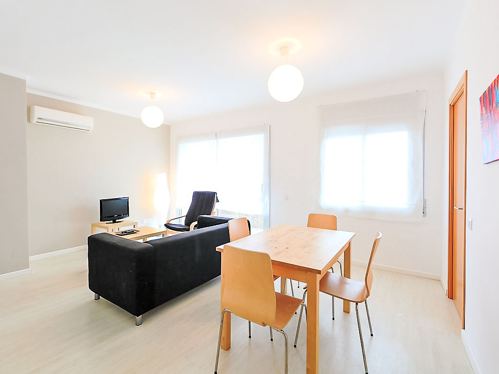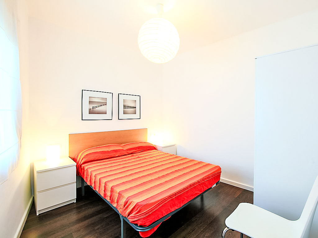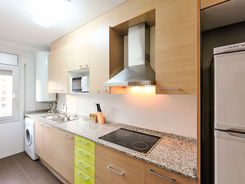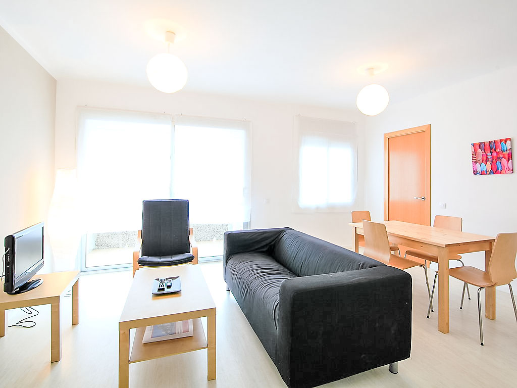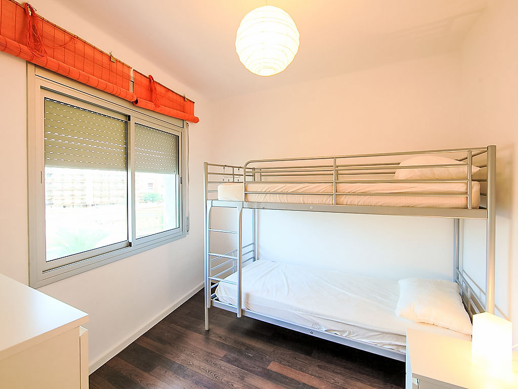 3-Zimmer-Wohnung 55 m2 im 2. Stock. Modern und geschmackvoll eingerichtet: Wohn-/Esszimmer mit Digital-TV, Klimaanlage und Warmluftheizung. Ausgang zum Balkon. 1 Zimmer mit 1 Doppelbett. 1 Zimmer mit 1 x 2 Etagenbetten. Küche (4 Kochplatten, X Glaskeramikherd Platten, Mikrowelle, elektrische Kaffeemaschine). Dusche/WC. Balkon. Balkonmöbel. Eingeschränkte Sicht auf das Meer. Zur Verfügung: Waschmaschine, Bügeleisen, Haartrockner. Internet (Wireless LAN, gratis). Smart-TV. HUTT005507
