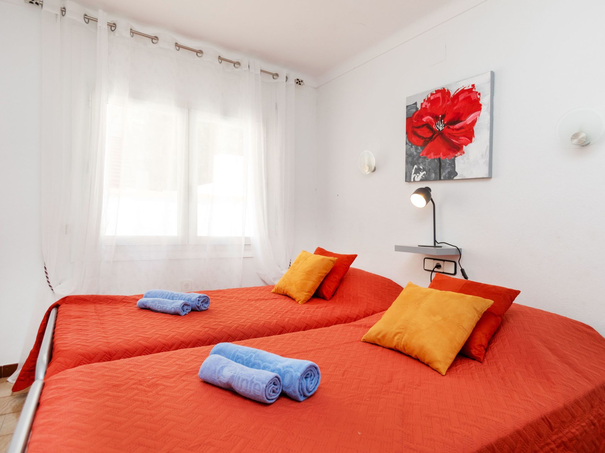 Sector Empuries: Einfaches Reihenhaus "Isis", auf 2 Stockwerken. Ausserhalb des Ortes, 1.9 km vom Zentrum von L'Escala, sonnige Lage, exzellente Lage: Absolut zentral und dennoch ruhig, 200 m vom Meer, 200 m vom Strand. Supermarkt 350 m, Restaurant 800 m, Internet-Café 1.9 km, Fahrradverleih 1.3 km, Sandstrand "Platja del rec" 200 m, Tauchzentrum 3.5 km, Hallenbad 1 km. Sporthafen 3.9 km, Surfschule 3.5 km, Segelschule 3.5 km, Tennis 1 km, Reitstall 1.9 km, Sportzentrum 1 km, Kinderspielplatz 2.2 km. Nahe gelegene Sehenswürdigkeiten: Ruinas Greco-Romana de Empuries 650 m, Skydive - Tunel de Viento Empuriabrava 23 km, Aqua Brava Park Roses 27 km, Casino-Festival de Perelada 30 km, Museo Dali Figueres 26 km, Pitch and Putt Gualta 15 km.