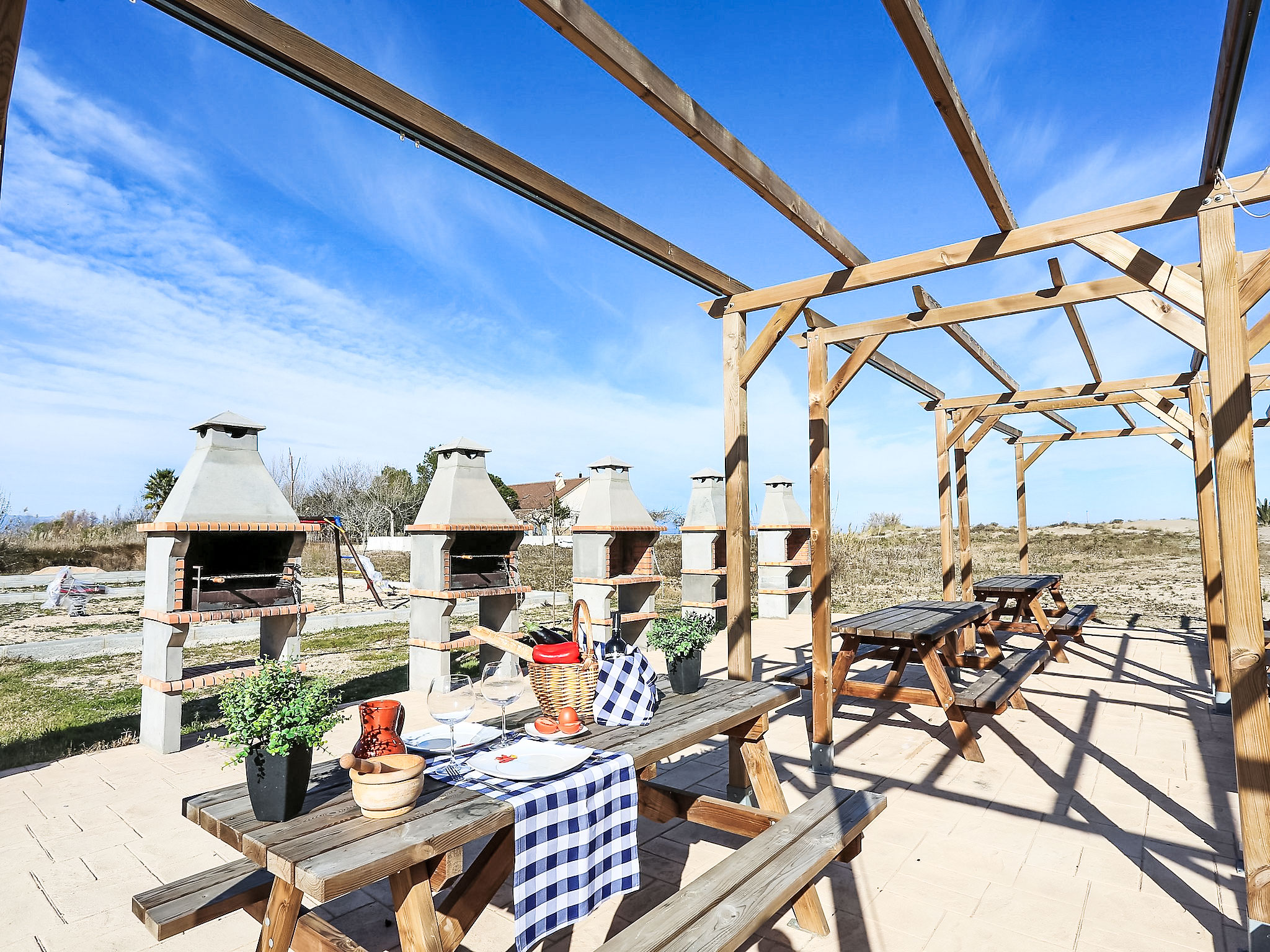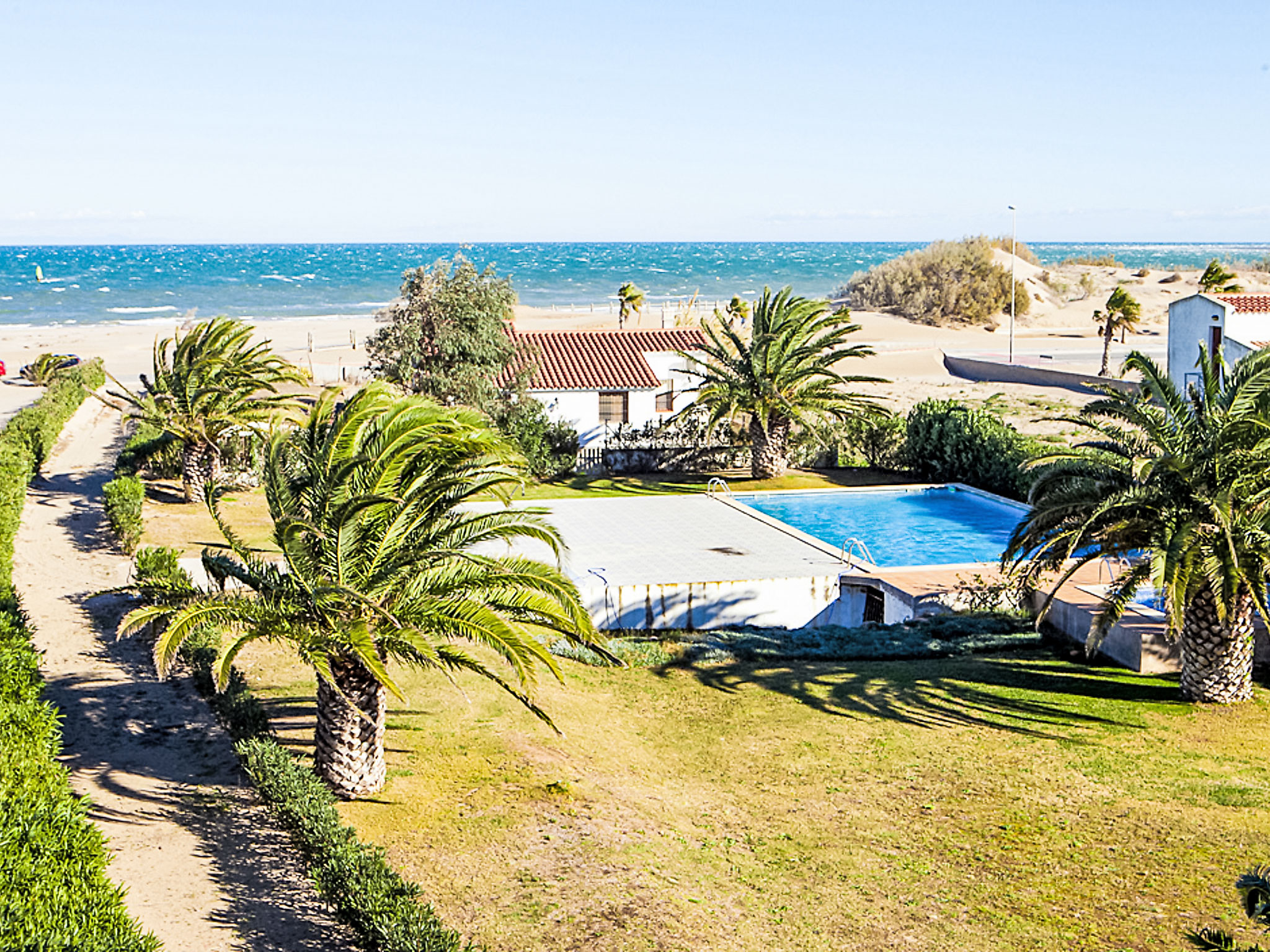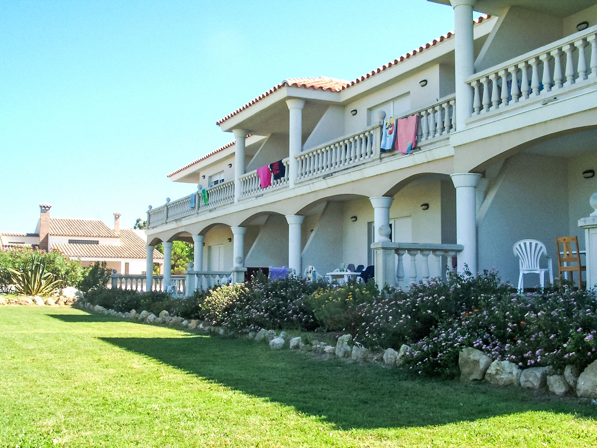 Riumar 10 km von Deltebre: Kinderfreundliches, schönes Appartementhaus "Royal Delta", auf 2 Stockwerken, umgeben von Feldern. 20 Wohnungen in der Residenz. Ruhige, sonnige Lage, 50 m vom Meer, 50 m vom Strand, direkter Zugang zum Strand. Zur Mitbenutzung: schöner Garten mit Rasen, Schwimmbad eckig (20 x 10 m, saisonale Verfügbarkeit: 01.Jan.-31.Dez.) mit Innentreppe. Kinderbecken, Aussendusche, Tennis, Grill. Im Hause: Wireless LAN. Parkplatz auf dem Grundstück. Einkaufsgeschäft, Restaurant 100 m. Bitte beachten: Babyausstattung auf Anfrage. Jugendgruppen nur auf Anfrage. Das Foto ist nur ein Hausbeispiel.