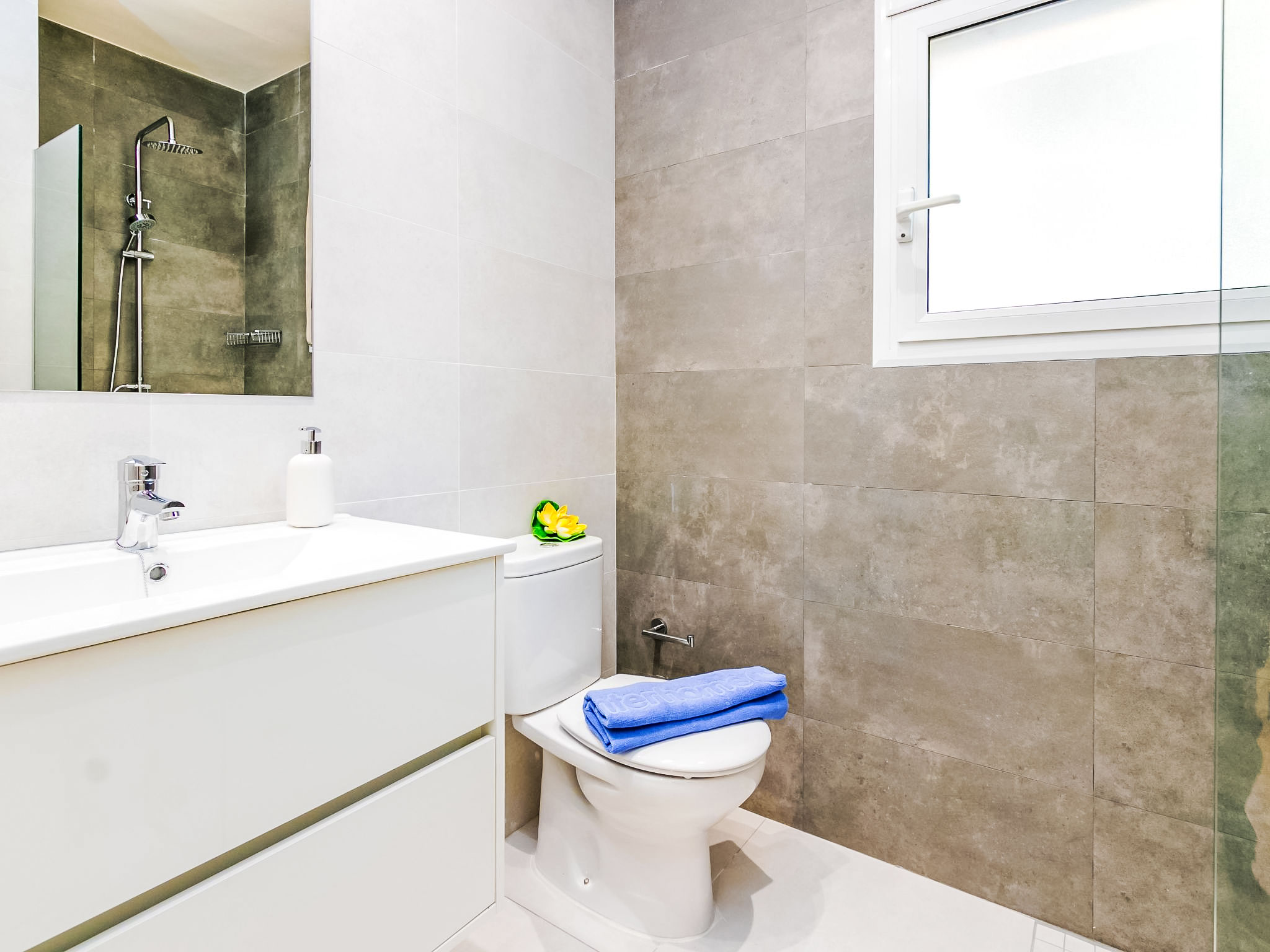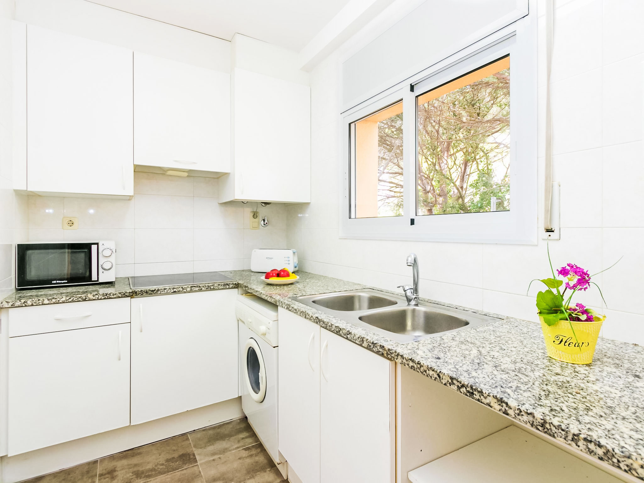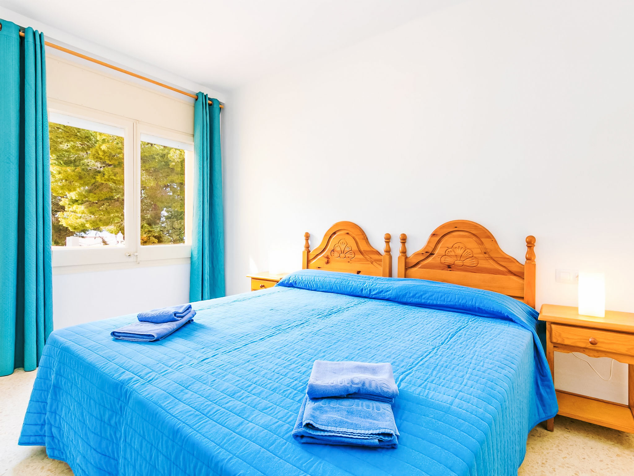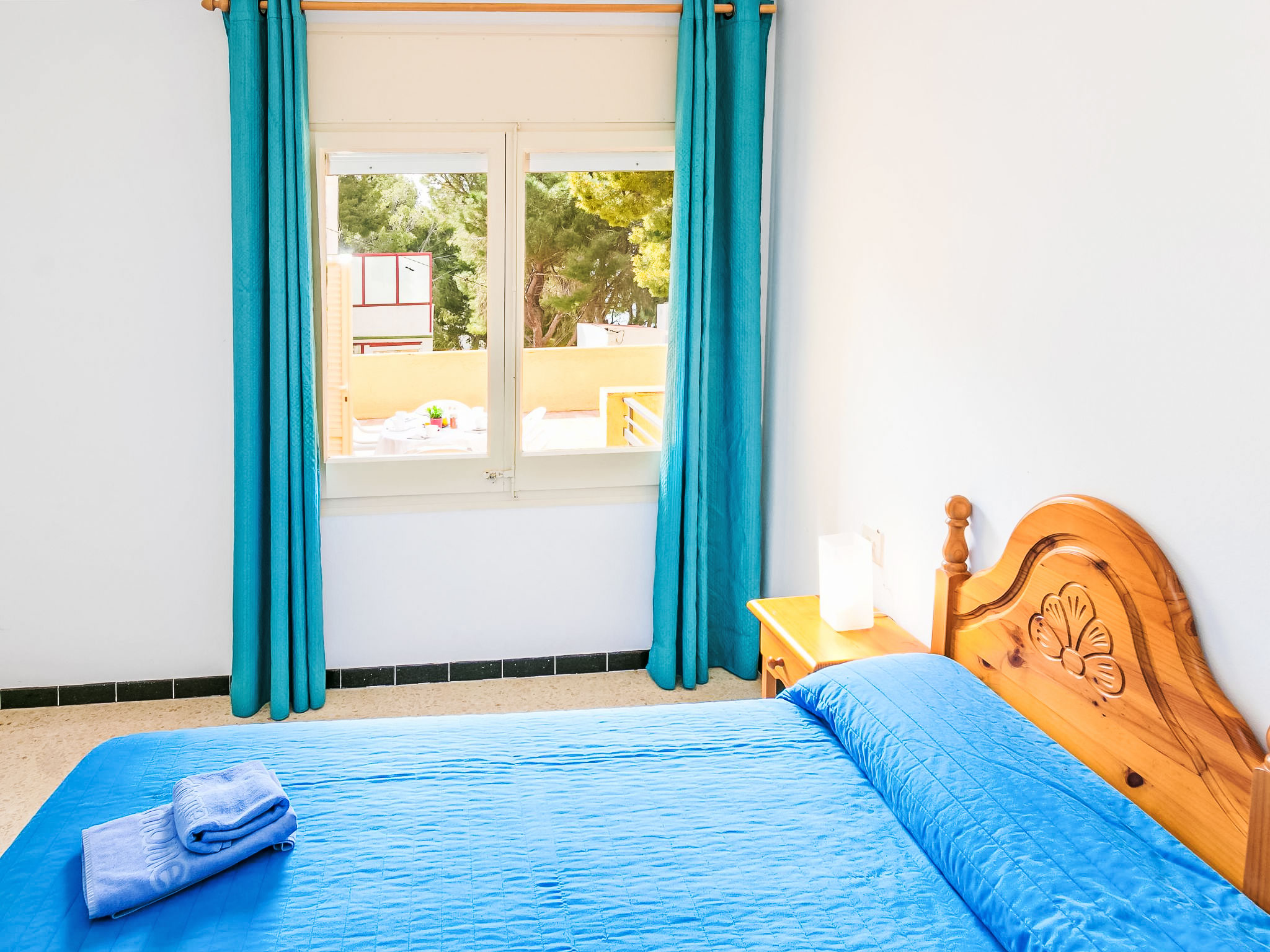 4-Zimmer-Wohnung 83 m2. Hell, zweckmässig und komfortabel eingerichtet: Wohn-/Esszimmer mit Sat-TV und Digital-TV (Flachbildschirm). Ausgang zur Terrasse. 2 Zimmer, jedes Zimmer mit 2 Betten (90 cm). 1 Zimmer mit 1 franz. Bett (150 cm). Küche (4 Glaskeramikherd Platten, Toaster, Mikrowelle, Tiefkühler, elektrische Kaffeemaschine). Dusche/WC. Zur Verfügung: Waschmaschine. Internet (Wireless LAN, gratis). Garage Nr. 5. Bitte beachten: Parkplatz nur für kleine Wagen. TV nur ES, DE. Maße der Garage von Wand zu Wand: Länge 4,80 x Breite 2,40. HUTG007516