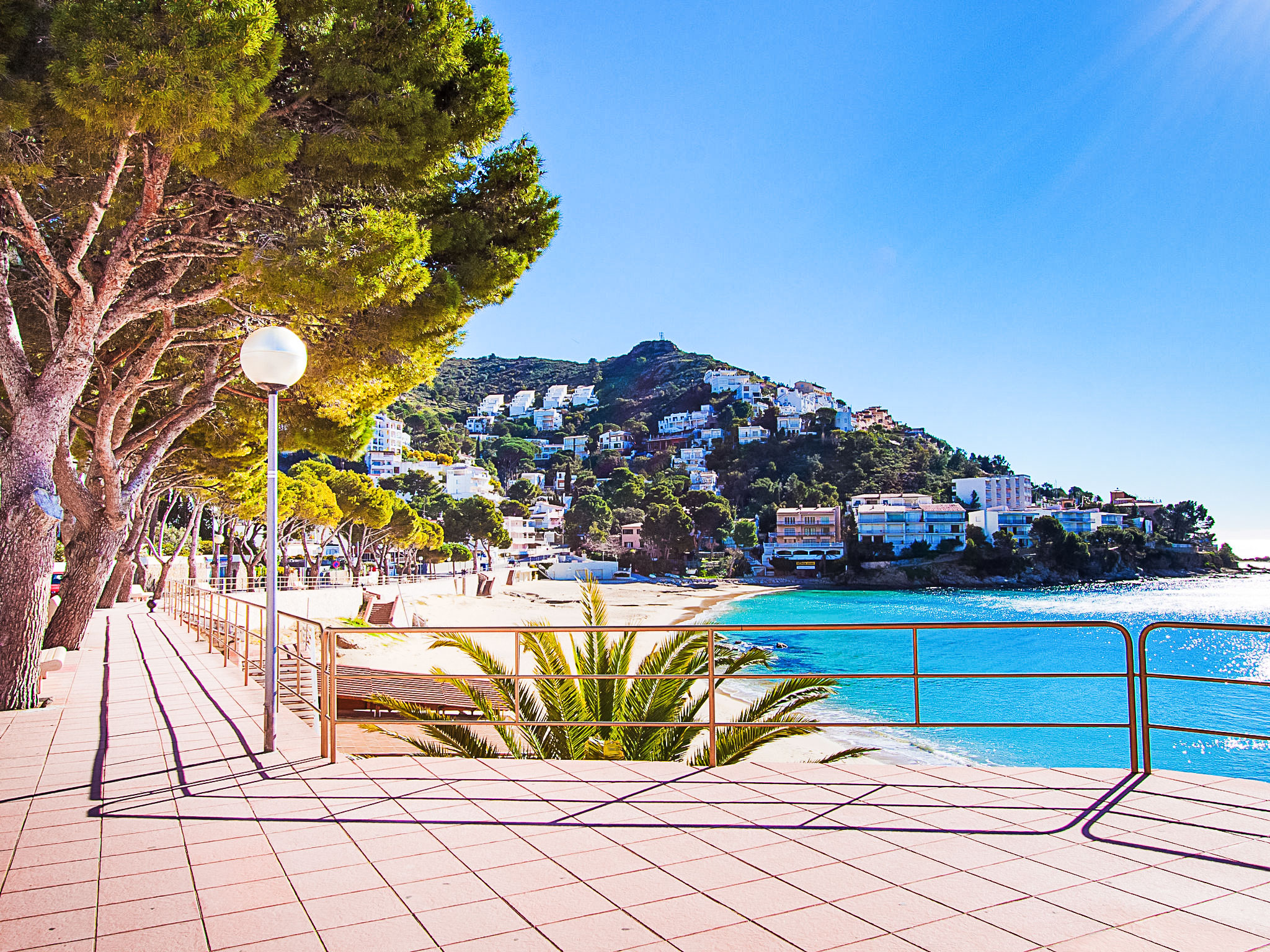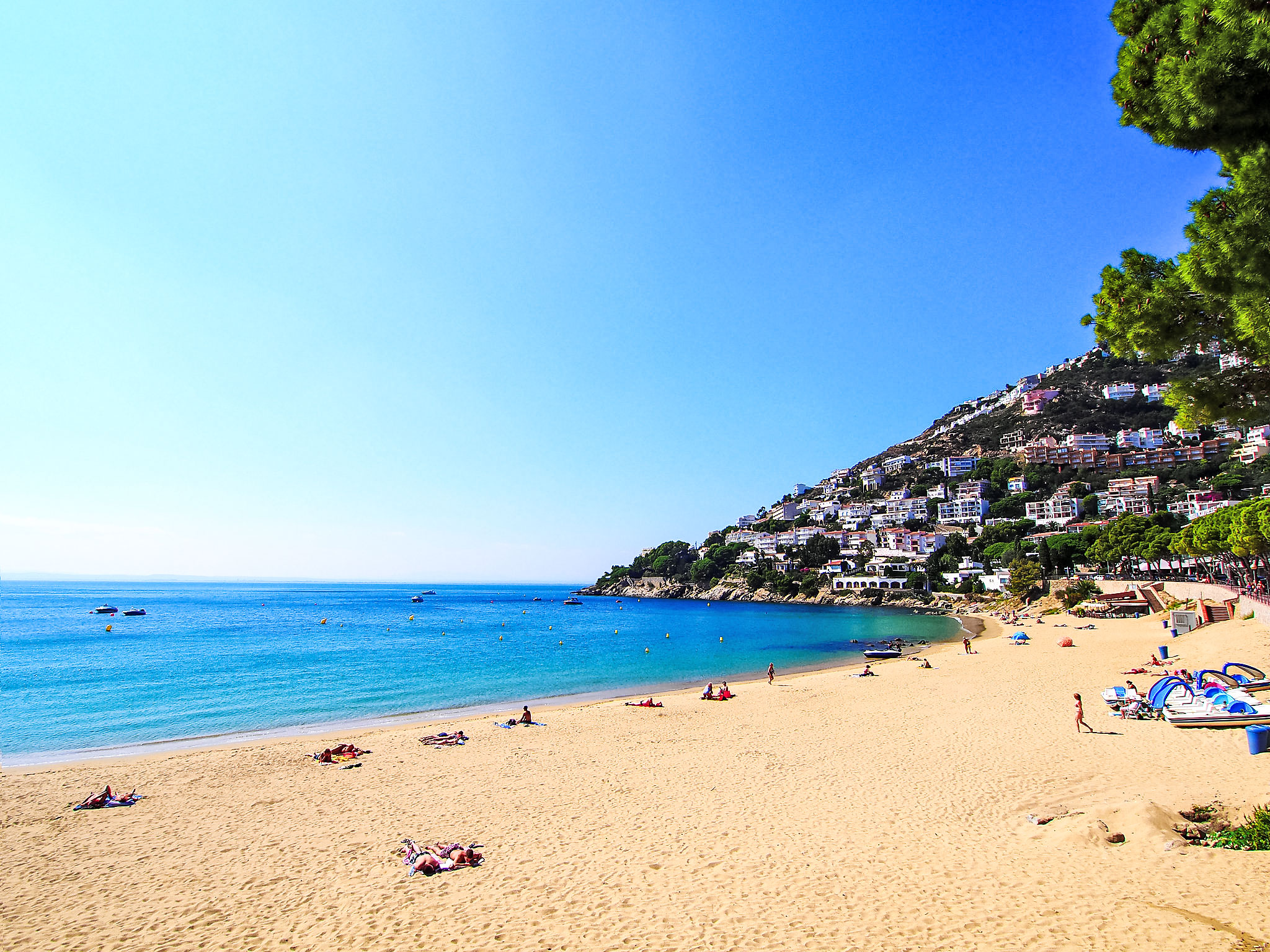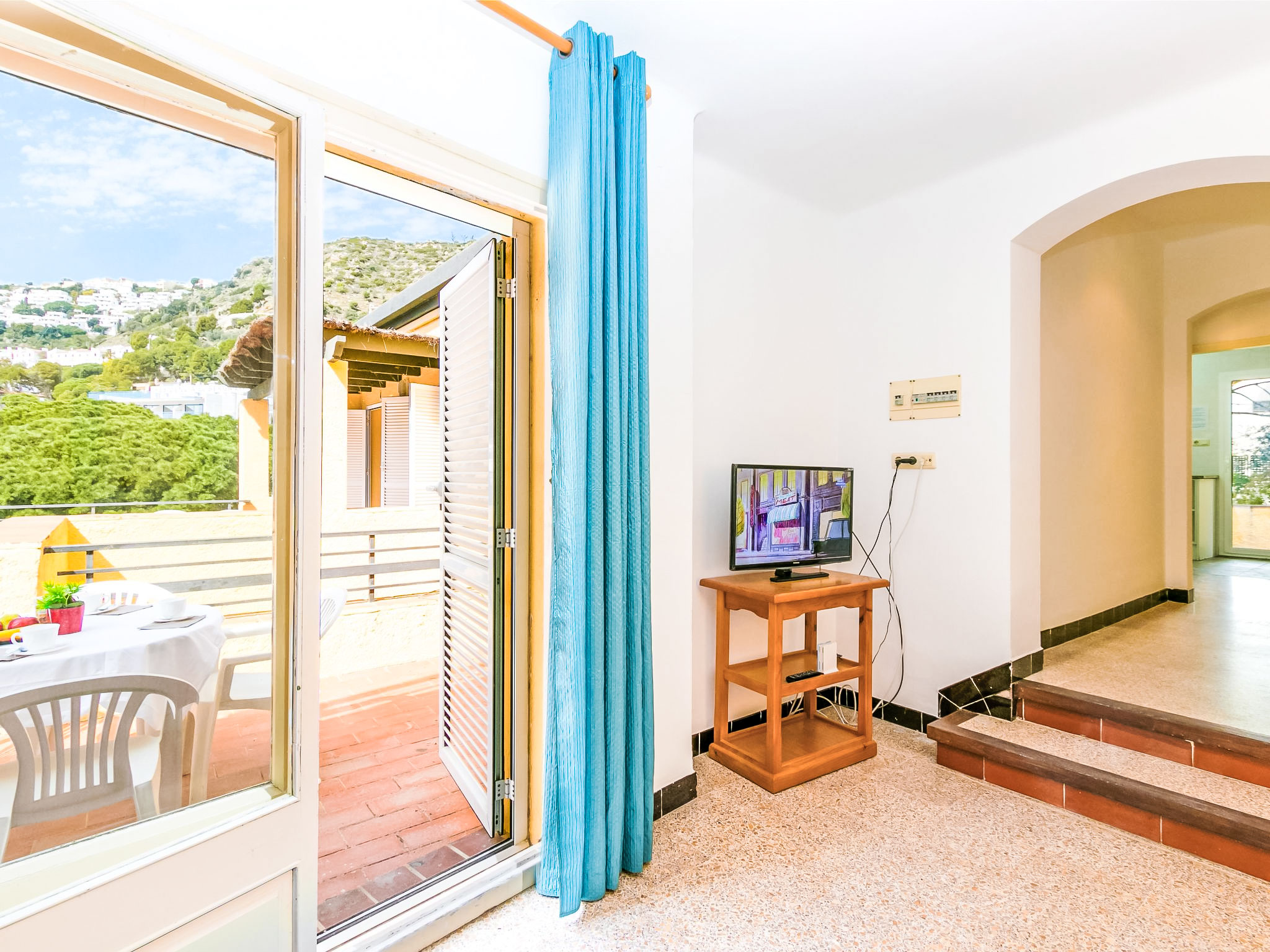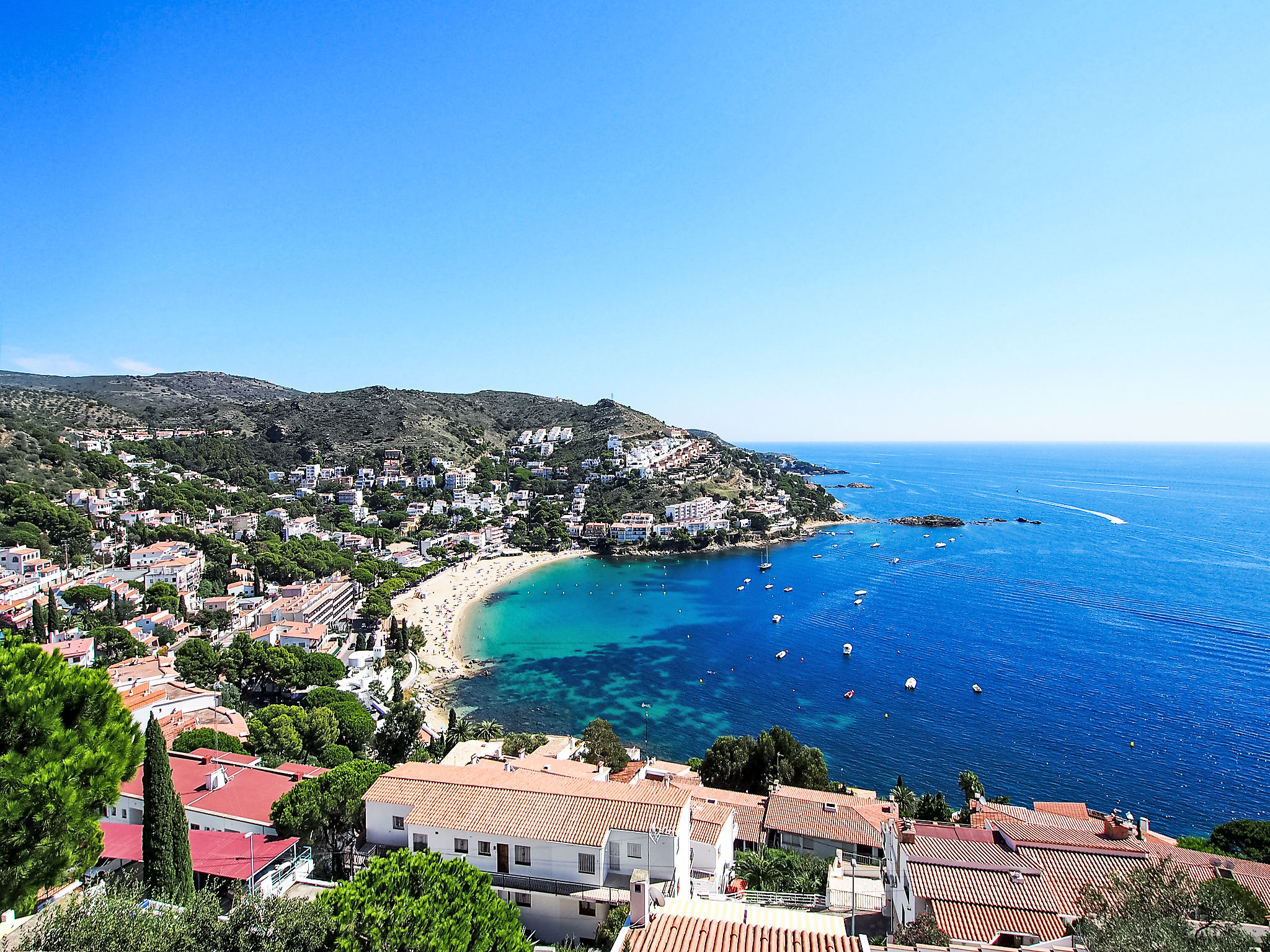Canyelles Petites: Gemütliche, einfache, komfortable Ferienanlage "Velazquez". Canyelles Petites, im Ort, 4 km vom Zentrum von Roses, ruhige, sonnige Lage am Hang, 60 m vom Meer, 60 m vom Strand, Strasse zu überqueren. Zur Mitbenutzung: Schwimmbad eckig (10 x 4 m, 80 - 180 cm tief, saisonale Verfügbarkeit: 12.Mai.-30.Sep.) mit Innentreppe. Im Hause: Wireless LAN. Einkaufsgeschäft, Lebensmittelgeschäft, Supermarkt 150 m, Restaurant 100 m, Bar, Café 20 m, Fußgängerzone 30 m, Bushaltestelle 100 m, Sandstrand "Canyelles Petites", Badebucht 60 m. Sporthafen 3 km, Golfplatz 20 km, Tennis 5 km, Reitstall 10 km. Nahe gelegene Sehenswürdigkeiten: Parque Acuático Aquabrava Roses 6 km, Skydive y túnel del viento Empuriabrava 11 km, Cadaqués 18 km, Castillo y casino de Perelada 25 km, Monasterio de Sant Pere de Rodes 24 km, Museo Dalí Figueres 24 km. Bitte beachten: In diesem Haus sind weitere Ferienwohnungen mietbar. Die Wohnungen sind terrassiert und hangabwärts angelegt. Die Terrassen der Wohnungen sind miteinander verbunden. Die Wohnungen und das Schwimmbad sind über eine Treppe von oben herab erreichbar. 200 m vom Strand von Canyelles Petites gelegen, einer der schönsten Strände von Roses. Bitte beachten: In der Wohnanlage wohnen hauptsächlich Familien. Gemäss dem Reglement der Siedlung wird ab 23 Uhr Ruhe verlangt. Garage Privat ausser ref es9410.383.3 Bitte beachten : Wohnungen ohne Heizung.