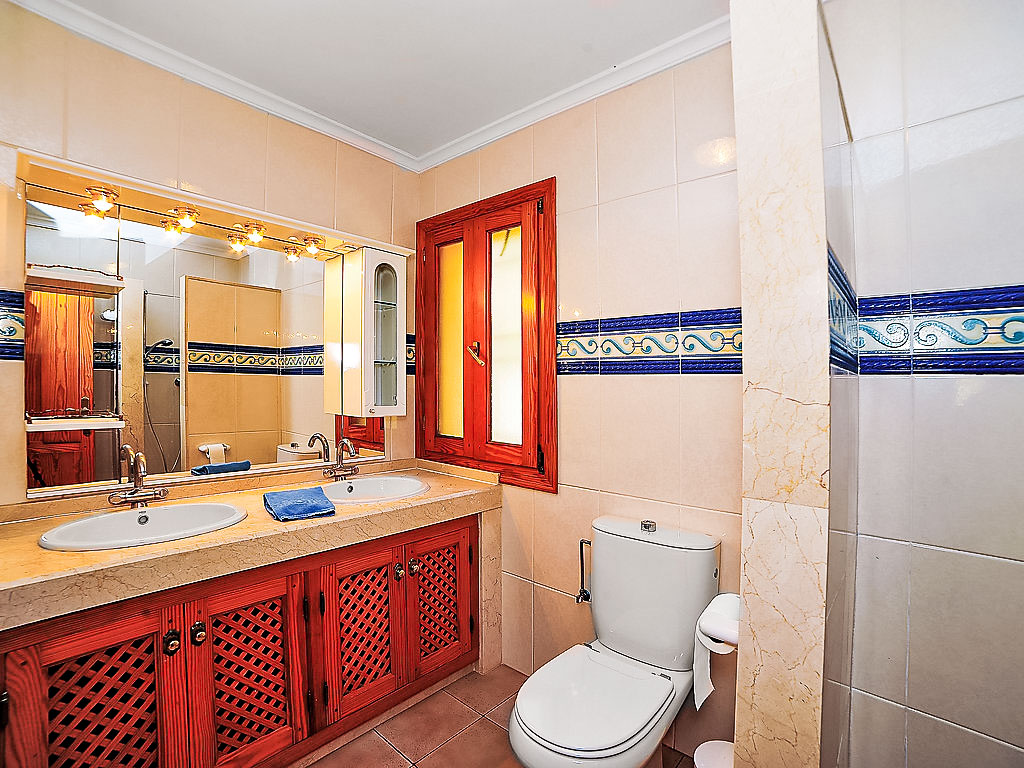 Schöne Villa "Palmera", auf 3 Stockwerken. Im Ortsteil Tosalet, ruhige Lage, 3 km vom Meer. Zur Alleinbenutzung: Garten 1'200 m2 (eingezäunt) mit Rasen und Bäumen, Schwimmbad (5 x 10 m, 01.01.-31.12.) mit Innentreppe. Grillhaus. Im Hause: Dachterrasse, Zentralheizung. Treppenweg (12 Stufen) bis zum Haus. Supermarkt 1.5 km, Restaurant 1 km, Sandstrand "Arenal" 3 km. Jugendgruppen nur auf Anfrage. Residenz ist 24 Std. überwacht. Die Nachbarschaft ist sehr lärmempfindlich. Ruhe und gutes Benehmen wird erwartet.