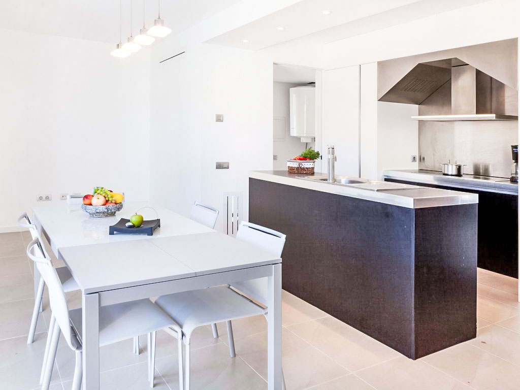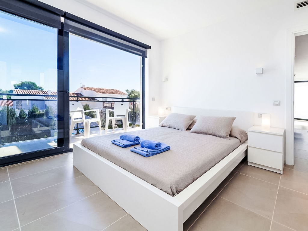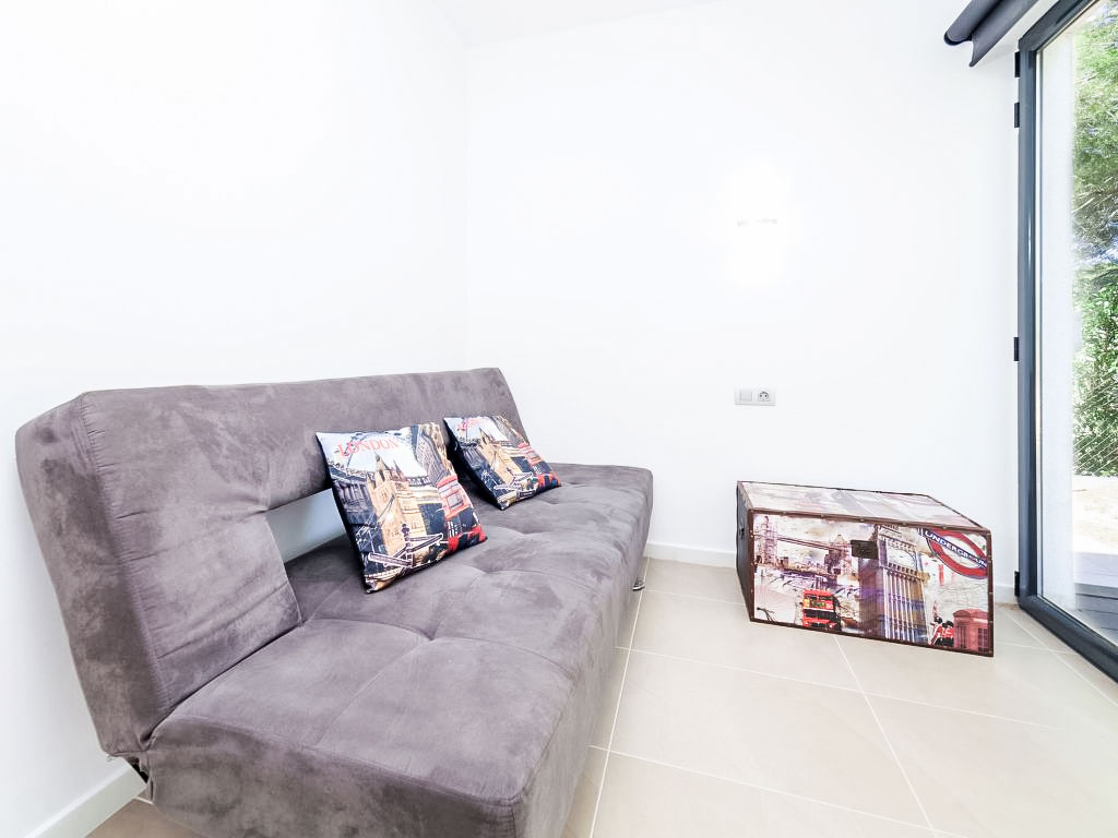 "Habana II", 5-Zimmer-Villa 118 m2. Hell, komfortabel und schön eingerichtet: Wohn-/Esszimmer mit Esstisch, Sat-TV und Digital-TV. Ausgang zum Gartensitzplatz. 1 Zimmer mit 1 Diwanbett (90 cm, Länge 150 cm). Offene Küche (Backofen, Geschirrspüler, 4 Glaskeramikherd Platten, Toaster, Wasserkocher, Mikrowelle, elektrische Kaffeemaschine). Ausgang zum Garten. Dusche/WC. Obergeschoss: 1 Zimmer mit 1 franz. Bett (135 cm), Bad/Dusche/WC (privat) Klimaanlage. Ausgang zum Balkon. 1 Zimmer mit 1 franz. Bett (135 cm), Klimaanlage. 1 Zimmer mit 1 franz. Bett (135 cm), Klimaanlage. Dusche/WC. Terrassenmöbel, Gartengrill. Zur Verfügung: Waschmaschine, Bügeleisen, Haartrockner. Internet (Wireless LAN, gratis). Bitte beachten: 1 Haustier/Hund erlaubt. TV nur ES, DE, FR. HUTTE002158