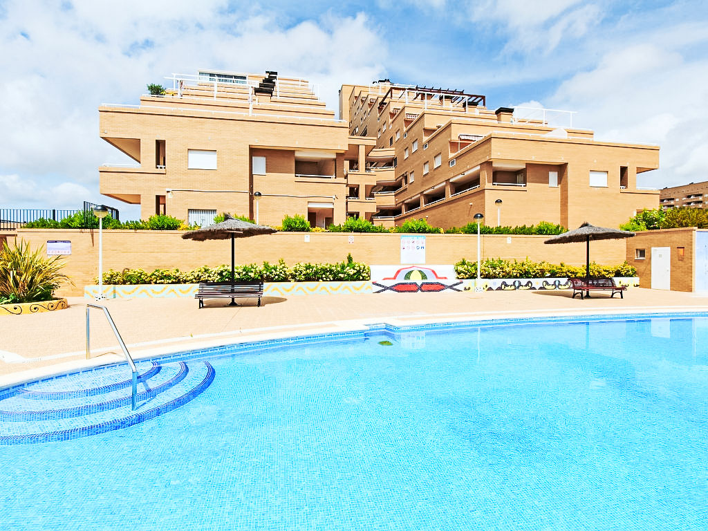 Jardines del Mar I: Gemütliches Appartementhaus "Jardines del Mar I". Am Ortsrand Oropesa del Mar, im Bezirk Marina D'Or, belebte, sonnige Lage, 300 m vom Meer, 300 m vom Strand, an einer Hauptstrasse. Zur Mitbenutzung: Schwimmbad (20 x 10 m, 70 - 230 cm tief, saisonale Verfügbarkeit: 01.Mai.-01.Okt.). Kinderbecken, Aussendusche. Im Hause: Fahrstuhl. Supermarkt 1 km, Restaurant 400 m, Bahnstation 4 km, Sandstrand 400 m. Bitte beachten: geeignet für Familien, geeignet für Senioren. Autobahn 900 m vom Haus. Hauptstrasse 300 m vom Haus. Eisenbahnlinie 3 km vom Haus. Nacht Club/Disco 300 m vom Haus.