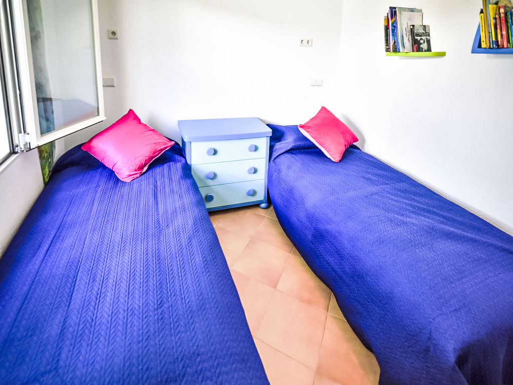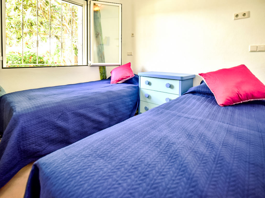 "Club San Juan II", 3-Zimmer-Haus. Zweckmässig und gemütlich eingerichtet: Wohn-/Esszimmer mit Digital-TV, Klimaanlage und Warmluftheizung. Ausgang zum Gartensitzplatz. 1 Zimmer mit 1 franz. Bett (150 cm, Länge 190 cm). 1 Zimmer mit 2 Betten (90 cm, Länge 190 cm). Offene Küche (Backofen, 3 Glaskeramikherd Platten, Mikrowelle, Tiefkühler, elektrische Kaffeemaschine) mit Klimaanlage und Warmluftheizung. Ausgang zum Gartensitzplatz. Dusche/WC. Terrasse. Terrassenmöbel, Liegestühle. Zur Verfügung: Waschmaschine. Internet (Wireless LAN, gratis). AT-468407-A