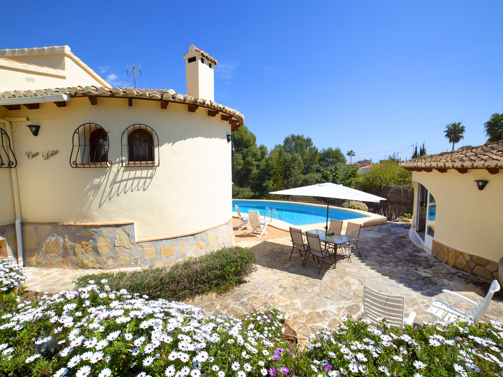 "Lolita", 6-Zimmer-Villa 135 m2 auf 2 Stockwerken. Geräumig und hell, komfortabel und schön eingerichtet: offenes Wohn-/Esszimmer mit Sat-TV, Digital-TV, Klimaanlage und Warmluftheizung. Ausgang zur Terrasse. 1 Zimmer mit 1 franz. Bett (150 cm, Länge 190 cm), Klimaanlage und Warmluftheizung. 1 Zimmer mit 2 Betten (90 cm, Länge 190 cm), Klimaanlage und Warmluftheizung. Offene Küche (4 Kochplatten, Backofen, Toaster, Wasserkocher, Mikrowelle, Tiefkühler, elektrische Kaffeemaschine). Ausgang zur Terrasse. Bad/Bidet/WC. Warmluftheizung. Unteres Geschoss: (Aussentreppe) Wohn-/Esszimmer. Ausgang zur Terrasse. 1 Zimmer mit 1 franz. Bett (150 cm, Länge 190 cm) mit 2 Betten (90 cm, Länge 190 cm). Offene Küche (2 Kochplatten, Backofen, Mikrowelle). Dusche/WC. Terrassenmöbel, Gartengrill. Sicht auf das Tal und die Ortschaft. Zur Verfügung: Waschmaschine, Bügeleisen, Haartrockner. Internet (Wireless LAN, gratis). Parkplatz (überdacht, 1 Auto). Geeignet für Familien. AT-475142-A