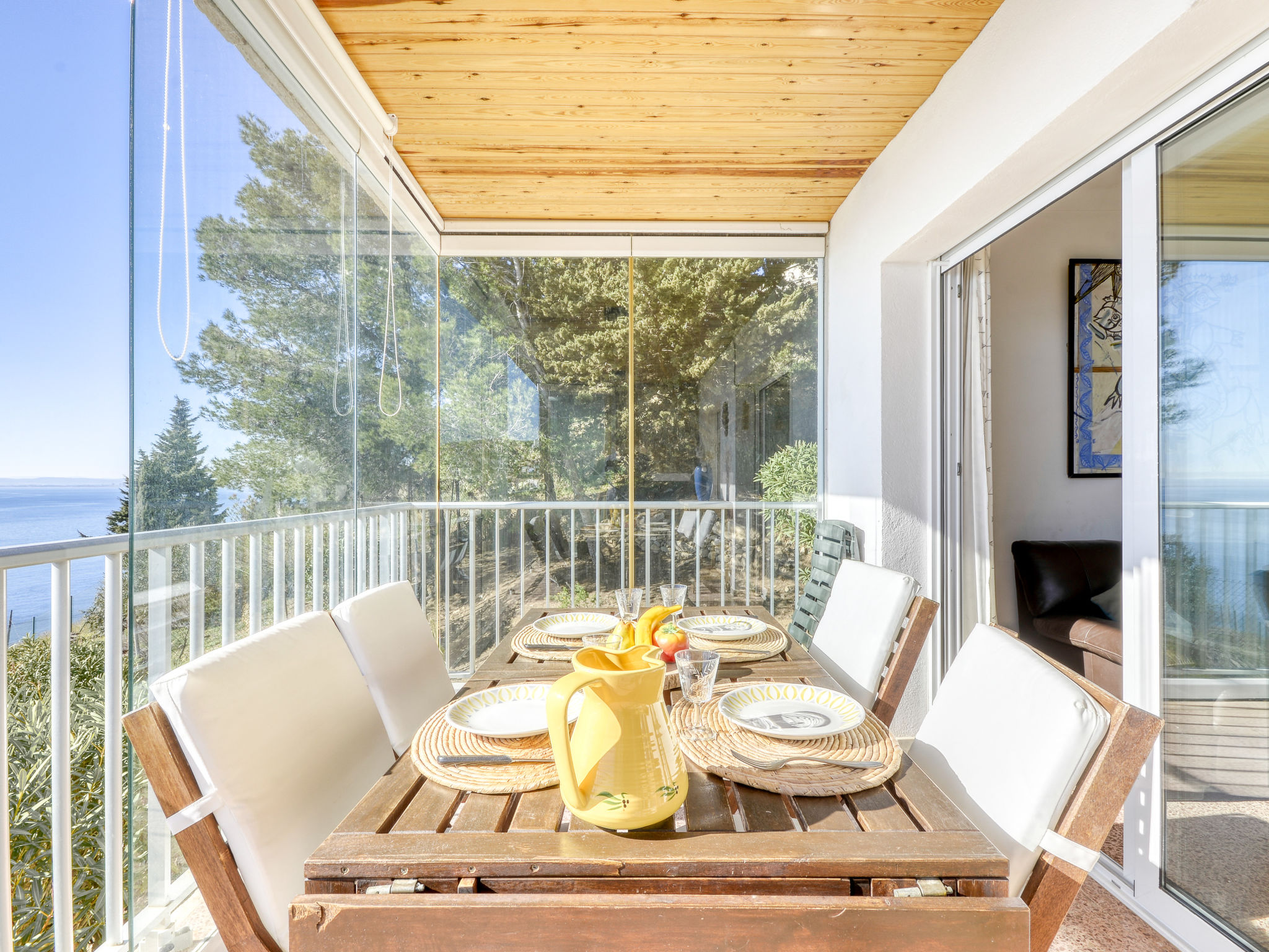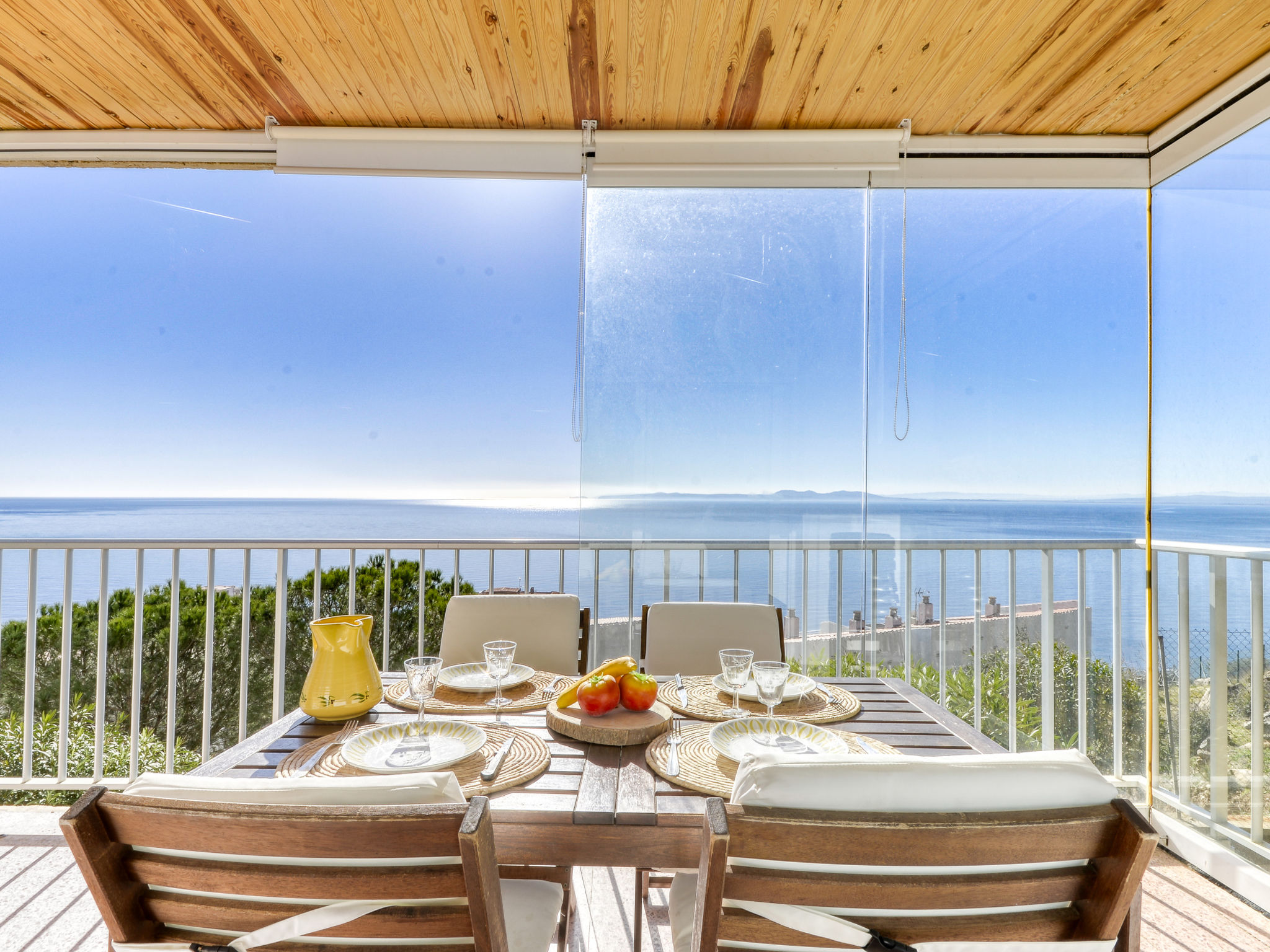 3-Zimmer-Wohnung 62 m2, Südwestlage. Geräumig und hell, komfortabel und gemütlich eingerichtet: Wohn-/Esszimmer mit TV. Ausgang zur Terrasse. 1 Zimmer mit 1 franz. Bett (140 cm, Länge 190 cm). Ausgang zur Terrasse. 1 Zimmer mit 2 x 2 Etagenbetten (135 cm, Länge 190 cm). (Backofen, Geschirrspüler, 4 Glaskeramikherd Platten, Mikrowelle, Tiefkühler, elektrische Kaffeemaschine). Dusche, sep. WC. Terrasse 12 m2, Südlage und Westlage. Terrassenmöbel. Herrliche Panoramasicht auf das Meer. Zur Verfügung: Waschmaschine. Internet (Wireless LAN, gratis). Bitte beachten: TV nur FR. Kein Fahrstuhl. HUTG051141