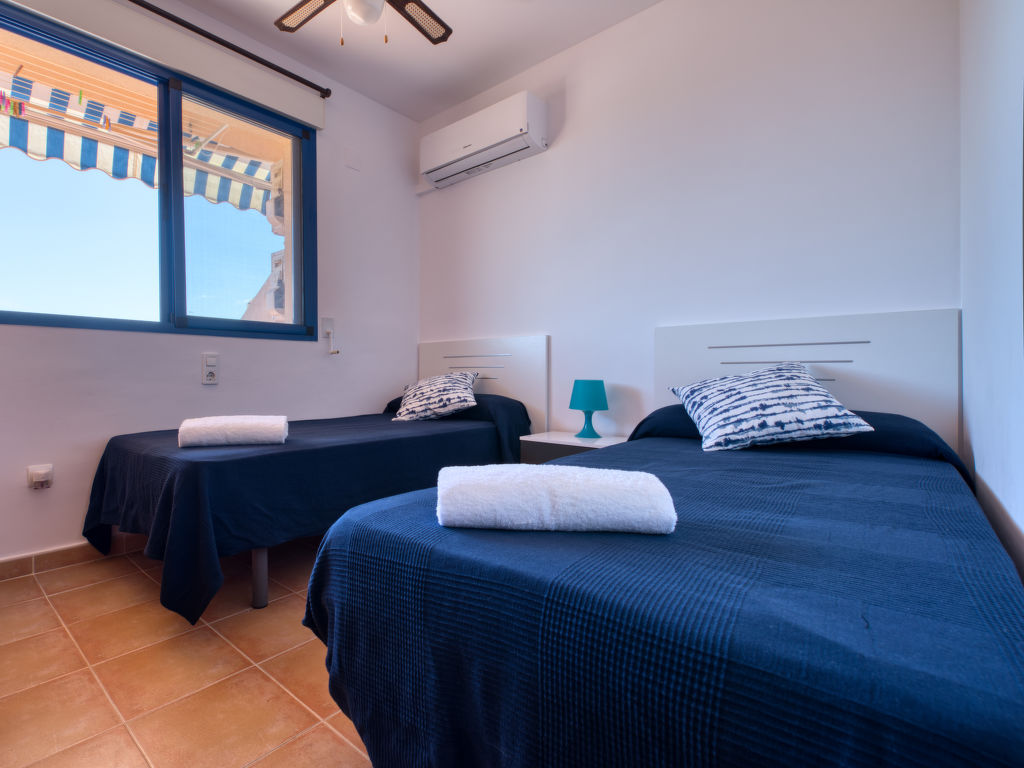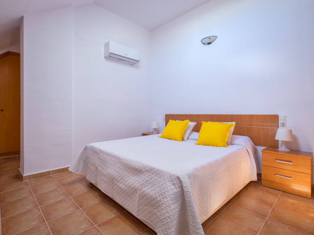 "La Marjal", 3-Zimmer-Maisonette-Wohnung 64 m2. Geräumig und hell, komfortabel und gemütlich eingerichtet: Wohn-/Esszimmer mit 1 Diwanbett, Digital-TV, Klimaanlage und Warmluftheizung. Ausgang zur Terrasse. 1 Zimmer mit 2 Betten (90 cm, Länge 190 cm), Klimaanlage, Ventilator und Warmluftheizung. Küche (Backofen, Geschirrspüler, 4 Glaskeramikherd Platten, Mikrowelle, Tiefkühler, elektrische Kaffeemaschine). Dusche/WC. Obergeschoss: 1 Zimmer mit 1 franz. Bett (150 cm, Länge 190 cm), Bad/Bidet/WC, Klimaanlage und Warmluftheizung. Grosse Terrasse 30 m2. Terrassenmöbel. Zur Verfügung: Waschmaschine, Bügeleisen, Haartrockner. Internet (Wireless LAN, gratis). Parkplatz Nr. 64. AT-481698-A