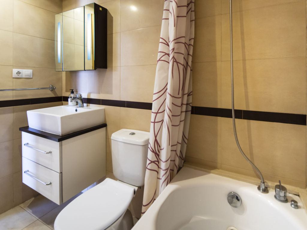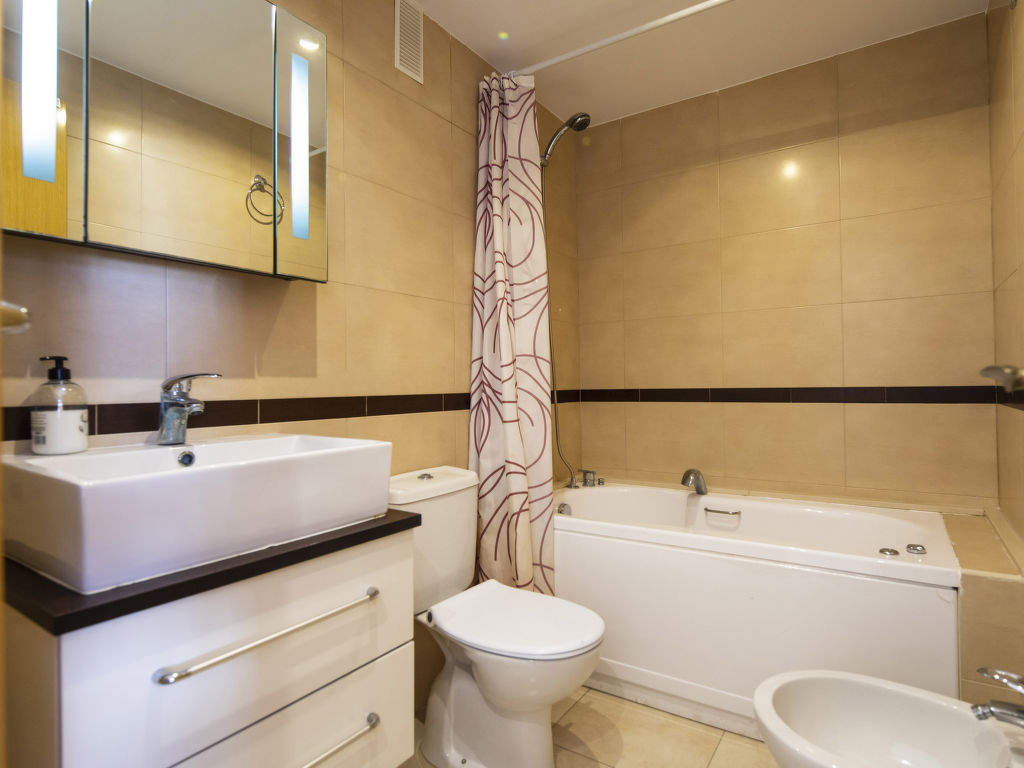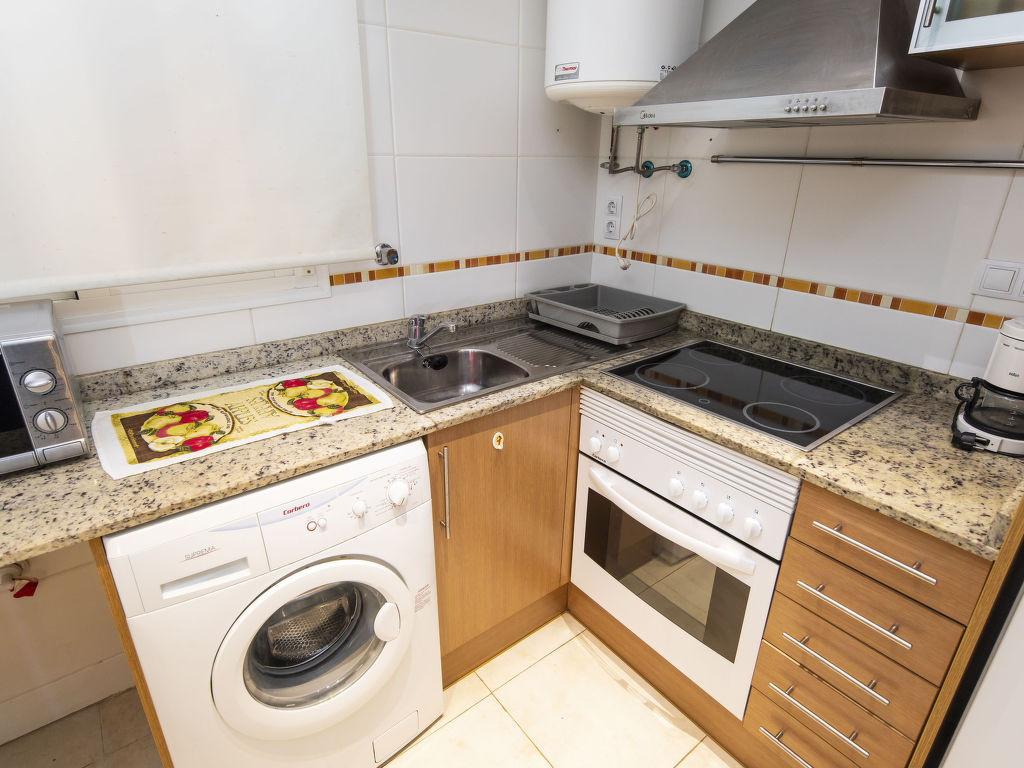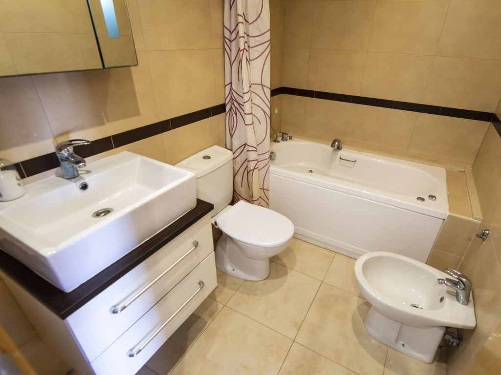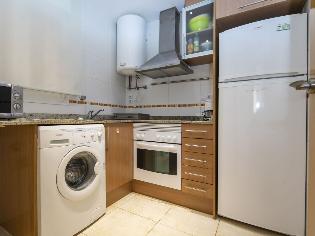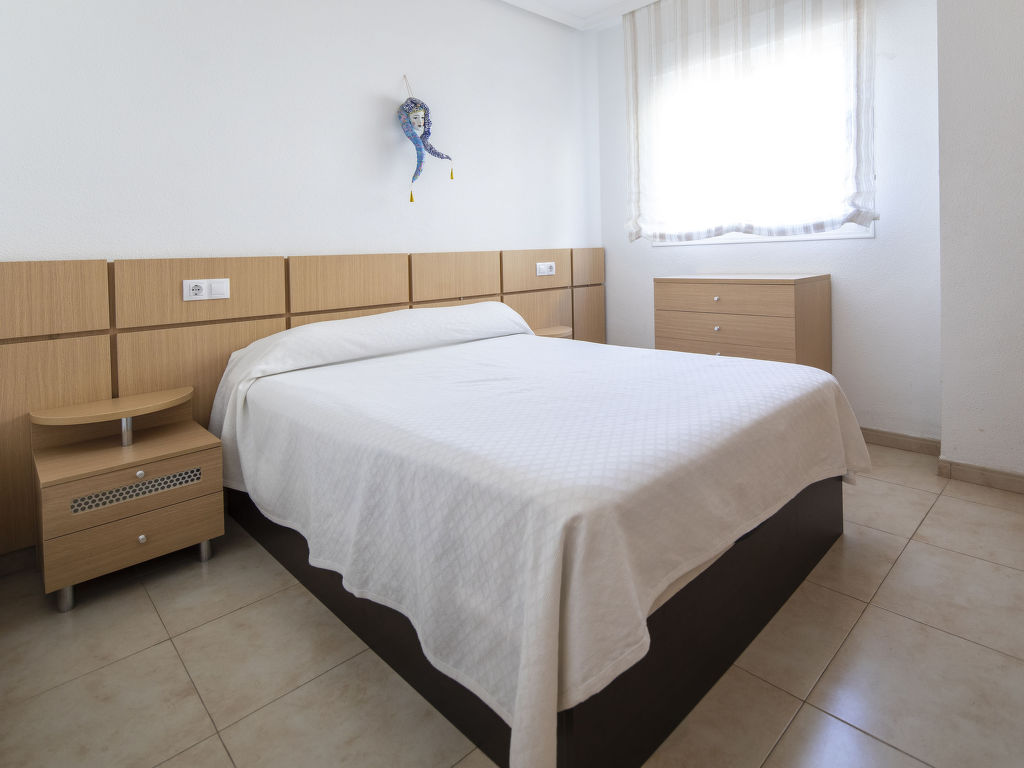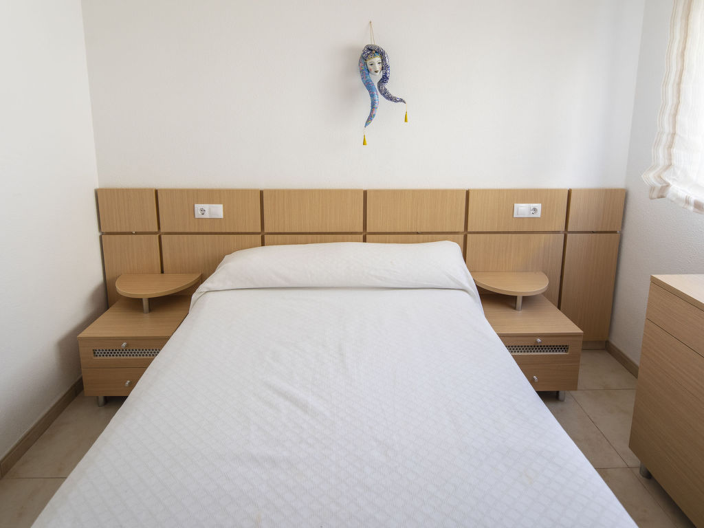 "Frontal Montañas", 3-Zimmer-Wohnung 110 m2 im 7. Stock. Hell, zweckmässig und komfortabel eingerichtet: Wohn-/Esszimmer mit 1 Doppeldiwanbett, Esstisch, Digital-TV, Flachbildschirm, Klimaanlage und Warmluftheizung. Ausgang zur Terrasse. 1 Zimmer mit 1 franz. Bett (135 cm, Länge 190 cm), E-Heizung. 1 Zimmer mit 2 Betten (90 cm, Länge 190 cm). Küche (Backofen, 4 Glaskeramikherd Platten, Toaster, Mikrowelle, elektrische Kaffeemaschine). Bad/Bidet/WC. Boiler (80 Liter). Grosse Terrasse 43 m2. Terrassenmöbel. Sicht auf die Berge. Zur Verfügung: Waschmaschine, Bügeleisen, Kinderhochstuhl, Babybett, Haartrockner. Parkplatz (überdacht, 1 Auto). Bitte beachten: geeignet für Familien. Nichtraucher-Unterkunft. 1 Haustier/Hund erlaubt. AT-39654-CS