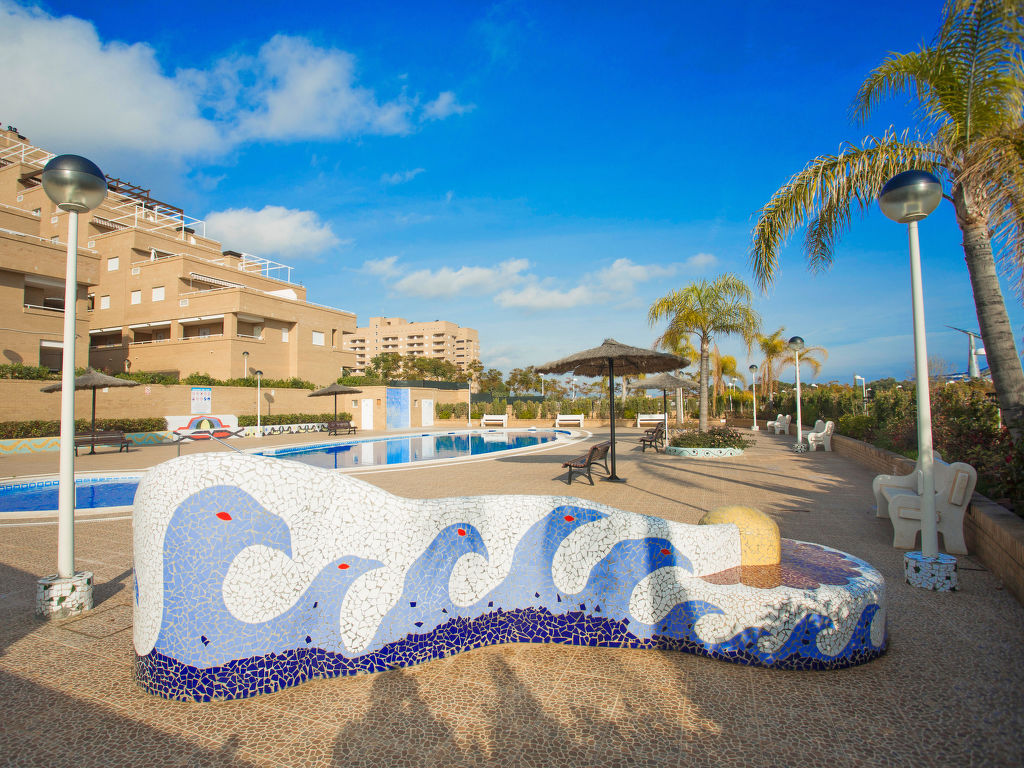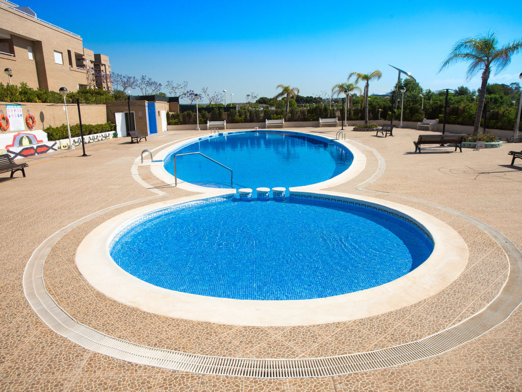 Jardines del Mar I: Gemütliches Appartementhaus "Jardines del Mar I". Am Ortsrand Oropesa del Mar, im Bezirk Marina D'Or, belebte, sonnige Lage, 300 m vom Meer, 300 m vom Strand, an einer Hauptstrasse. Zur Mitbenutzung: Schwimmbad (20 x 10 m, 70 - 230 cm tief, saisonale Verfügbarkeit: 01.Mai.-01.Okt.). Kinderbecken, Aussendusche, Kinderspielplatz. Im Hause: Fahrstuhl. Parkplatz (überdacht). Supermarkt 1 km, Restaurant 400 m, Bahnstation 4 km, Sandstrand 400 m. Bitte beachten: geeignet für Familien, geeignet für Senioren. Autobahn 900 m vom Haus. Hauptstrasse 300 m vom Haus. Eisenbahnlinie 3 km vom Haus.
