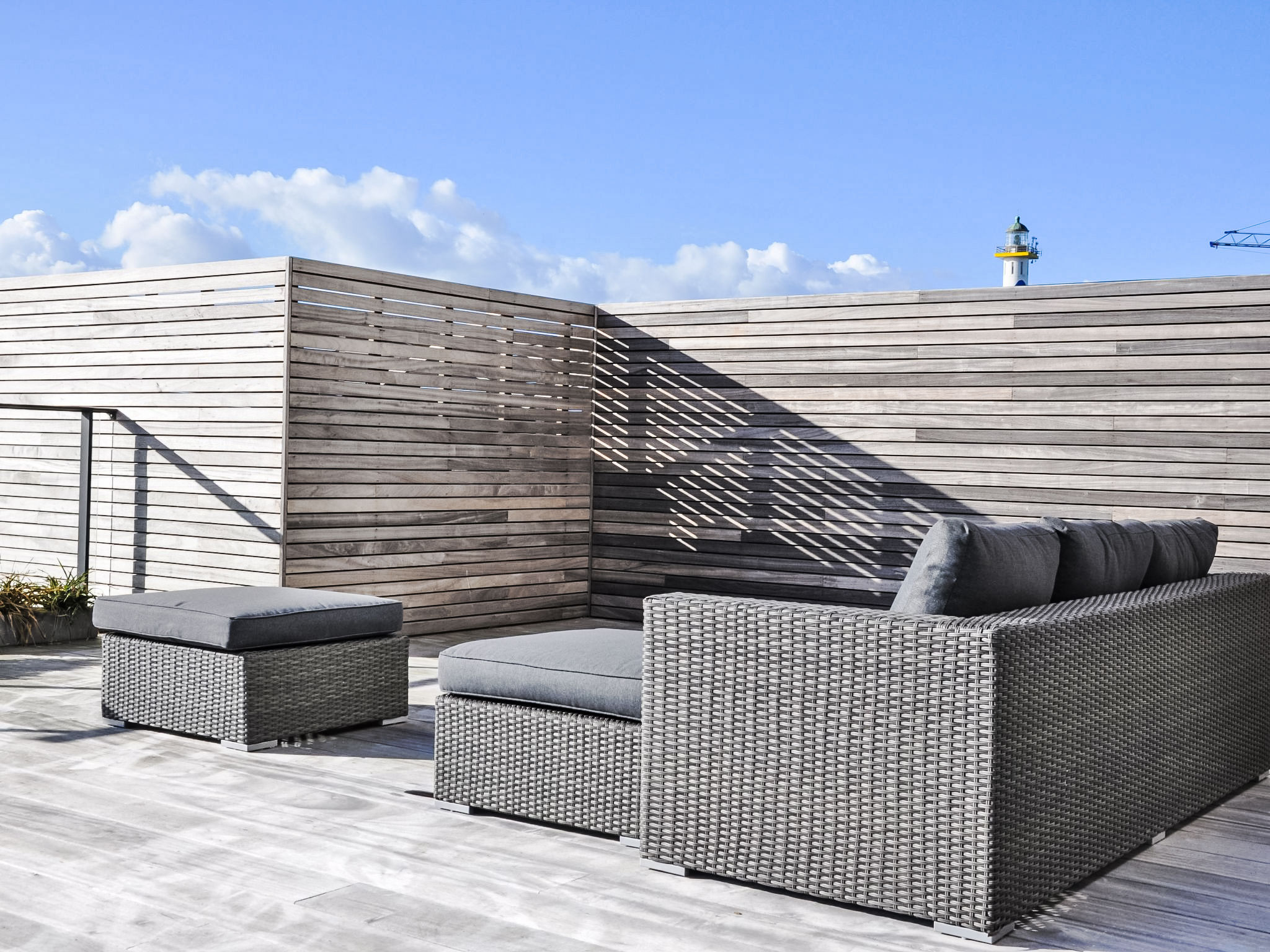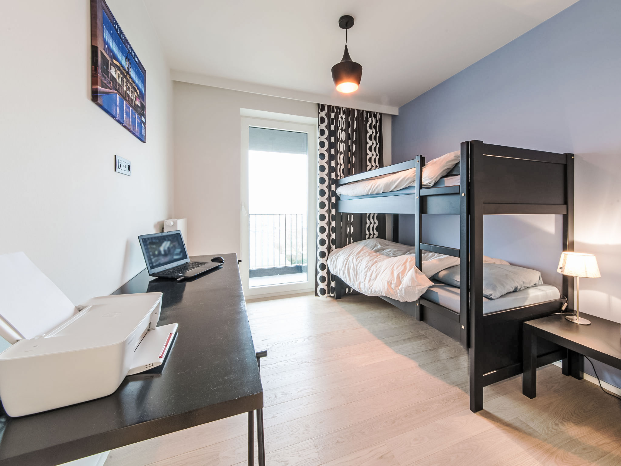 "Havenzicht", 3-Zimmer-Wohnung 125 m2 im 6. Stock. Modern eingerichtet: Eingang mit sep. WC. Wohn-/Esszimmer mit Esstisch, TV, Digital-TV, Internationale TV-Sender und Stereoanlage. Ausgang zur Terrasse. 1 Zimmer mit 1 x 2 Etagenbetten (90 cm, Länge 200 cm). 1 Doppelzimmer mit 1 Doppelbett (180 cm, Länge 200 cm), TV. Offene Küche (Geschirrspüler, 4 Glaskeramikherd Platten, elektrische Kaffeemaschine, Kapseln für die Kaffeemaschine (Senseo) gratis, Kombinationsmikrowelle). Dusche, Doppelwaschbecken. Grosse Terrasse 60 m2. Terrassenmöbel, Sitzplatz, Abstellkammer. Panoramasicht auf das Meer, den Hafen und die Stadt. Zur Verfügung: Waschmaschine, Haartrockner. Internet (Wireless LAN, gratis). Garage Nr. 10 auf dem Grundstück. Bitte beachten: Nichtraucher-Haus. Rauchmelder, Feuerlöscher. Projekt in voller Entwicklung. Geniessen Sie als einer der ersten von dieser Top-Lage zum jetzt niedrigen Preis!