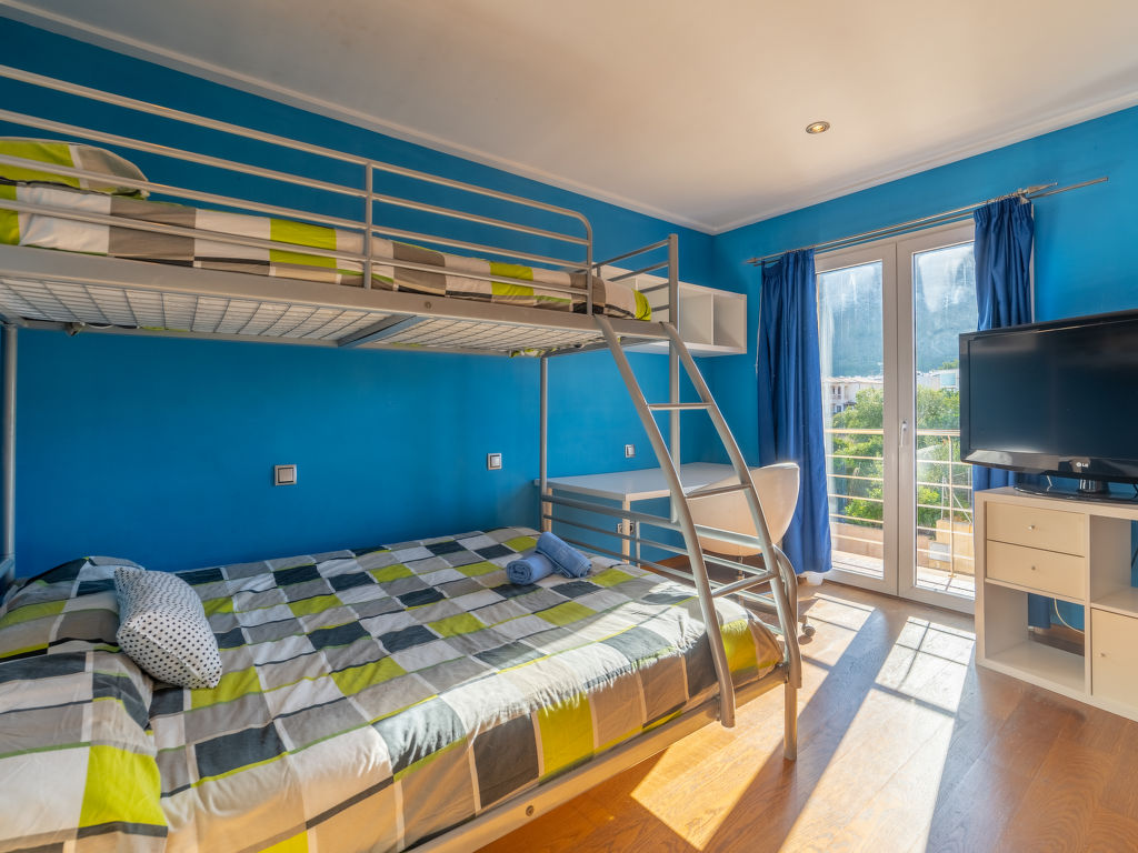 "Jada", 5-Zimmer-Villa 300 m2 auf 2 Stockwerken. Objekt geeignet für 8 Erwachsene. Geräumig und hell, vollständig renoviert, modern und gemütlich eingerichtet: grosses Wohn-/Esszimmer mit Schiebetür, Panoramafenster mit Esstisch, Sat-TV, Digital-TV und Flachbildschirm. Ausgang zum Gartensitzplatz. 1 grosses Doppelzimmer mit Panoramafenster mit 1 franz. Bett (150 cm, Länge 200 cm). Wohnküche (Backofen, Geschirrspüler, 3 Glaskeramikherd Platten, Mikrowelle, Tiefkühler, elektrische Kaffeemaschine) mit Esstisch. Ausgang zum Gartensitzplatz, zum Schwimmbad. Dusche/WC. Obergeschoss: 1 grosses Doppelzimmer mit Schiebetür, Panoramafenster mit 1 franz. Bett (150 cm, Länge 200 cm), Bad/Dusche/WC, Sprudelbad, TV, Flachbildschirm, Klimaanlage und Warmluftheizung. Ausgang zum Balkon. 1 Doppelzimmer mit Panoramafenster mit 1 franz. Bett, TV und Flachbildschirm. 1 Doppelzimmer mit Panoramafenster mit 1 x 2 Etagenbetten, TV und Flachbildschirm. Bad/WC. Grosser Gartensitzplatz, Rasen, Laube. Terrassenmöbel, Balkonmöbel, Gartengrill, Liegestühle. Sicht auf das Meer, die Berge und die Ortschaft. Zur Verfügung: Waschmaschine, Safe, Bügeleisen, Kinderhochstuhl, Babybett, Haartrockner. Internet (Wireless LAN, gratis). Parkplatz. Bitte beachten: geeignet für Familien. Nichtraucher-Haus. ETV2525