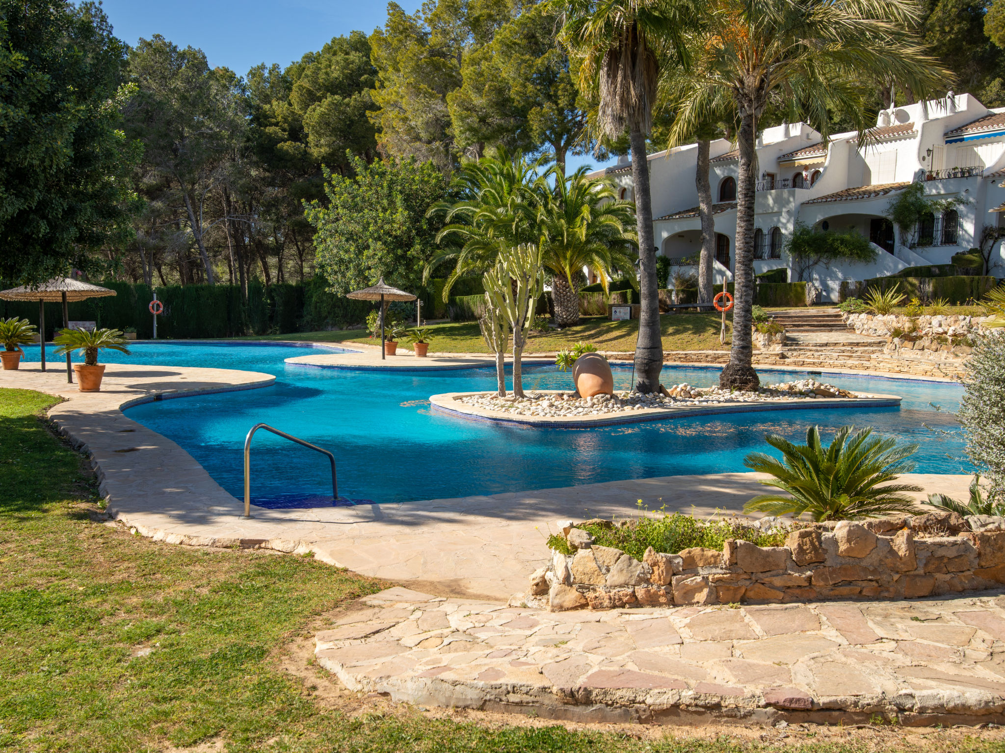 Gemütliches, komfortables Appartementhaus "Los Lagos". Am Ortsrand, 1.5 km vom Zentrum von Jesus Pobre, ausserhalb des Ortes, 9 km vom Zentrum von Denia / Javea, alleinstehende, ruhige, sonnige Lage, 9 m vom Meer, 9 km vom Strand. Zur Mitbenutzung: grosser, schöner, gepflegter Terrassengarten mit Rasen und Bäumen, Schwimmbad (38 x 22 m, saisonale Verfügbarkeit: 01.Jan.-31.Dez.). Kinderbecken, Aussendusche. Zur Alleinbenutzung: Terrasse. Treppenweg bis zum Haus. Öffentliches Parkhaus. Einkaufsgeschäft 1.5 km, Supermarkt 1.5 km, Restaurant 1.5 km, Bar 1.5 km, Café 1.5 km, Sandstrand 9 km. Golfplatz 2 km. Bitte beachten: Fahrzeug empfohlen. Der Besitzer akzeptiert keine Jugendgruppen.