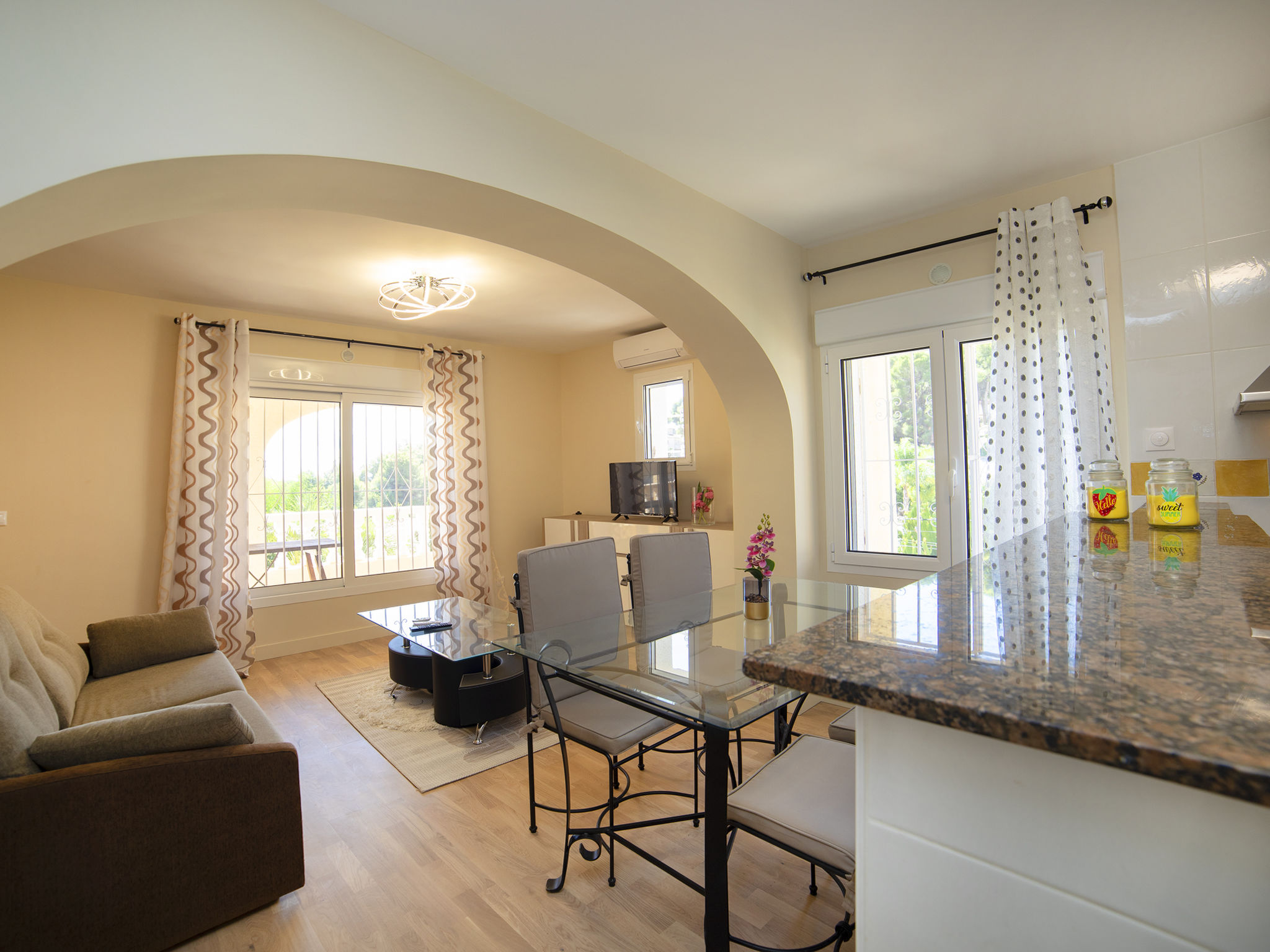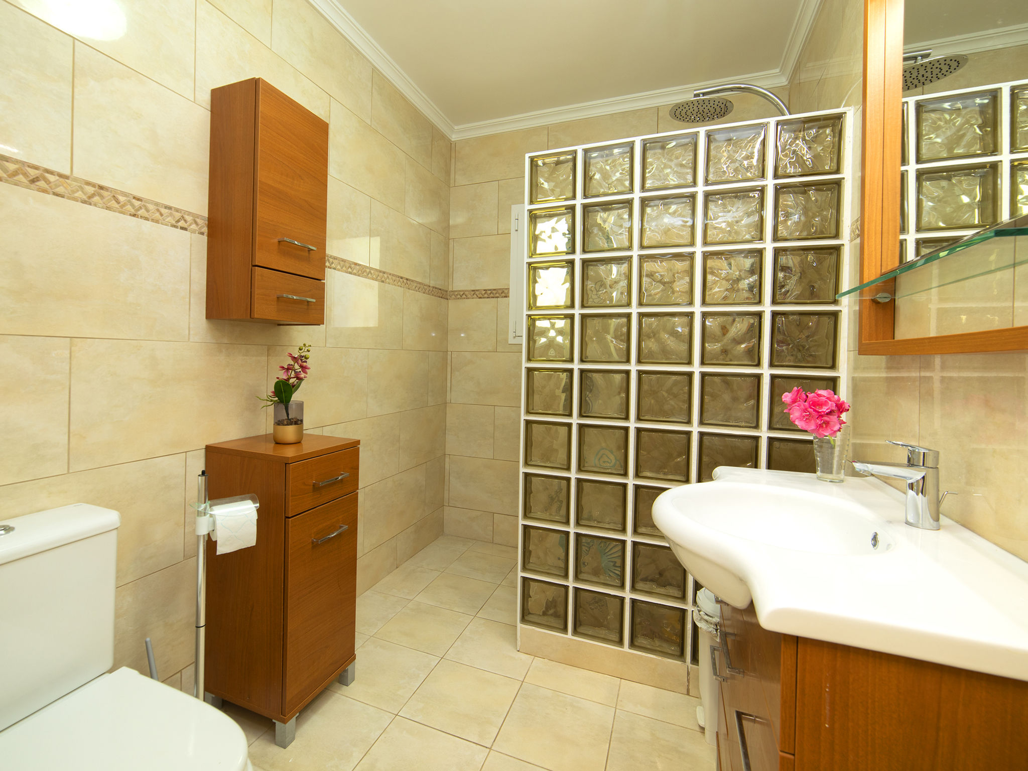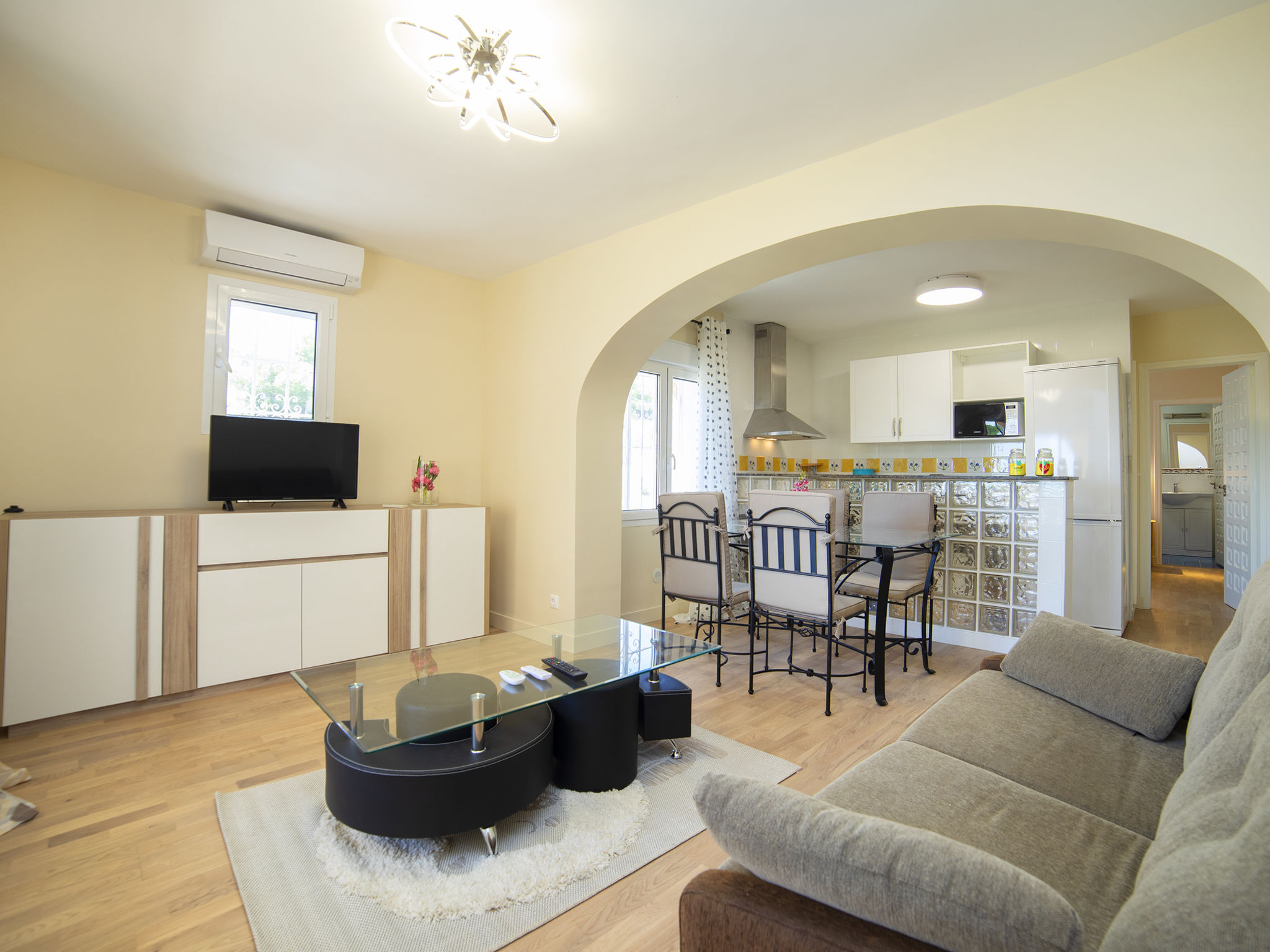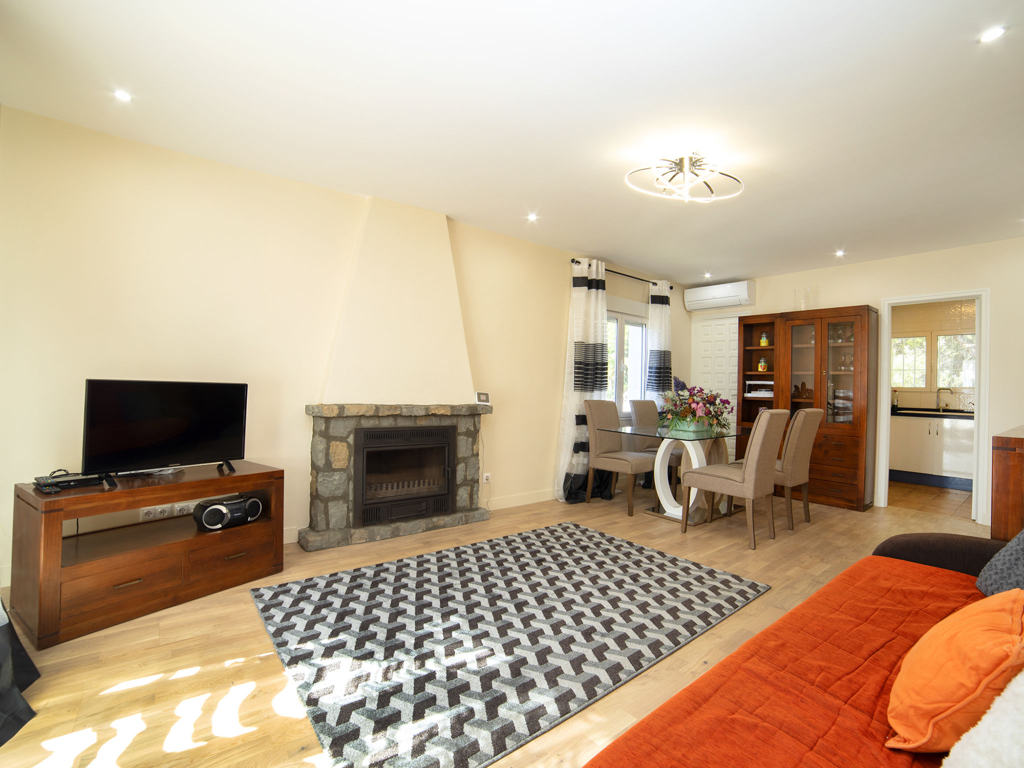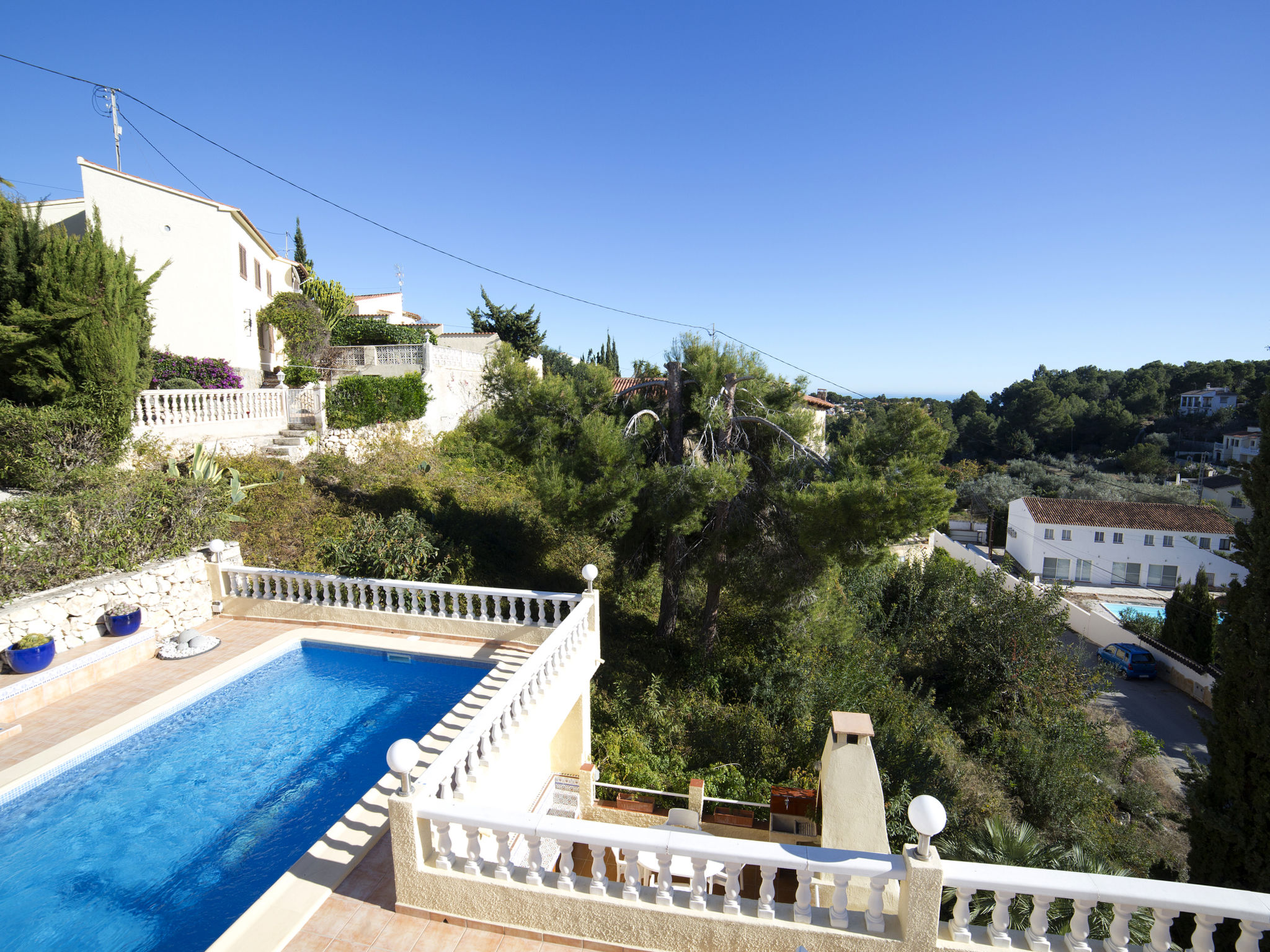 "Alexia", 5-Zimmer-Haus 136 m2 auf 2 Stockwerken. Komfortabel und schön eingerichtet: Wohn-/Esszimmer mit Sat-TV, Digital-TV, Klimaanlage und Warmluftheizung. Ausgang zur Terrasse, zum Schwimmbad. 1 Zimmer mit 1 franz. Bett (1 x 180 cm, Länge 200 cm), Klimaanlage und Warmluftheizung. 1 Zimmer mit 1 franz. Bett (1 x 180 cm, Länge 200 cm), Klimaanlage und Warmluftheizung. Küche (4 Kochplatten, Backofen, Geschirrspüler, Mikrowelle, elektrische Kaffeemaschine). Dusche/WC. Unteres Geschoss: (Aussentreppe) Wohn-/Esszimmer mit Sat-TV, Klimaanlage und Warmluftheizung. Ausgang zur Terrasse. 1 Zimmer mit 1 franz. Bett (1 x 180 cm, Länge 200 cm), Klimaanlage und Warmluftheizung. Kleine, offene Küche (4 Kochplatten, Mikrowelle, elektrische Kaffeemaschine). Dusche/WC. Grosse Terrasse. Gartengrill. Fernsicht auf das Meer und die Landschaft. Zur Verfügung: Waschmaschine, Bügeleisen, Kinderhochstuhl, Babybett bis 2 Jahre, Haartrockner. Parkplatz (überdacht, 2 Autos). Für Kleinkinder nicht geeignet. AT-458225-A
