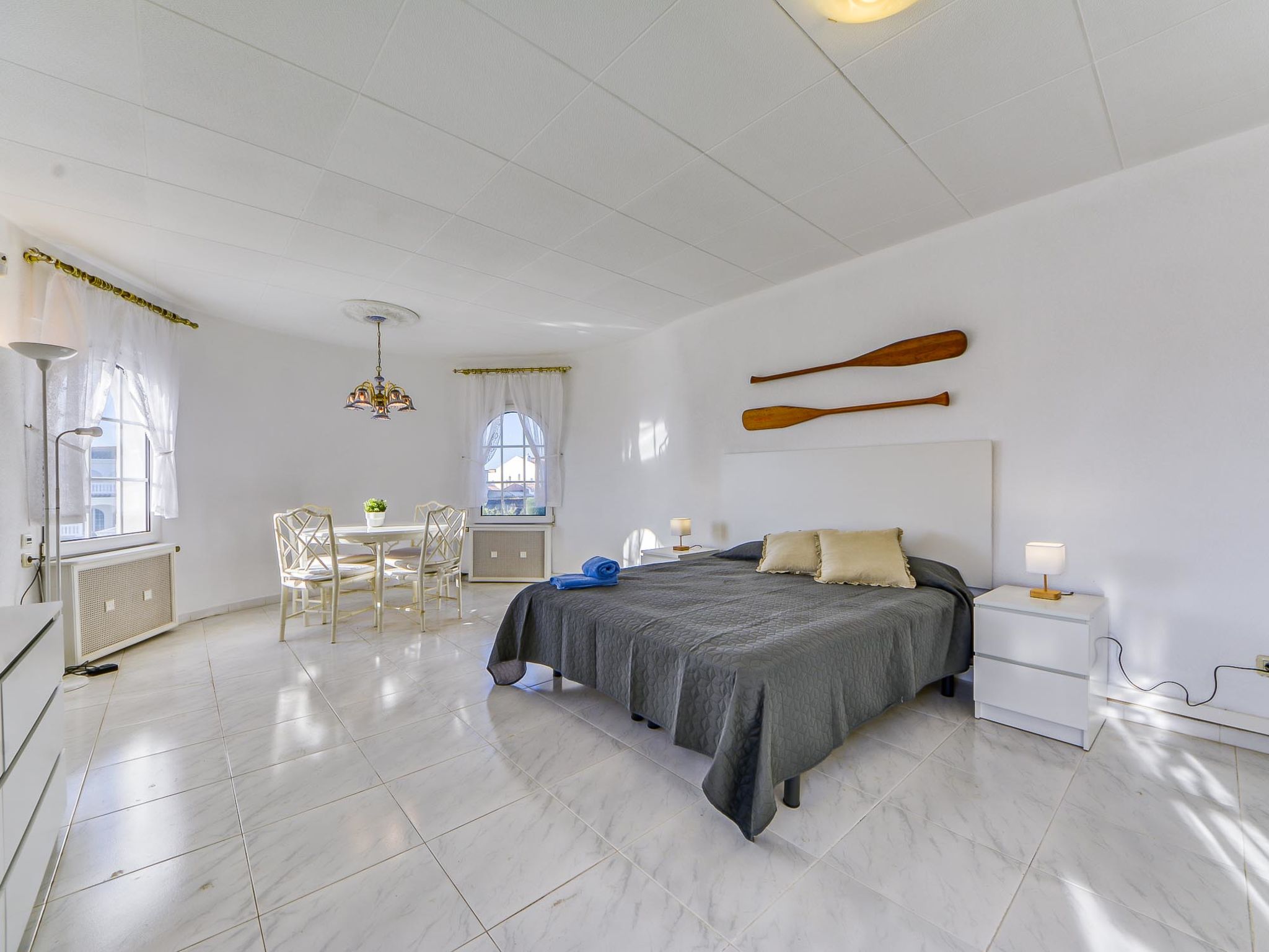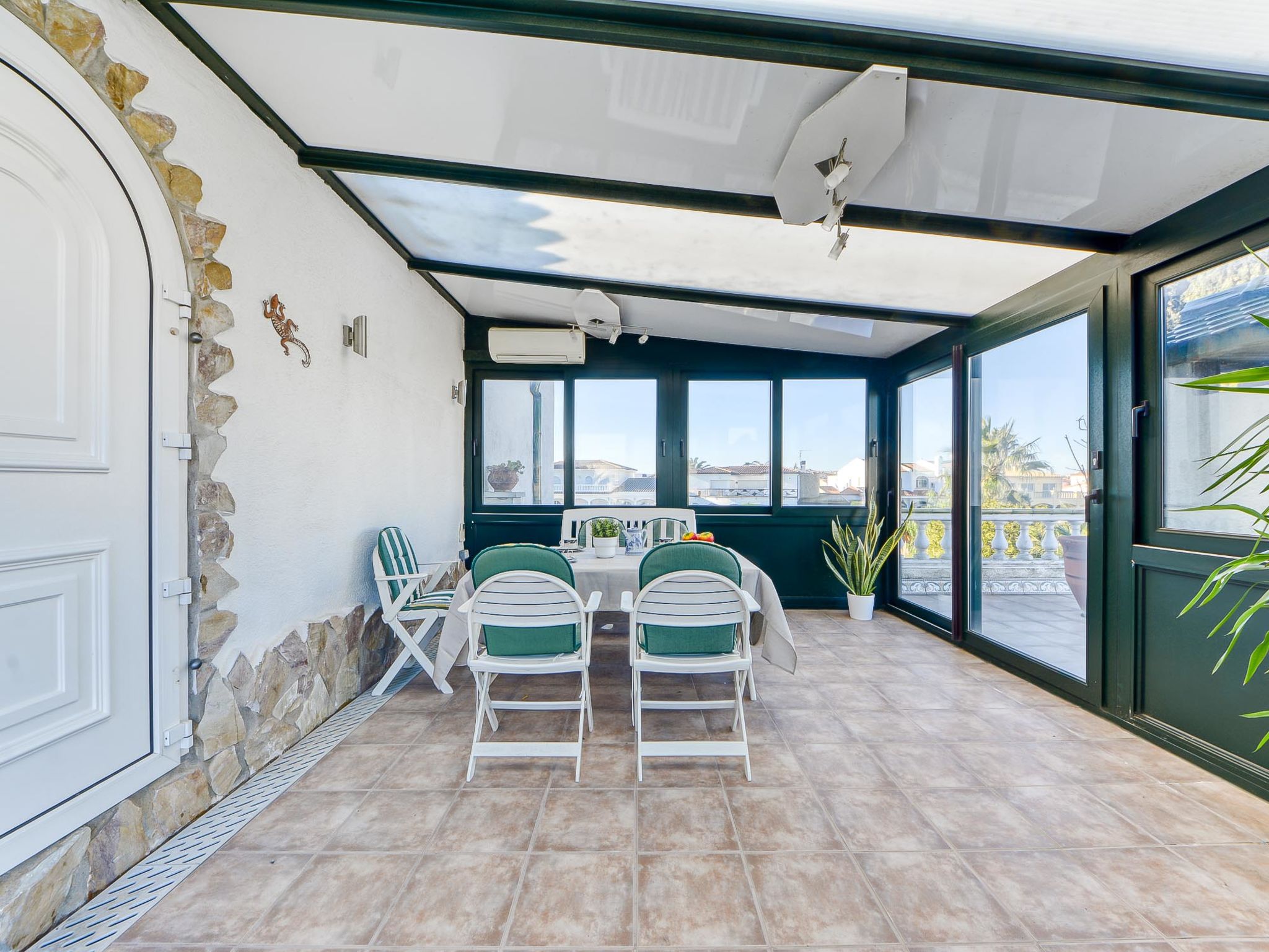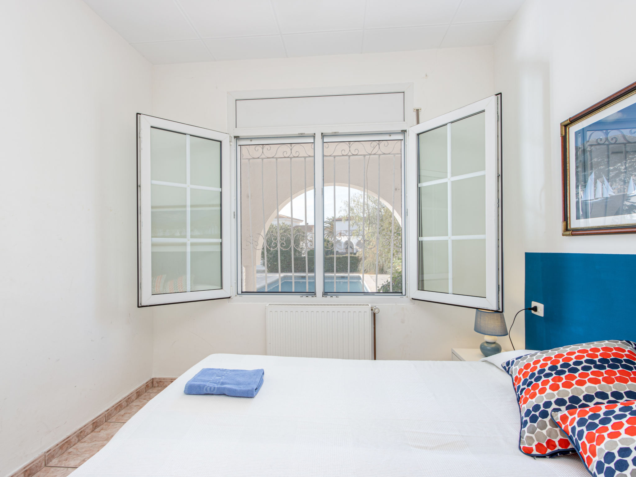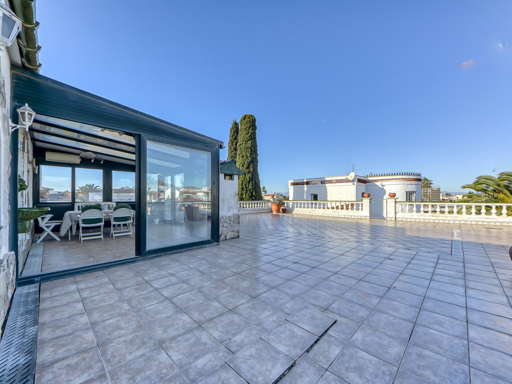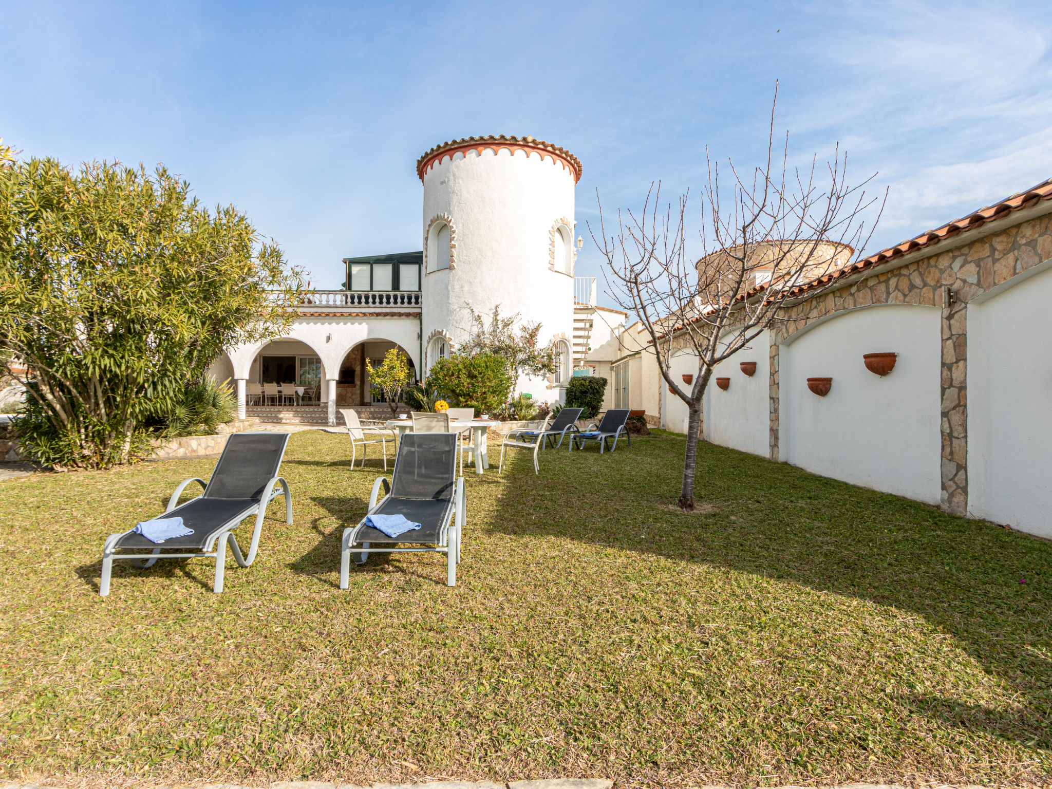Casa al canal: Sehr grosses, modernes, gemütliches Einfamilienhaus "Residencia Marítima", renoviert. Im Ortsteil Pení, 1.5 km vom Zentrum von Empuriabrava, ruhige, sonnige Lage im Villenviertel, verkehrsberuhigte Zone, 1.6 km vom Meer, 1.6 km vom Strand, direkt am Kanal. Zur Alleinbenutzung: grosser, schöner Garten mit Rasen und Pflanzen, Schwimmbad eckig (8 x 4 m, 100 - 190 cm tief, 01.01.-31.12.). Laube, Terrasse, Gartenmöbel, Grill. Im Hause: Waschmaschine. Parkplatz (für 3 Autos) beim Haus auf dem Grundstück. Einkaufsgeschäft, Lebensmittelgeschäft 350 m, Supermarkt, Restaurant, Bar 400 m, Bäckerei 350 m, Sandstrand "Empuriabrava" 1.6 km. Sporthafen 2 km, Golfplatz (18 Loch) 15 km, Surfschule 1.5 km, Segelschule 1.5 km, Minigolf 800 m, Reitstall 2 km, Wanderwege ab Haus 600 m, Radweg 400 m. Nahe gelegene Sehenswürdigkeiten: Centro paracaidismo y túnel del viento 2 km, Parque Acuático Roses 6 km, Museo Dalí Figueres 15 km, Castillo de Perelada 12 km, Ruïnas de St. Martí de Empúries 21 km, Monasterio de Sant Pere de Rodes 23 km. Bitte beachten: Jugendgruppen nur auf Anfrage. Private Bootsanlegestelle, auf Anfrage.