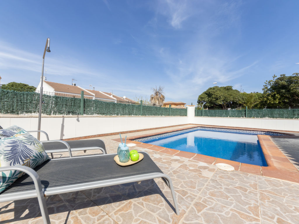 Riumar 10 km von Deltebre: Modernes, schönes Haus "Angela". Ruhige, sonnige Lage, 100 m vom Meer, 100 m vom Strand, Strasse zu überqueren. Zur Alleinbenutzung: Grundstück (eingezäunt), Schwimmbad eckig (3 x 7 m, 110 - 160 cm tief, 01.01.-31.12.) mit Innentreppe. Aussendusche, Pergola. Einkaufsgeschäft, Lebensmittelgeschäft, Restaurant, Bar 300 m. Jugendgruppen nur auf Anfrage.