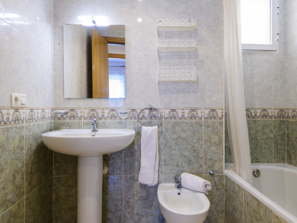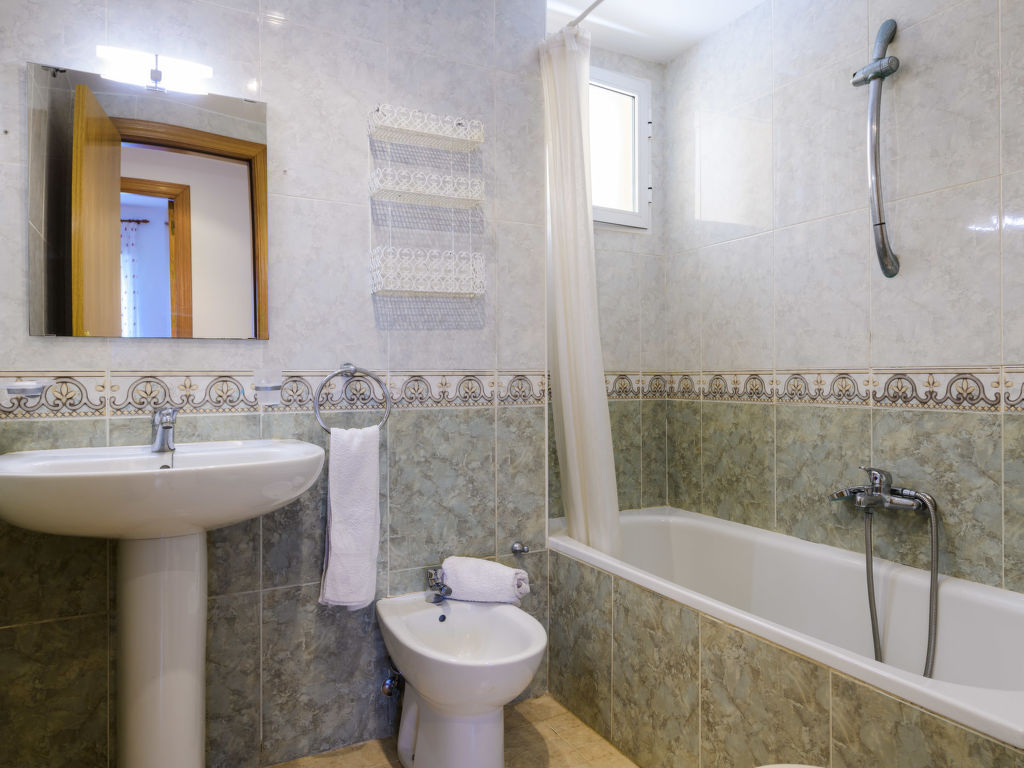 3-Zimmer-Wohnung 60 m2. Hell, zweckmässig eingerichtet: Wohn-/Esszimmer mit 1 Doppeldiwanbett, Esstisch, TV, Klimaanlage und Warmluftheizung. Ausgang zur Terrasse. 1 Doppelzimmer mit 1 franz. Bett (135 cm, Länge 190 cm), Bad/Bidet/WC. 1 Doppelzimmer mit 2 Betten (90 cm, Länge 190 cm). Küche (4 Kochplatten, Backofen, Geschirrspüler, Toaster, Mikrowelle, Tiefkühler, elektrische Kaffeemaschine). Dusche/Bidet/WC. Heizung nicht in allen Räumen. Terrasse. Terrassenmöbel. Sicht auf das Meer und die Ortschaft. Zur Verfügung: Waschmaschine, Bügeleisen, Haartrockner. Parkplatz (überdacht). Geeignet für Familien. VT-41180-CS