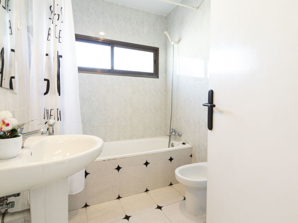 4-Zimmer-Wohnung 70 m2 im 2. Stock. Zweckmässig und komfortabel eingerichtet: Wohn-/Esszimmer mit Esstisch und Digital-TV. Ausgang zur Terrasse. 2 Zimmer, jedes Zimmer mit 1 franz. Bett (150 cm, Länge 190 cm). 1 Zimmer mit 1 Ausziehbett (2 Pers. 2 x 80 cm, Länge 190 cm). Küche (4 Kochplatten, Backofen, Toaster, Wasserkocher, Mikrowelle, elektrische Kaffeemaschine). Bad/Bidet/WC, Sitzbad/WC. Terrasse 16 m2. Terrassenmöbel. Eingeschränkte Sicht auf das Meer. Zur Verfügung: Waschmaschine, Bügeleisen, Haartrockner. 1 Haustier/Hund erlaubt. HUTT-005159